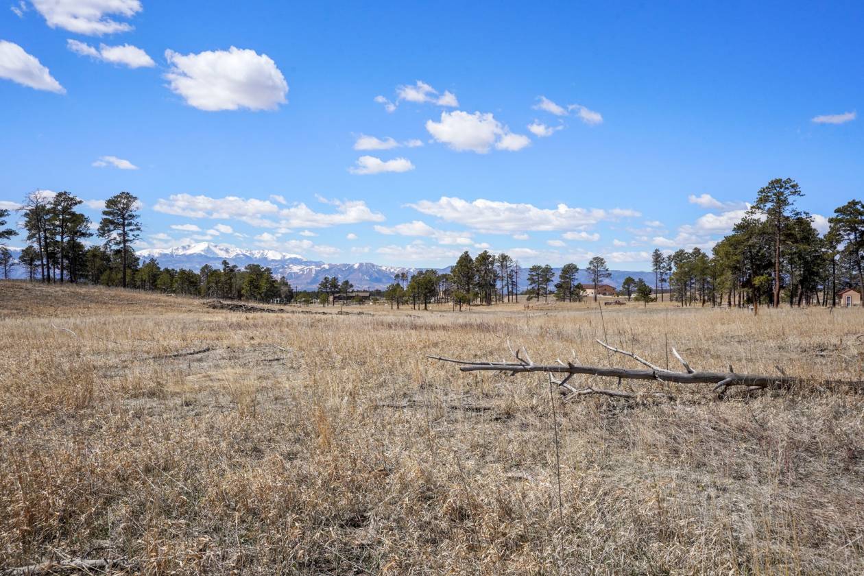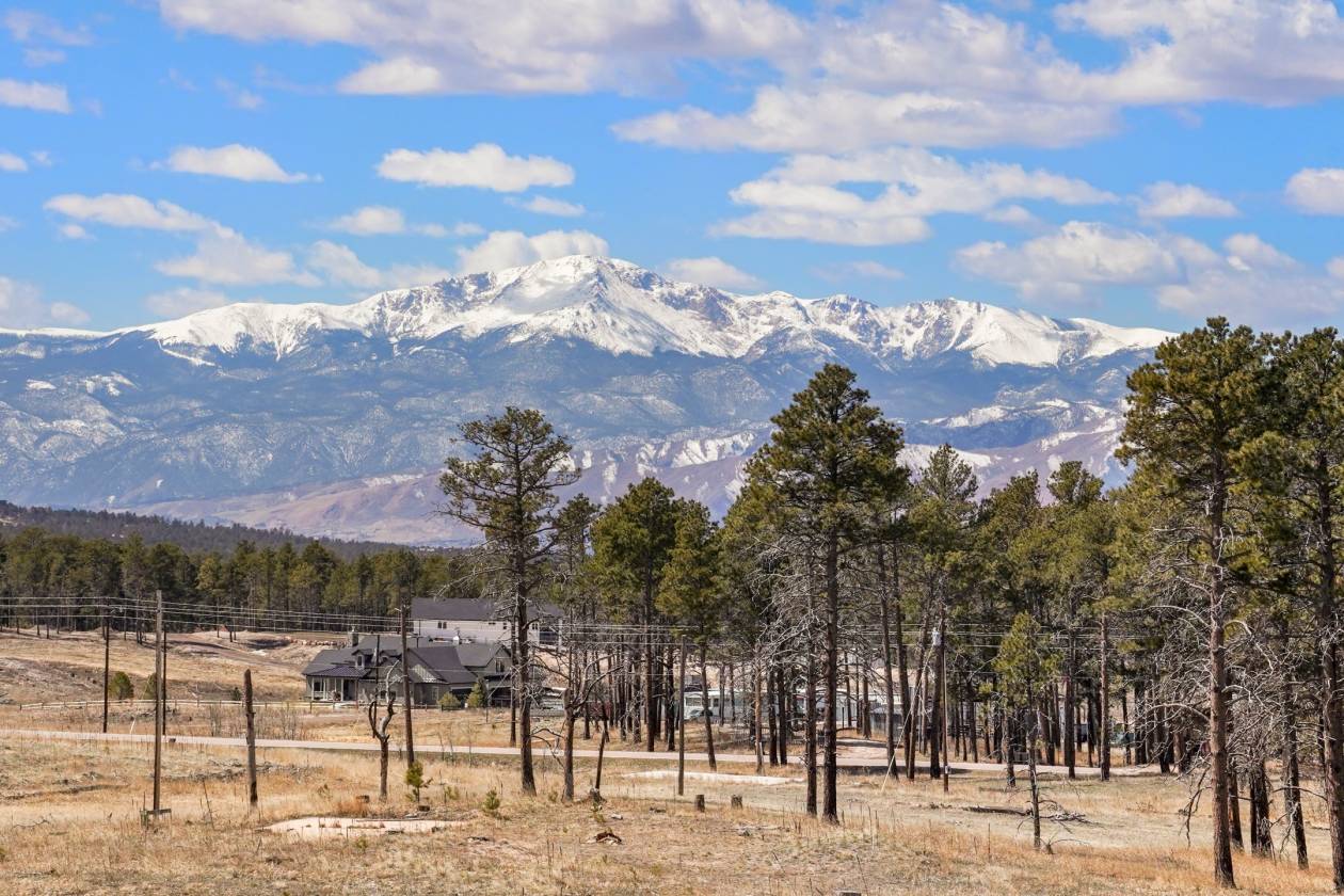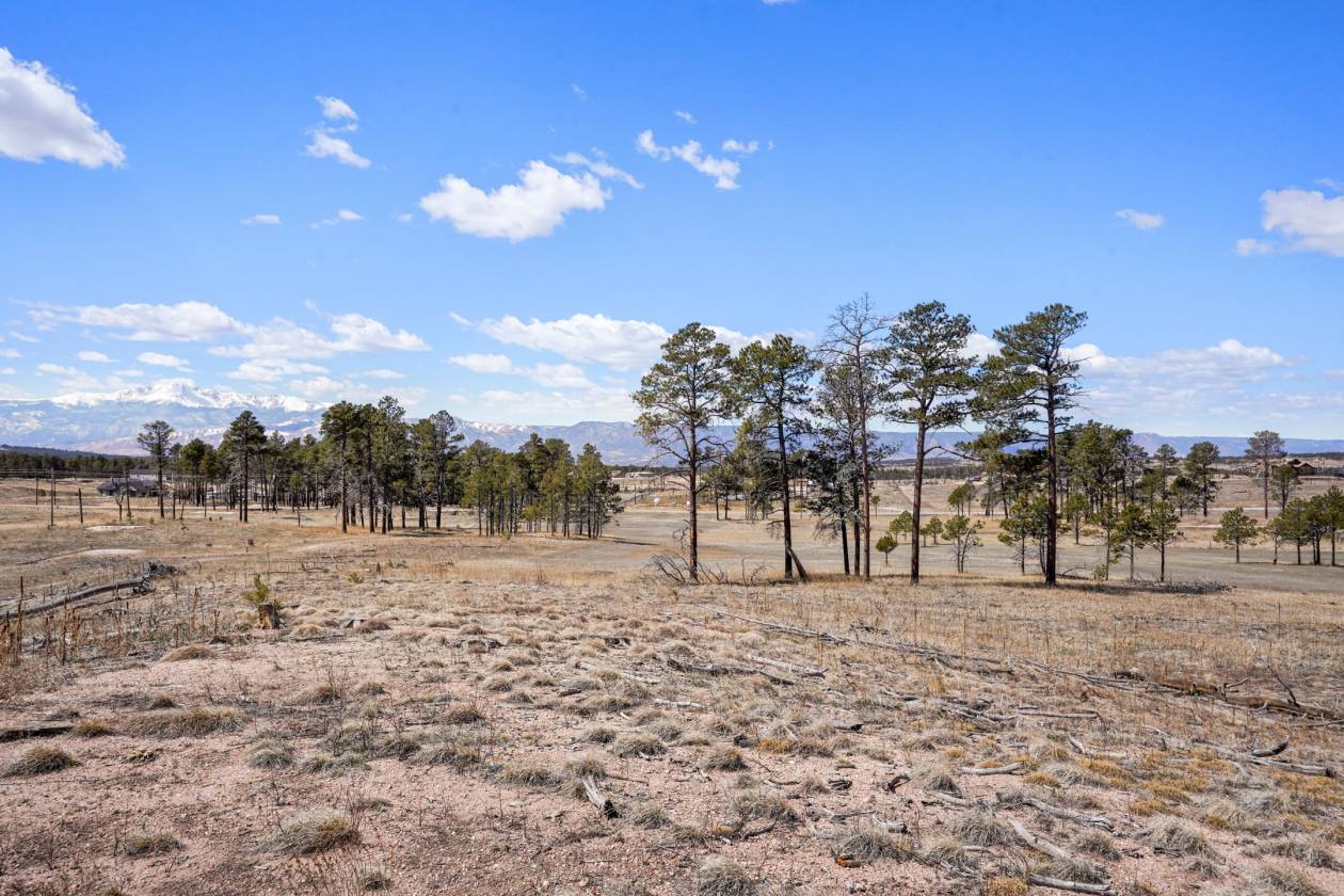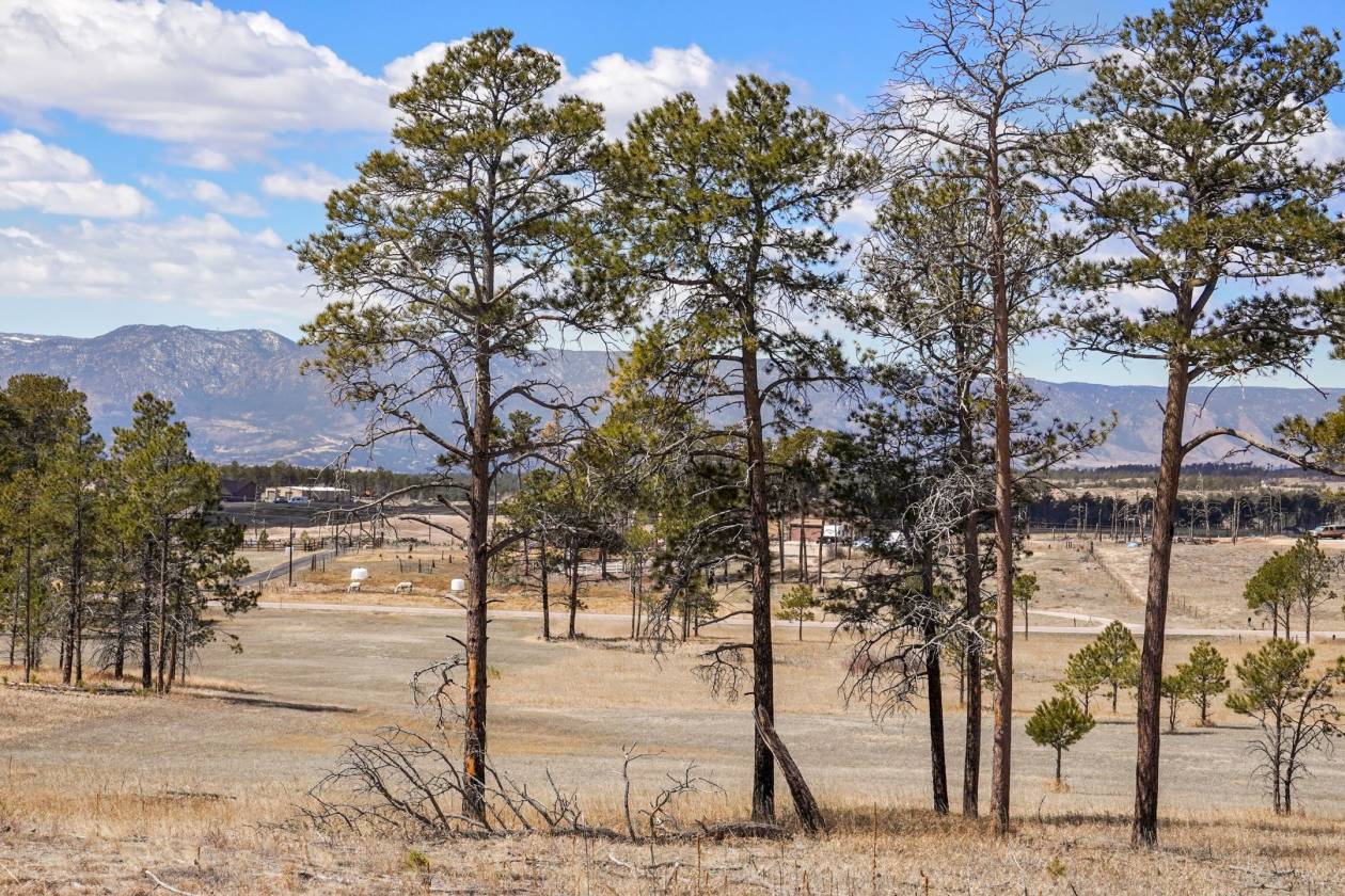 5 acres treed and meadow and jaw dropping, phenomenal Pikes Peak and mountain views located in sought after and close-in south Black Forest. Gorgeous mature Ponderosa Pines and lush green meadows. Fiber optic internet is available. Close proximity to Award winning School District 20. No covenants or HOA. Horses, outbuildings, chickens and other animals are allowed. Walking distance to Section 16 and Pineries Open Space. Section 16 is 640 acres of State of Colorado owned treed open space w/ walking, biking and equine trails. Pineries Open Space features equestrian friendly trails with 1,100 acres of open space and parks. Multiple build sites with walk-out basement potential. Two adjacent parcels are also available for a total acreage of 25 acres - perfect for additional land or building multiple homes. Great access to the amenities of Powers, Woodmen and Northgate.
