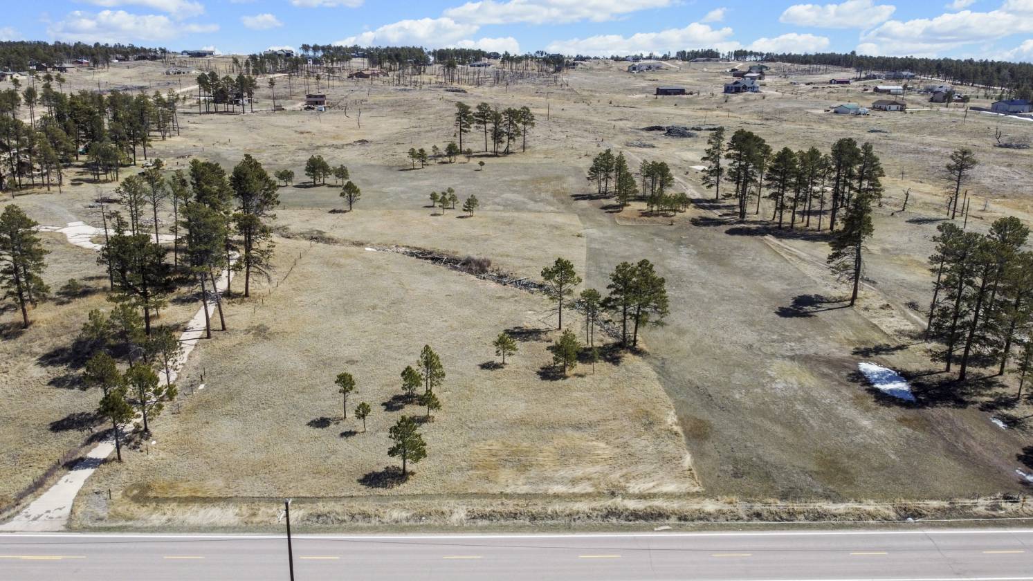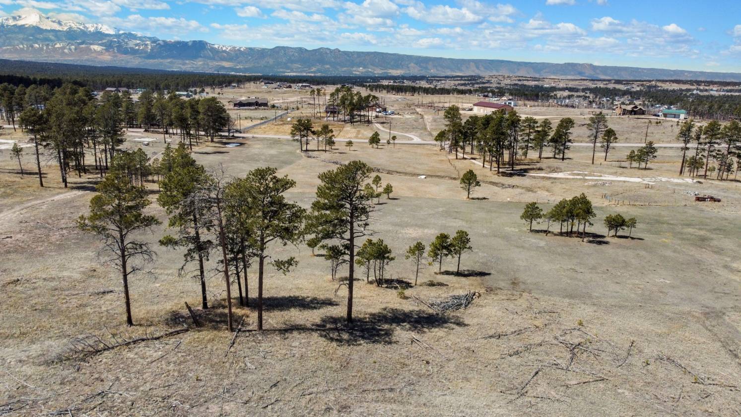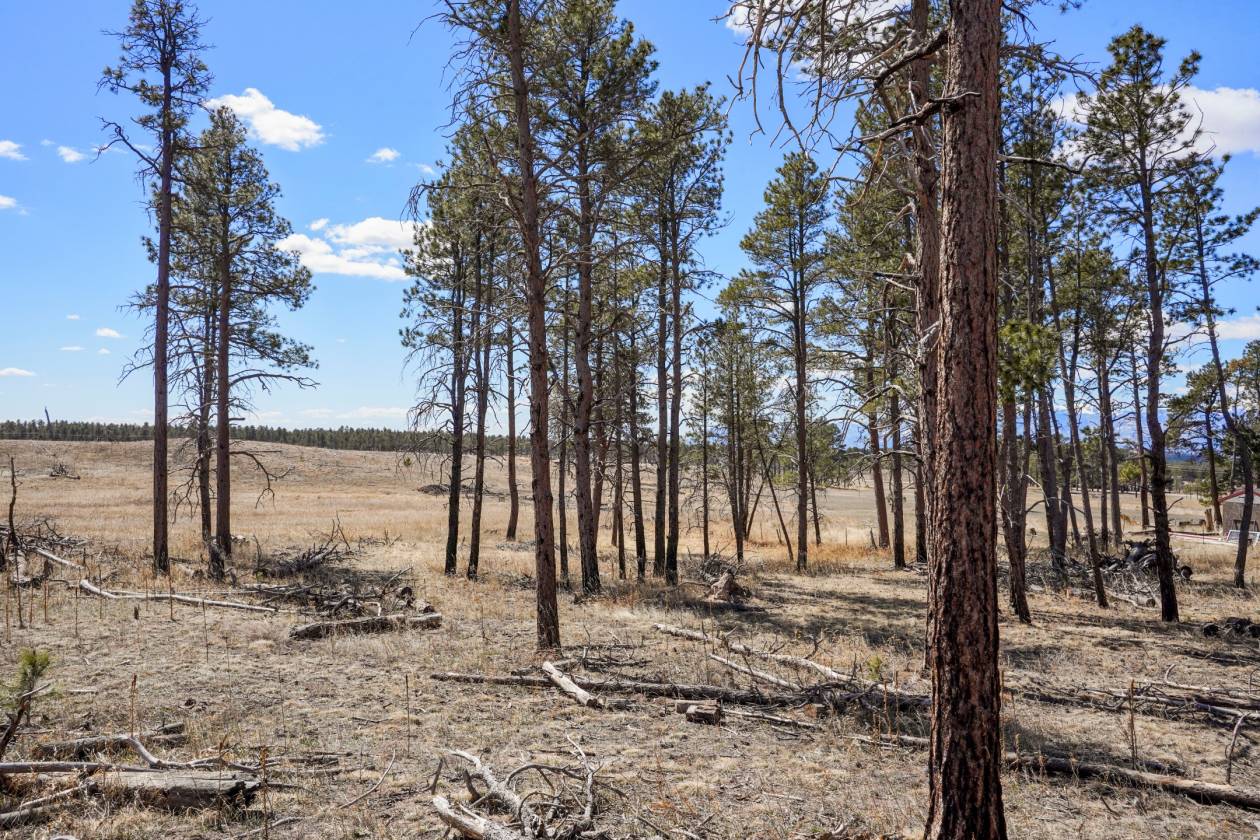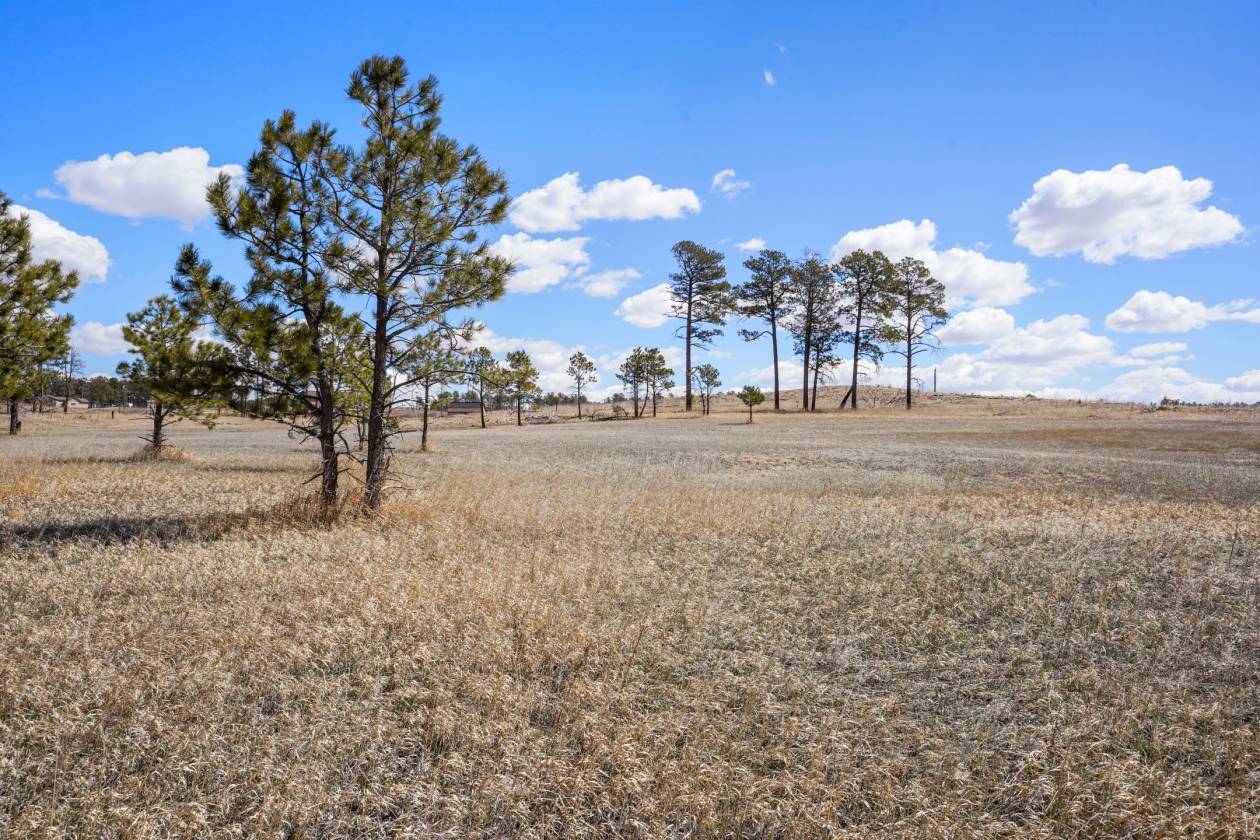 5 acres treed and meadow and jaw dropping, phenomenal Pikes Peak and mountain views located in sought after and close-in south Black Forest. Gorgeous mature Ponderosa Pines and lush green meadows. Fiber optic internet is available. Close proximity to Award winning School District 20. No covenants or HOA. Horses, outbuildings, chickens and other animals are allowed. Walking distance to Section 16 and Pineries Open Space. Section 16 is 640 acres of State of Colorado owned treed open space w/ walking, biking and equine trails. Pineries Open Space features equestrian friendly trails with 1,100 acres of open space and parks. Multiple build sites with walk-out basement potential. Two adjacent parcels are also available for a total acreage of 25 acres - perfect for additional land or building multiple homes. Great access to the amenities of Powers, Woodmen and Northgate.