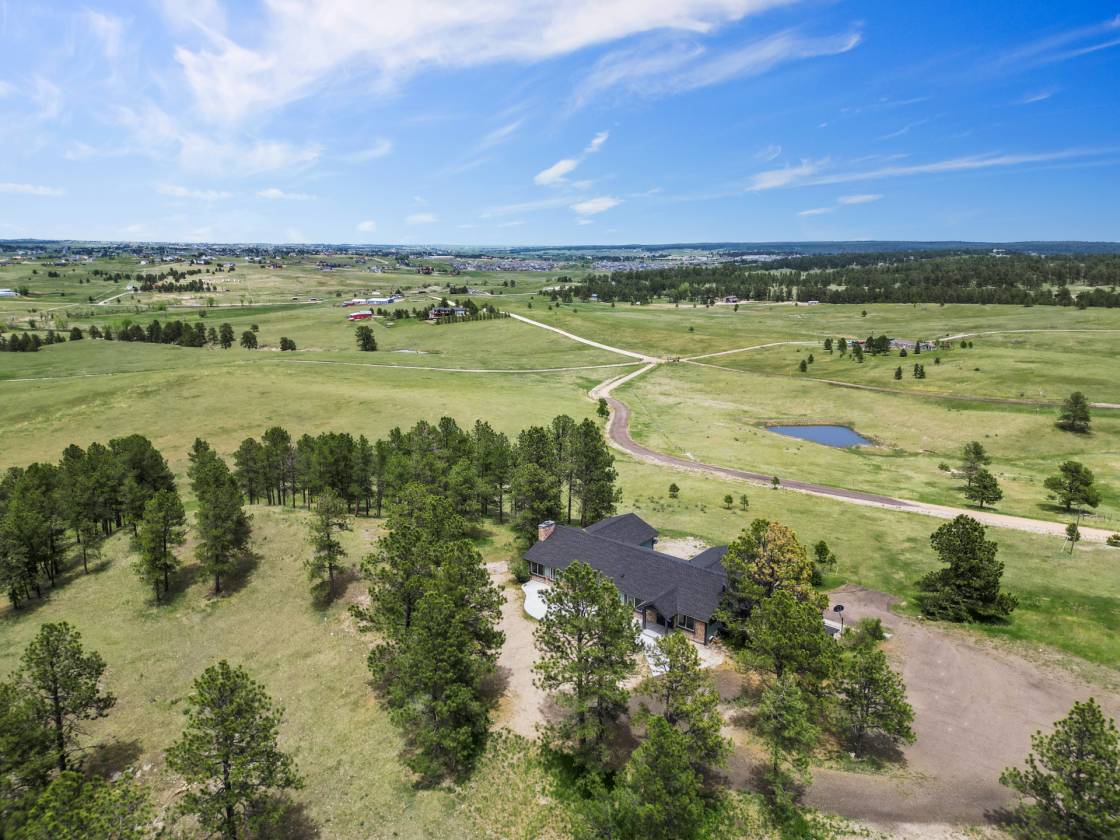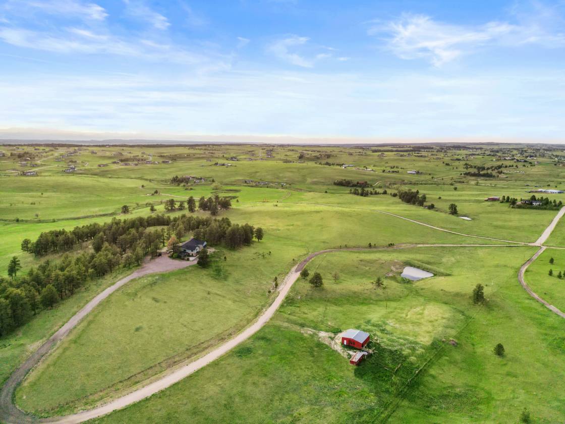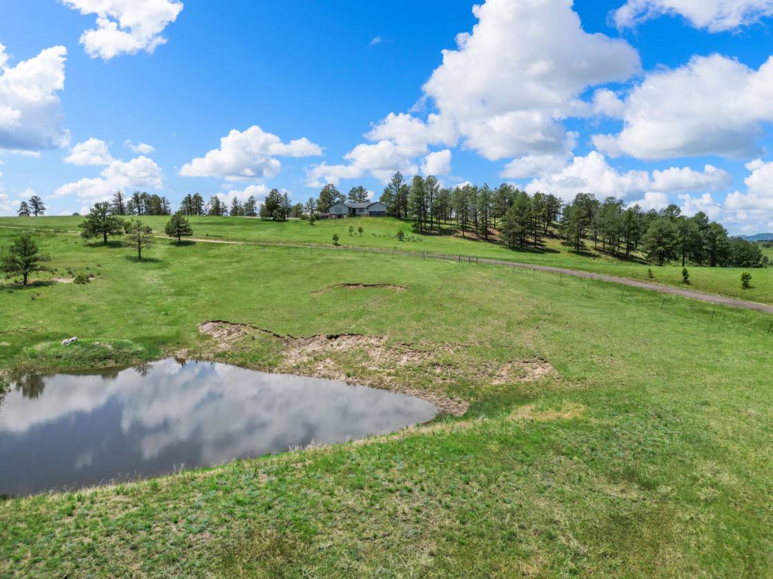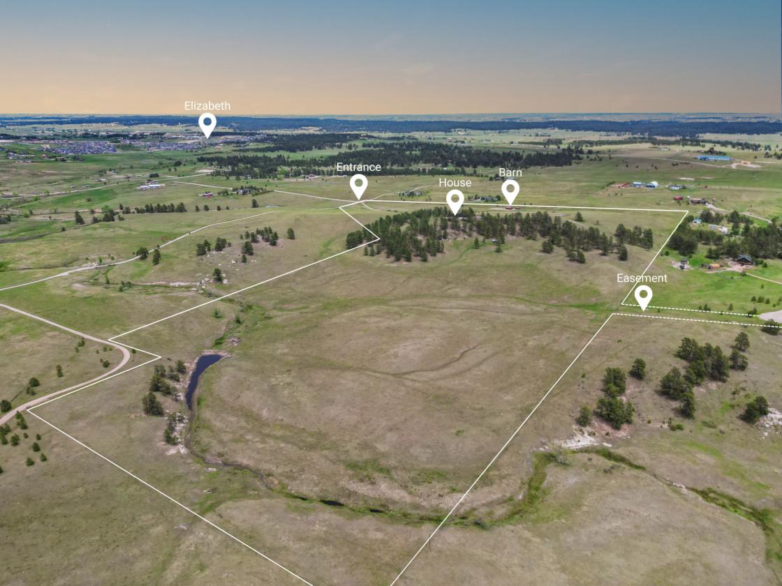 Welcome to Halbrook Ranch A once-in-a-generation opportunity to own what may be the most picturesque ranch setting in all of Elbert County—this rare, legacy-quality estate offers 75 acres of pristine Colorado beauty just 3.5 miles from the charming town of Elizabeth. This land speaks for itself: rolling hills, expansive meadows, dramatic rock outcroppings, natural draws, two seasonal ponds, and miles of panoramic views in every direction. The seamless blend of wooded cover and open pasture makes it ideal for livestock, wildlife, recreation, or pure enjoyment. Whether you're building a family legacy, seeking a private weekend escape, or exploring future development potential, this “trophy parcel” delivers. With no HOA, no covenants, and AG-A zoning, this is country living without compromise—just wide-open freedom and untapped possibility. Anchoring the property is a walk-out ranch-style home, thoughtfully positioned atop a hill to maximize privacy, natural light, and mountain vistas. The front entrance was intentionally aligned with Pikes Peak—a detail that sets the tone for the entire property. With nearly 5,100 square feet, the home offers versatile living options, including a full lower-level suite with its own private entrance, kitchen, living area, garage, and bedrooms—ideal for multi-generational living or a luxurious guest retreat ready to be customized to your style. The southern end of the property features its own independent access via a recorded 60-foot easement through Bluebird Estates, creating opportunities for a second homesite, future resale, or potential development—without affecting the privacy of the main residence.