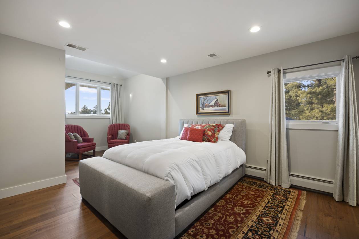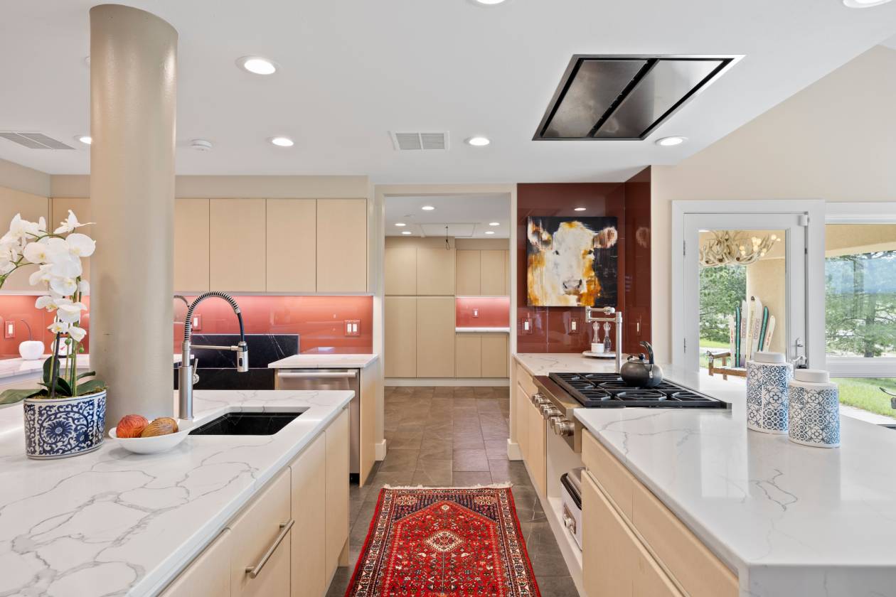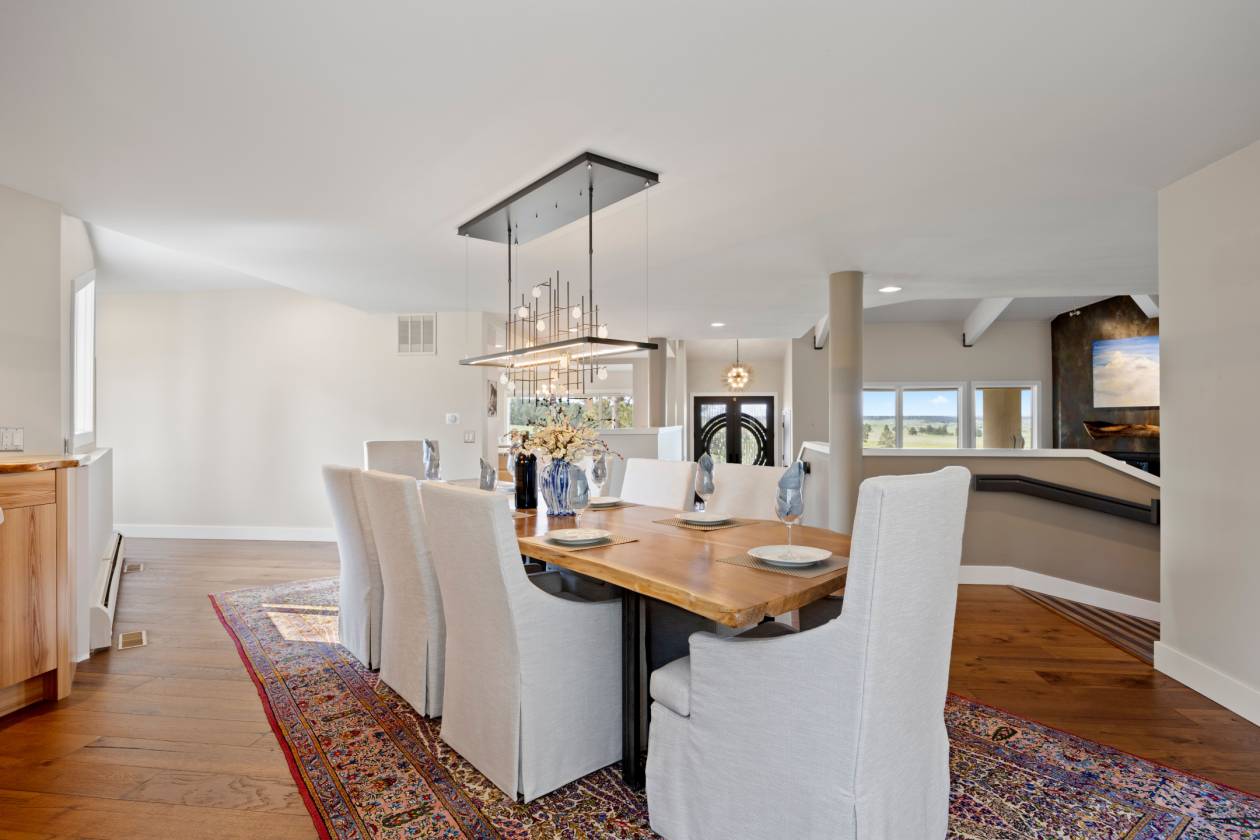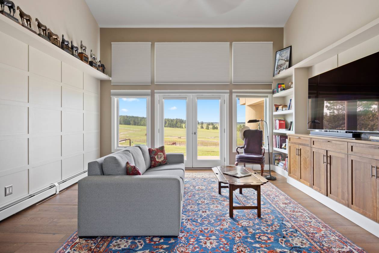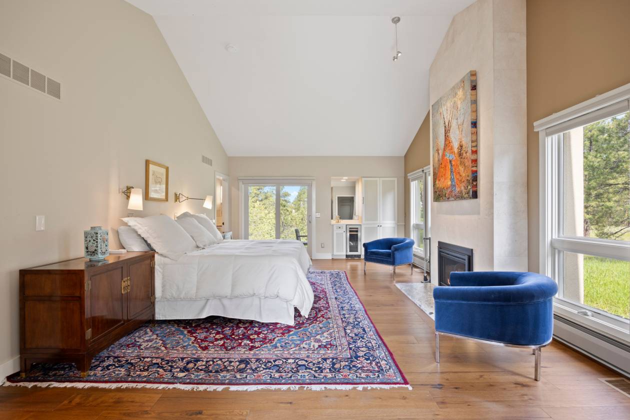 Most people go their whole lives searching for that ‘one thing.’ Out here, you just step outside and find it—157 acres of open sky, rolling pasture, and the mountain majesty of Pikes Peak. Welcome to Discovery Farm, where life balances between peaceful retreat and fully functioning ranch. Two commanding barns anchor the equestrian facilities, while guest houses, caretaker quarters, and utility buildings expand the possibilities for multigenerational living or retreat-style use, all tucked securely behind a gated entry. The main residence captures the essence of Colorado living, with mountain views that never grow old and comfort that becomes a way of life. Inside, the home blends mid-century character with modern refinement. Vaulted ceilings and walls of glass bring scale and light, while details like the open-riser staircase, stone fireplace, and wide-plank wood floors ground the space in warmth. The kitchen is a true centerpiece, with a massive marble waterfall island and peninsula with breakfast bar seating, Wolf and Sub-Zero appliances, a bright windowed dining nook, and a separate scullery with commercial-grade refrigeration. The main-floor primary suite enjoys its own fireplace, a private patio, and spa-like bath with refined finishes. Upstairs, two ensuite bedrooms and a loft with built-in beds provide exceptional guest accommodations, while a main-floor den offers flexibility for work or quiet retreat. Purpose-built equestrian amenities elevate the property to professional standards, with two commercial barns offering 20+ stalls, tack rooms, and wash bays, alongside an 11,000-square-foot indoor arena, utility building, and multiple sheds. An outdoor arena, trails, and fenced pastures stretch across the landscape, supported by conveyed water rights that sustain pasture and livestock. Located just five minutes from Elizabeth, 25 minutes from Castle Rock, and under an hour from DIA or Colorado Springs Airport, Discovery Farm delivers rare seclusion with ease of access. Paved roads bring you to the gate—beyond it, every sunrise and sunset is yours to claim.
