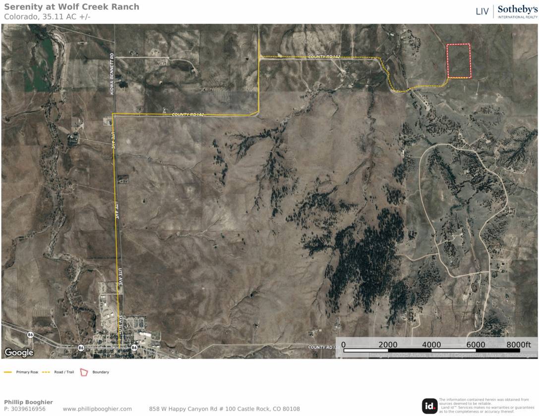 Serenity at Wolf Creek Ranch is a community rich with history, once a working cattle ranch and now home to 77 exclusive 35-acre parcels. The neighborhood features over two miles of cottonwood-lined creek bed and open skies, delivering the perfect blend of seclusion and accessibility. Despite its peaceful ambiance, the property is just minutes from Kiowa's conveniences, with easy access to Elizabeth, Castle Rock, and Denver.