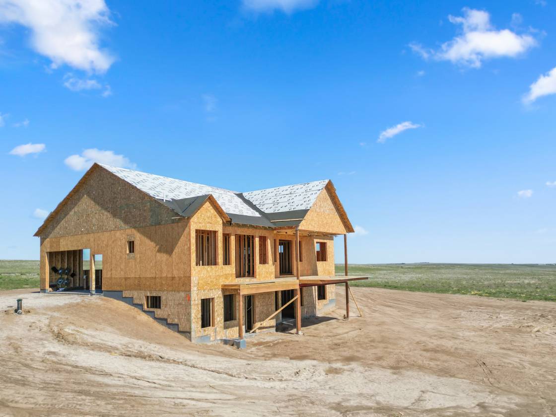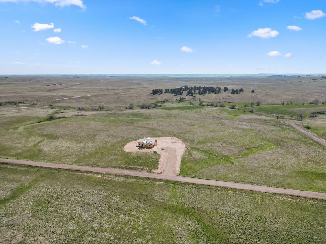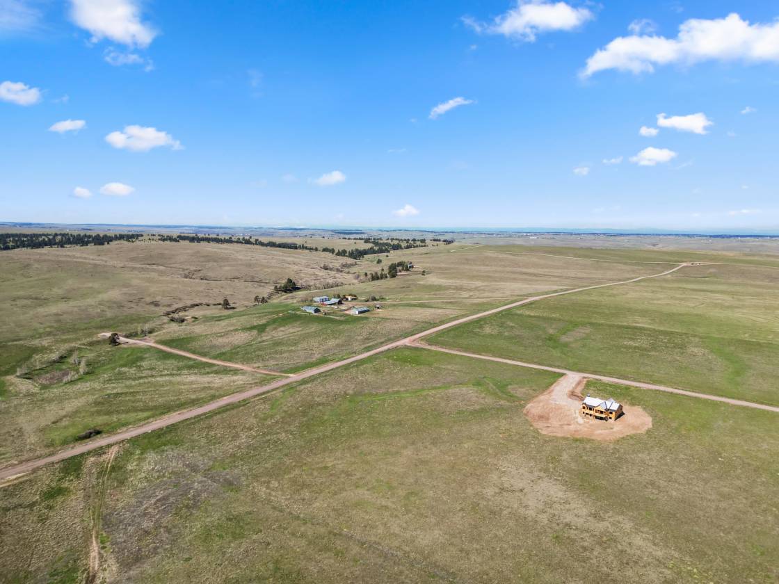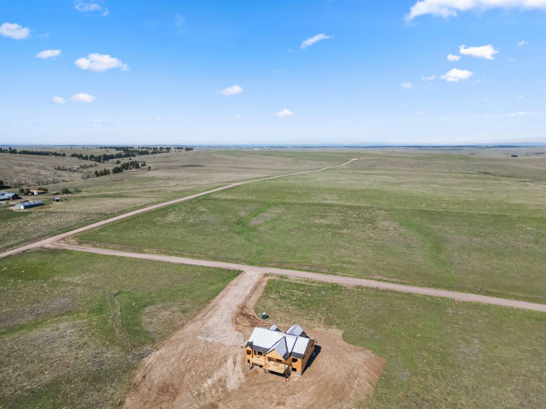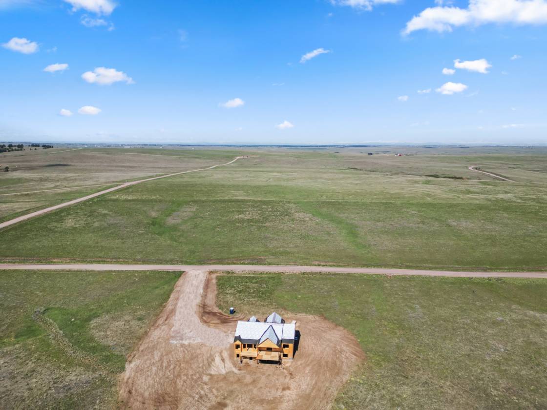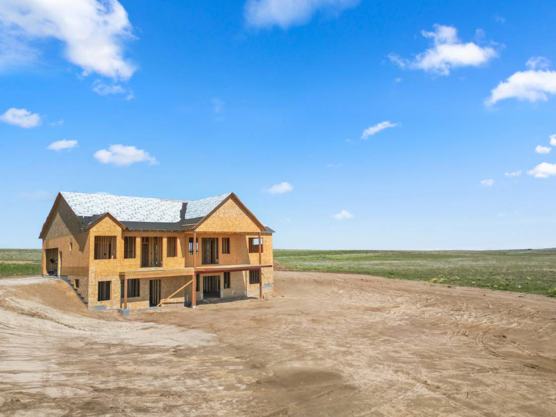 Own a brand-new custom walk-out ranch on 35 wide-open acres in the sought-after Serenity at Wolf Creek Ranch community. Built by local craftsman Colorado By Design, this modern farmhouse blends quality construction with sweeping prairie views. With no HOA, and A1 zoning, the property is a canvas for barns, horses, livestock, or your dream rural retreat—just five minutes from Kiowa and within easy reach of the Denver Metro area. The open floor plan is anchored by vaulted ceilings, oversized windows, and wide-open living spaces designed to maximize natural light, views, and comfort. The spacious living room—framed by built-ins and a fireplace—connects seamlessly to the gourmet kitchen and covered deck, creating an ideal setting for entertaining or simply watching the sunrise as wildlife roams the pasture. The primary suite is a true retreat, featuring a spa-like five-piece bath, an oversized walk-in closet, and private access to the covered deck—where tranquil views stretch for miles. A secondary bedroom with its own ensuite, a dedicated office, laundry room, and cozy sitting area with 9’ ceilings complete the main-level layout. Downstairs, the finished walk-out basement offers 9’ ceilings, two additional bedrooms, a full bath, a spacious rec room, a bonus room (perfect for a gym or theater), and a fully appointed kitchenette—ideal for guests or future in-law quarters. Guest houses and garage apartments are permitted with county approval, and RVs or temporary housing are allowed during construction. Construction is actively underway with completion anticipated by September 2025. This is your chance to secure a one-of-a-kind home on a legacy lot—where modern comfort meets Colorado countryside, and every sunrise feels like it’s yours alone. Please note: Renderings are for illustrative purposes only and do not represent the final finishes, or colors. Blueprints are for reference and may not reflect all changes. Contact the listing agent for more details