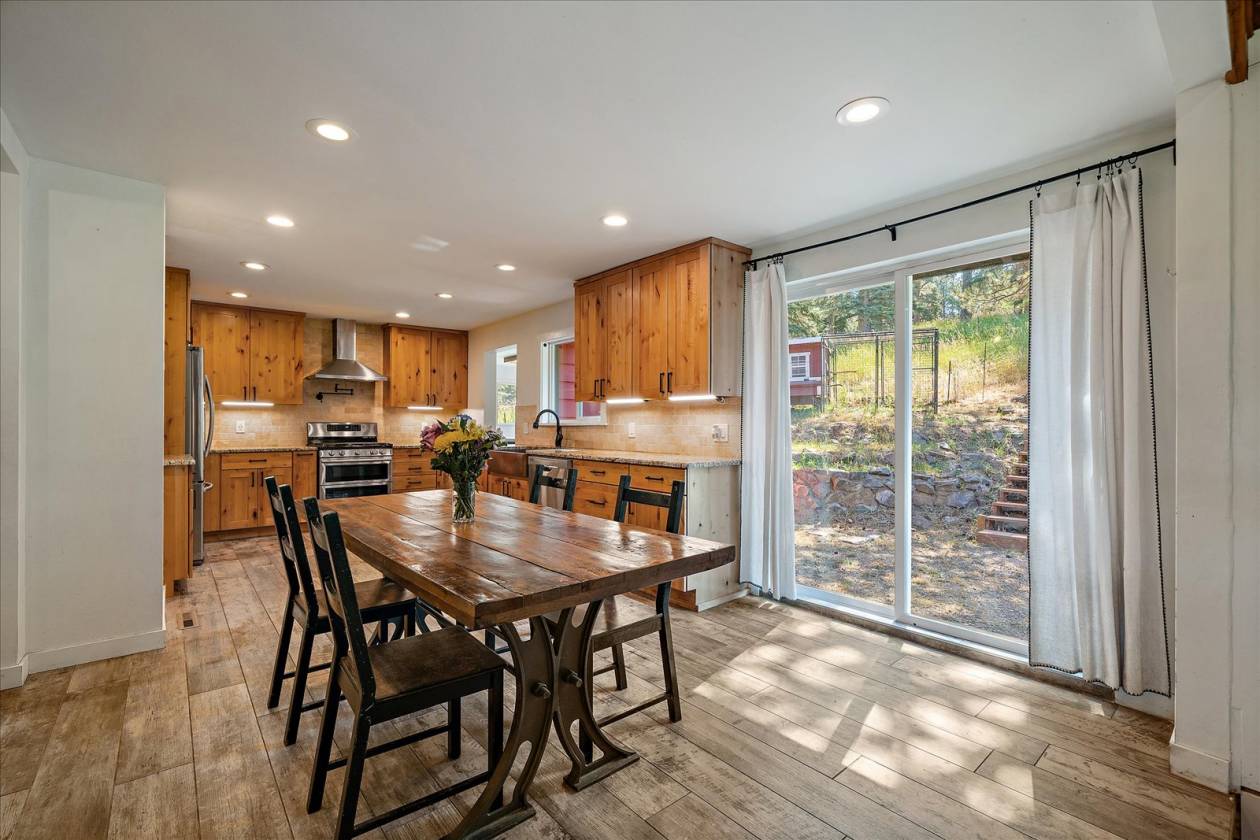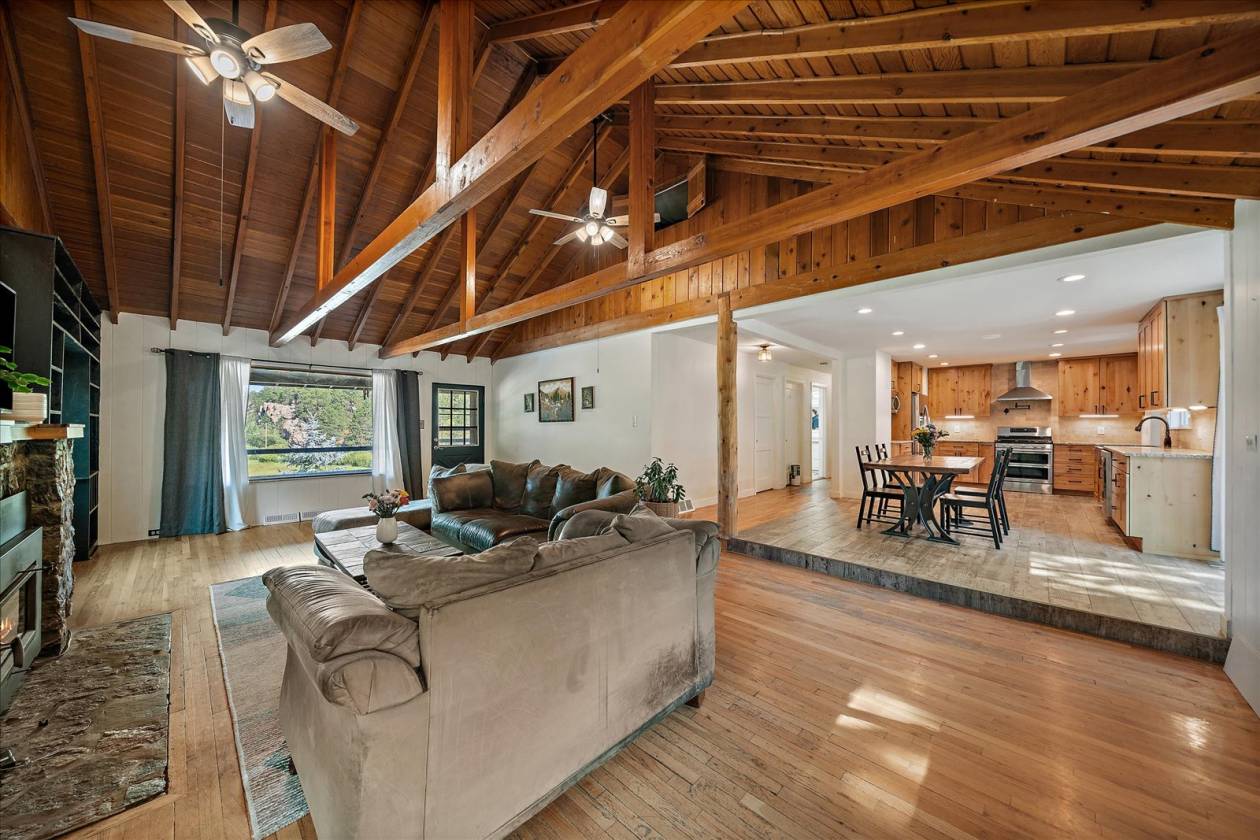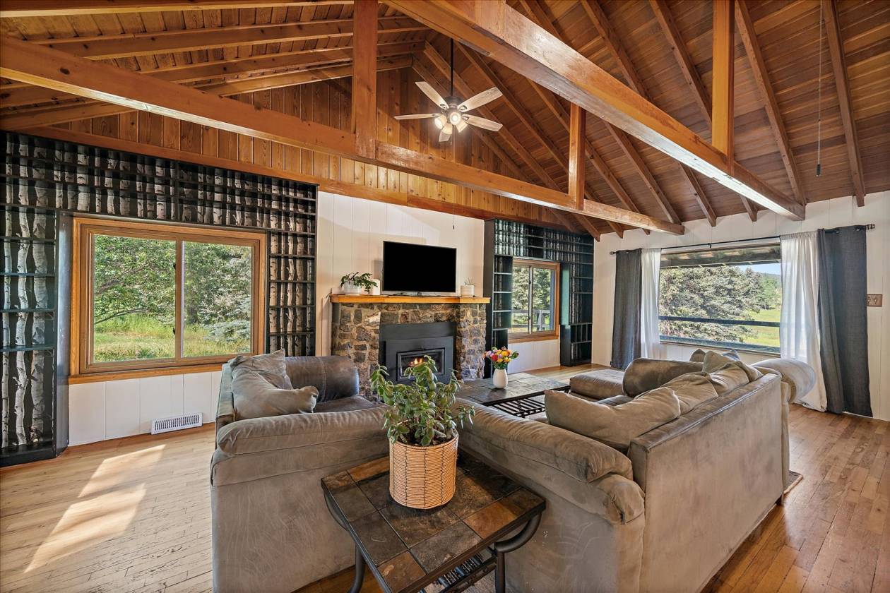 Discover a rare gem in South Evergreen—a historic family farmstead along the coveted North Turkey Creek, just over a mile from the Marshdale roundabout. The property boasts scarce creek frontage, a valuable domestic well, A-2 zoning, and lush native grasses ideal for grazing. A secluded, hidden meadow in the back creates a private sanctuary. This is a perfect set up for a small-acreage hobby farm or equestrian retreat. Partial perimeter fencing and cross-fenced meadow, pens and round pen, with multiple outbuildings, is ready for horses or livestock, offering stunning western valley views. The 1940's home, rich with original hardwood floors, a wood burning stone fireplace beneath the vaulted and beamed canopy, has been enhanced with select updates by the current owners, preserving its authentic charm. Still, it calls for a buyer with the vision, resources, and enthusiasm to embrace the creative challenge of continuing its renovation or reimagining it entirely. With A-2 zoning, a separate lower-level apartment, and easy commuting access, the value shines in the pristine setting and exceptional setup, including a four bedroom septic system installed in 2016. Don’t miss this opportunity to craft your dream mountain escape!