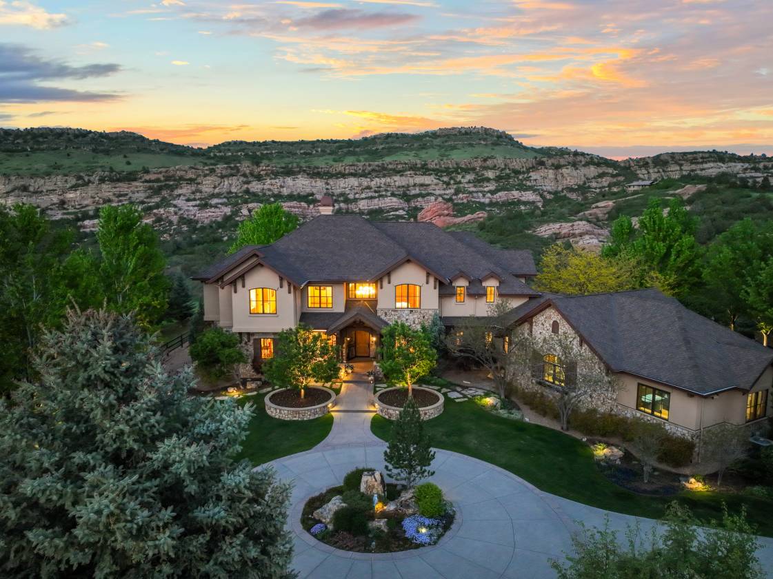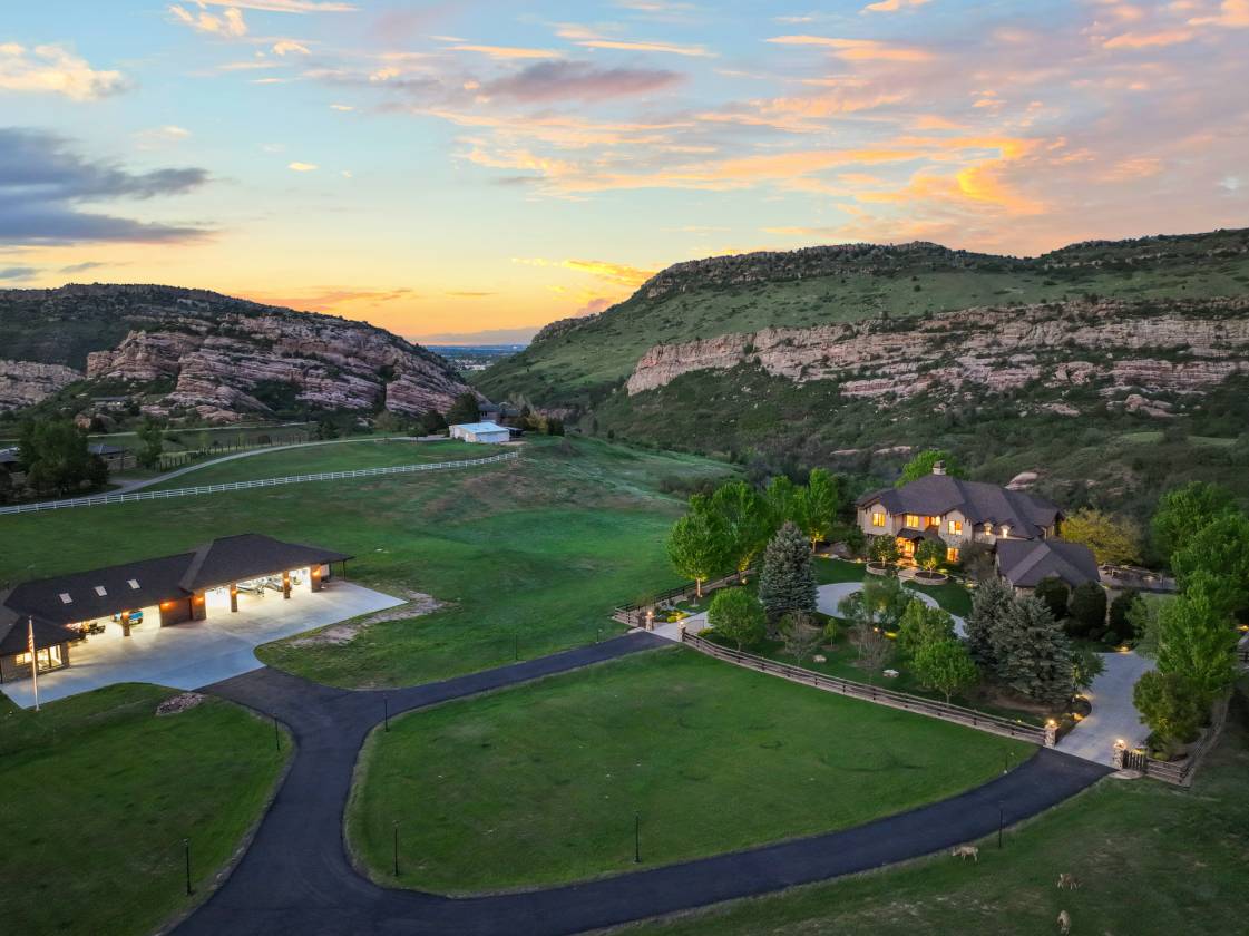 THE CROWN JEWEL! Truly extraordinary MASTER CRAFTED ESTATE W/10 HEATED GARAGE SPACES-complete w/extra carport & wash bay. This rustic contemporary is magnificently poised on nearly 20 PRISTINE EMERALD GREEN ACRES in the prestigious Deer Creek Mesa. Set against a backdrop of dramatic HUGE RED ROCK formations and expansive open space, this architectural gem perfectly unites refined luxury with the raw beauty of Colorado’s landscape. ONLY 3 miles from C470-the epitome of CONVENIENCE! This home’s commanding presence is unmistakable-worthy of Architectural Digest acclaim. Showcasing rich Alder wood interiors, hand-crafted stonework, and soaring glass window walls that capture panoramic views like natural artwork. Grand fireplaces and custom finishes elevate living spaces, where every detail has been thoughtfully designed to inspire comfort & sophistication. Flowing floor-plan, polished granite surfaces, and generous gathering areas make this home ideal for intimate living and grand-scale entertaining. Originally conceived as an equestrian property, the land retains its horse-friendly appeal. A separate outbuilding includes caretaker’s apartment. Classic fencing outlines the grounds, creating a serene haven. The interior is as expansive and refined-8,500sqft, 7beds, 8baths, walk-out basement, 2 executive offices, 2 primary suites-1 on main floor. Multiple terraces & lovely landscaping invite outdoor living, offering front-row views of the wilderness and vibrant colors. Towering red rock cliffs provide a dramatic natural backdrop. Adjacent open space ensures privacy. No HOA. Equipped w/indulgence: Chef’s kitchen, a commercial generator, 7 person spa, infrared sauna, Lutron lighting/motorized blinds/Sonos-high design smart living. RV hookups w/50 amp power, water/sewer access. Heated dog run. PUBLIC WATER/2Septic/Natural Gas. An oasis-just minutes to The City. True Sanctuary Lifestyle! The enduring spirit of Colorado. https://media.cineflyfilms.com/9650-Cougar-Rd/idx