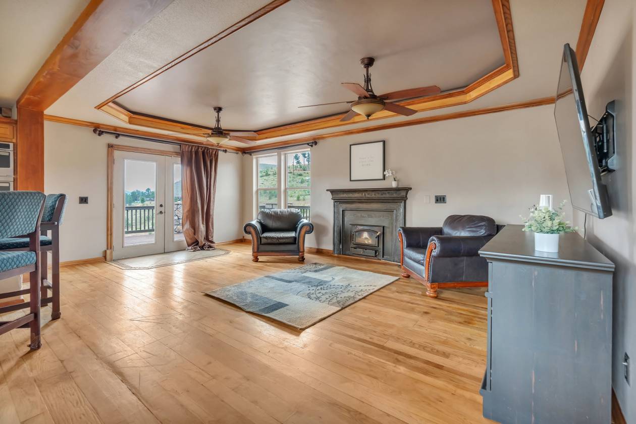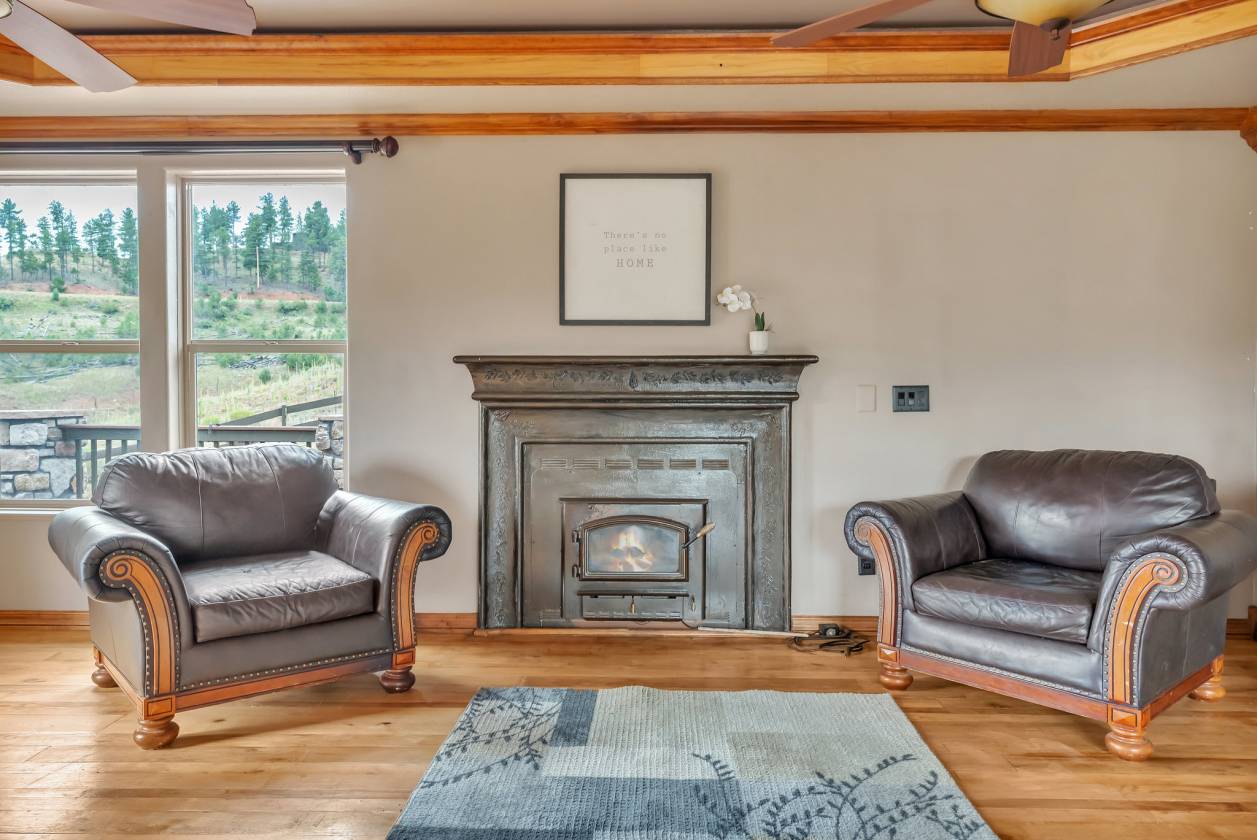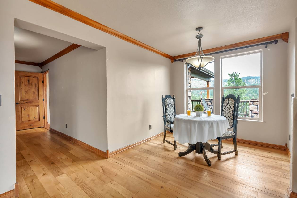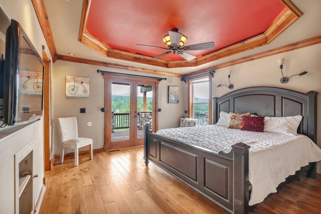 Imagine pulling in through the front entry gate, greeted by breathtaking mountain views that stretch endlessly in every direction. No need to imaging anymore – situated in a million dollar neighborhood and on almost 6 acres, this wonderful home features an open floor plan, old barn wood floors, unique fireplace, coffered ceilings & huge wrap-around deck featuring an outdoor stone fireplace. The open kitchen features a newer oven & microwave, canned lighting and an island w/higher seating & pendant lighting. The spacious main floor primary BR has coffered ceilings, built-ins shelves, walk-in CL, en-suite bath & double glass doors leading to the deck, perfect for relaxing after a long day. There are 2 additional BRs on the main level & a remodeled hallway bathroom. Main floor laundry features a utility sink, cabinets & shelves. Additional highlights include a tankless water heater, radon mitigation system, water filtration system, humidifier, structural floor with steel joists and a new roof (2024). The walk-out basement provides high ceilings, solid wood doors, a walk-out entry, non-conforming BR & plenty of potential for expansion. The oversized garage offers ample storage, cabinets & counters for workshop projects. Plenty of room for guest parking, RV parking and/or horse trailer. This fabulous horse property is fully fenced with cross fencing for separate pastures, a 2-stall barn and a professionally engineered & permitted retaining wall. Pine is well-known for 'Banana belt' weather conditions and outdoor activities including hiking, horseback riding, mountain biking, fishing, kayaking, camping, rock climbing & 4-wheeling. Close access to US Hwy 285, Pine Valley Ranch Park & Open Space, Buffalo Creek, Wellington Lake, Lost Creek Wilderness, Staunton State Park & Gold Medal Fishing at the south Platte. This unique property combines rustic charm with Colorado beauty — a perfect retreat for nature lovers and those seeking a peaceful mountain lifestyle.