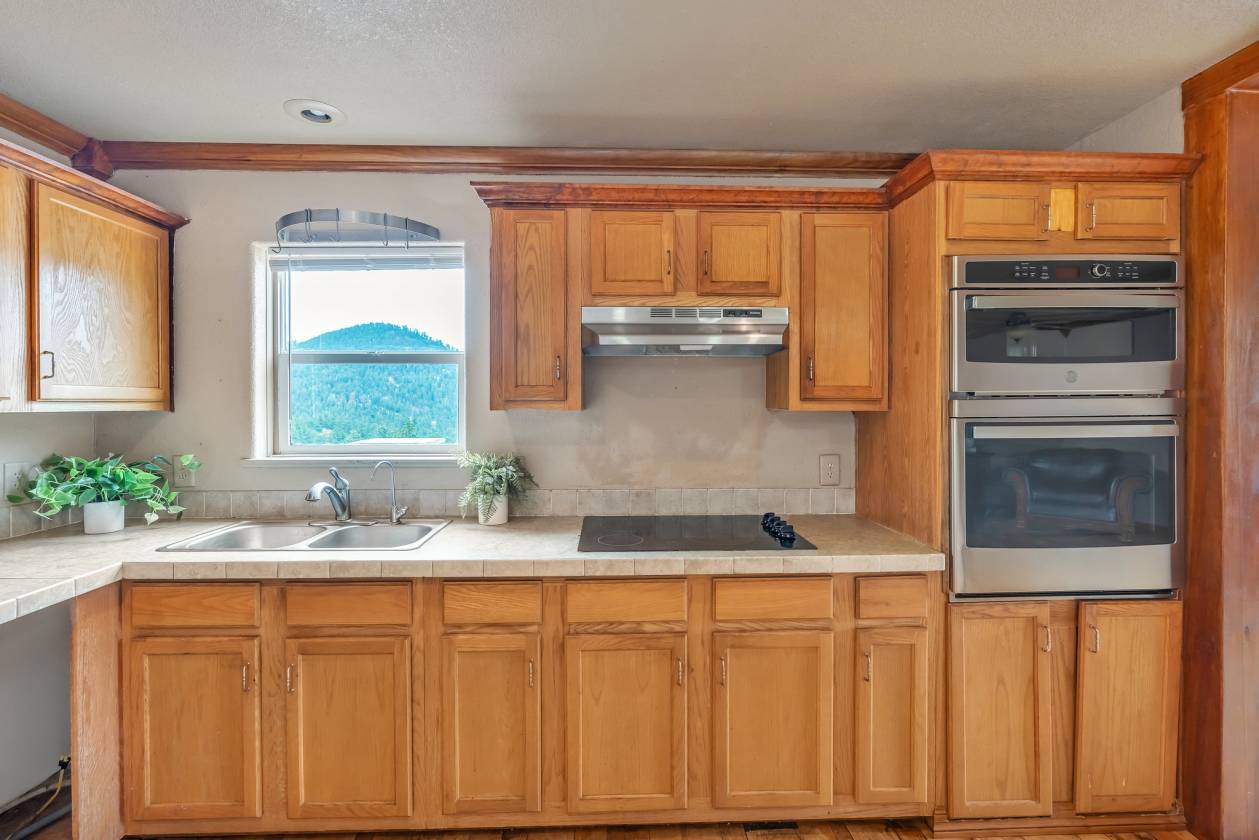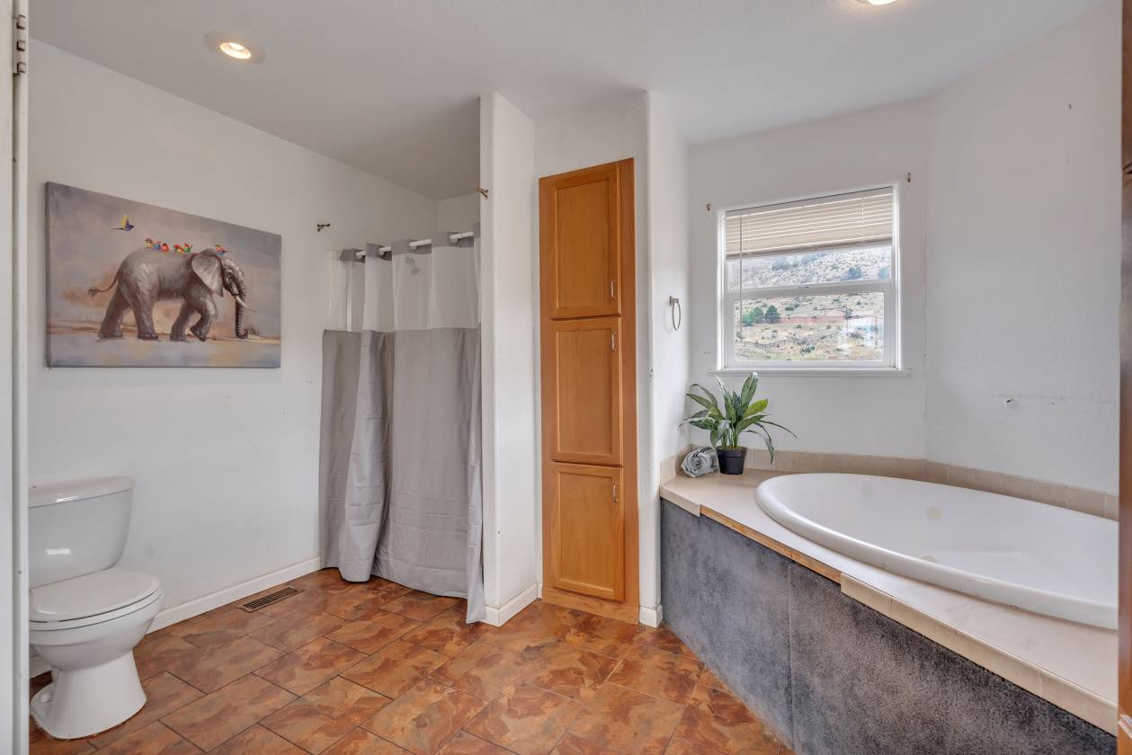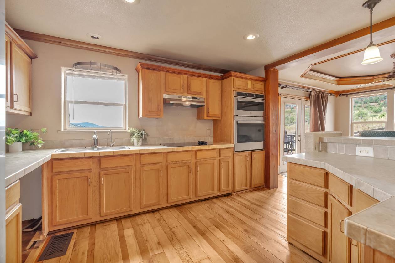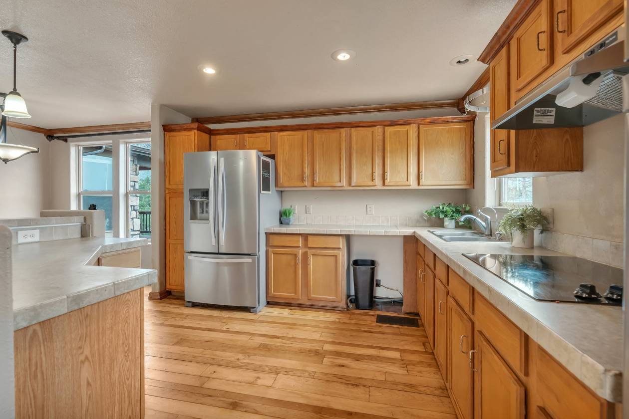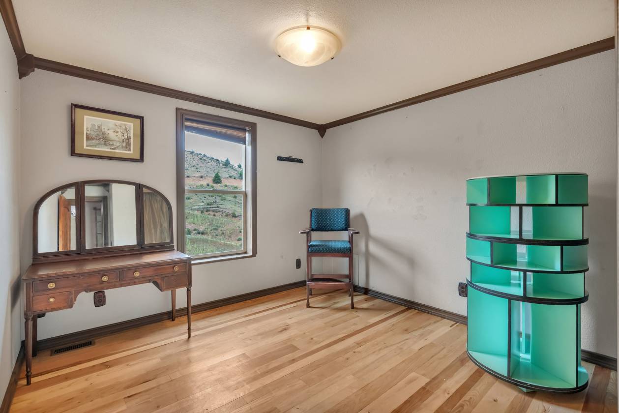 Imagine pulling in through the front entry gate, greeted by breathtaking mountain views that stretch endlessly in every direction. No need to imaging anymore – situated in a million dollar neighborhood and on almost 6 acres, this wonderful home features an open floor plan, old barn wood floors, unique fireplace, coffered ceilings & huge wrap-around deck featuring an outdoor stone fireplace. The open kitchen features a newer oven & microwave, canned lighting and an island w/higher seating & pendant lighting. The spacious main floor primary BR has coffered ceilings, built-ins shelves, walk-in CL, en-suite bath & double glass doors leading to the deck, perfect for relaxing after a long day. There are 2 additional BRs on the main level & a remodeled hallway bathroom. Main floor laundry features a utility sink, cabinets & shelves. Additional highlights include a tankless water heater, radon mitigation system, water filtration system, humidifier, structural floor with steel joists and a new roof (2024). The walk-out basement provides high ceilings, solid wood doors, a walk-out entry, non-conforming BR & plenty of potential for expansion. The oversized garage offers ample storage, cabinets & counters for workshop projects. Plenty of room for guest parking, RV parking and/or horse trailer. This fabulous horse property is fully fenced with cross fencing for separate pastures, a 2-stall barn and a professionally engineered & permitted retaining wall. Pine is well-known for 'Banana belt' weather conditions and outdoor activities including hiking, horseback riding, mountain biking, fishing, kayaking, camping, rock climbing & 4-wheeling. Close access to US Hwy 285, Pine Valley Ranch Park & Open Space, Buffalo Creek, Wellington Lake, Lost Creek Wilderness, Staunton State Park & Gold Medal Fishing at the south Platte. This unique property combines rustic charm with Colorado beauty — a perfect retreat for nature lovers and those seeking a peaceful mountain lifestyle.