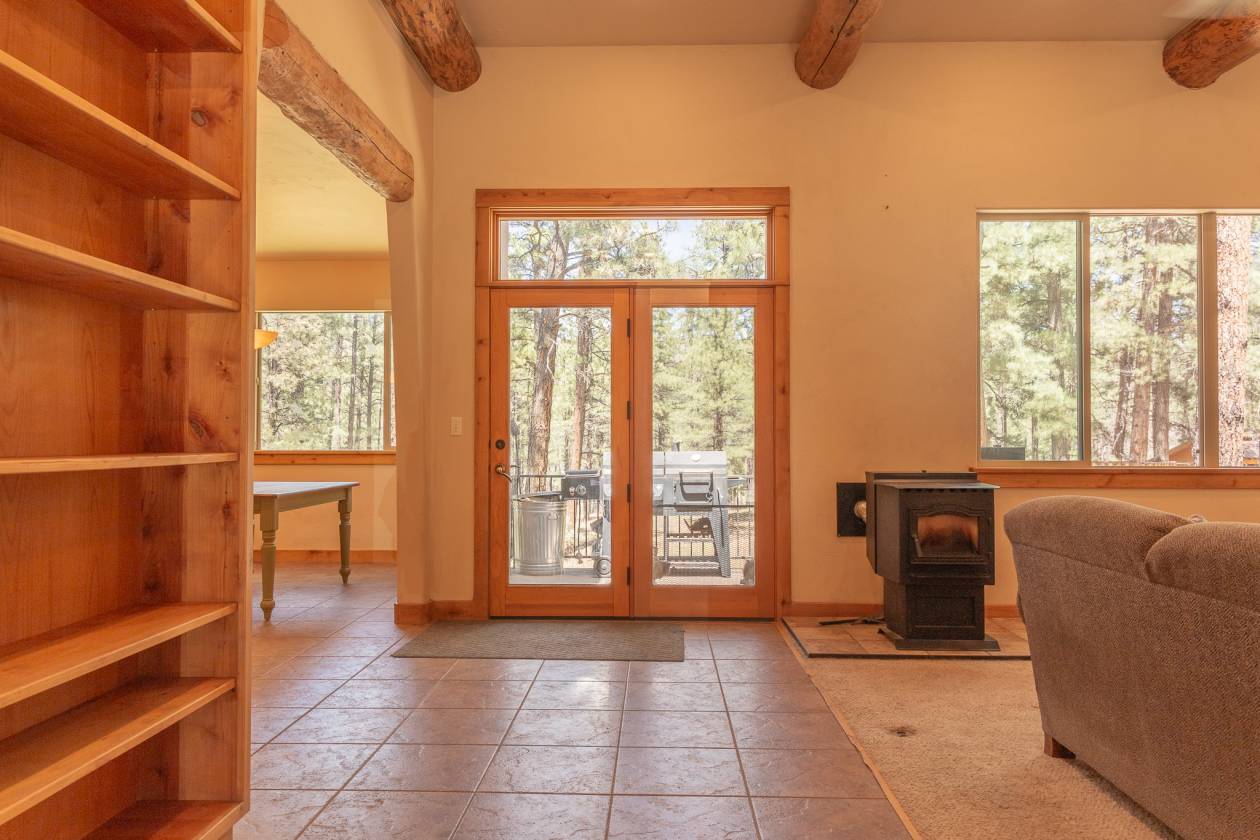 Mountain living in the pines! This impressive custom home is within the Deer Valley Estates subdivision, a fire wise community, just east of Bayfield off Highway 160. The final half a mile to the property is well maintained gravel road (Treated with Road Lock, a method of road stabilization and dust control using organic polymer to reduce dust. This treatment aims to improve the road's strength and resistance to erosion.), which leads to a recently re-graveled driveway. 3 wooded acres and direct access to the National Forest make this a recreation delight. It is HORSE ready including loafing shed with tack room, corral area, and the back yard is fully fenced. The shed has power and a frost free hydrant, there is also electrical hook ups for your RV when parked. Exterior of the home is maintenance free stucco and stone. Inside is an open floor plan, impressive log accents, home is heated by radiated heat with in floor heating and base board heating, floor to ceiling stone propane fireplace, and a pellet stove for extra warmth in the winter. The primary suite includes an office/sitting area. The bathroom offers a large soaking tub and a shower with double heads. The large, heated, finished basement has been converted to a welcoming bar for entertaining. With the 2 car oversized attached garage and the additional detached garage/shed, there is plenty of room for getting vehicles and toys out of the weather. There is also a hot tub on the back deck. A radon mitigation system is already in place. Approximately 20 miles to Durango or Vallecito Lake and 30 miles to Pagosa Springs. Schedule a showing today!