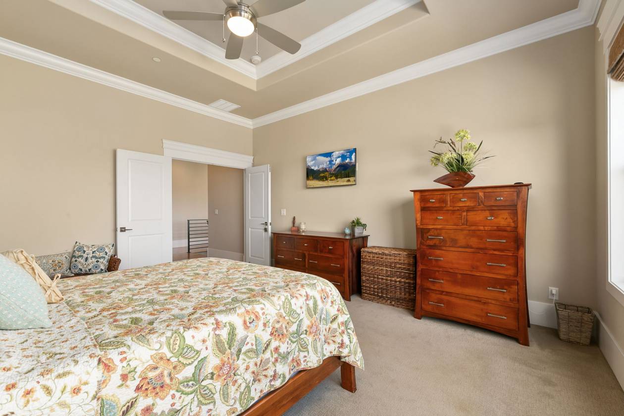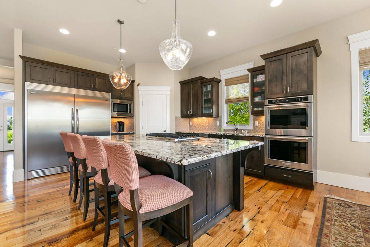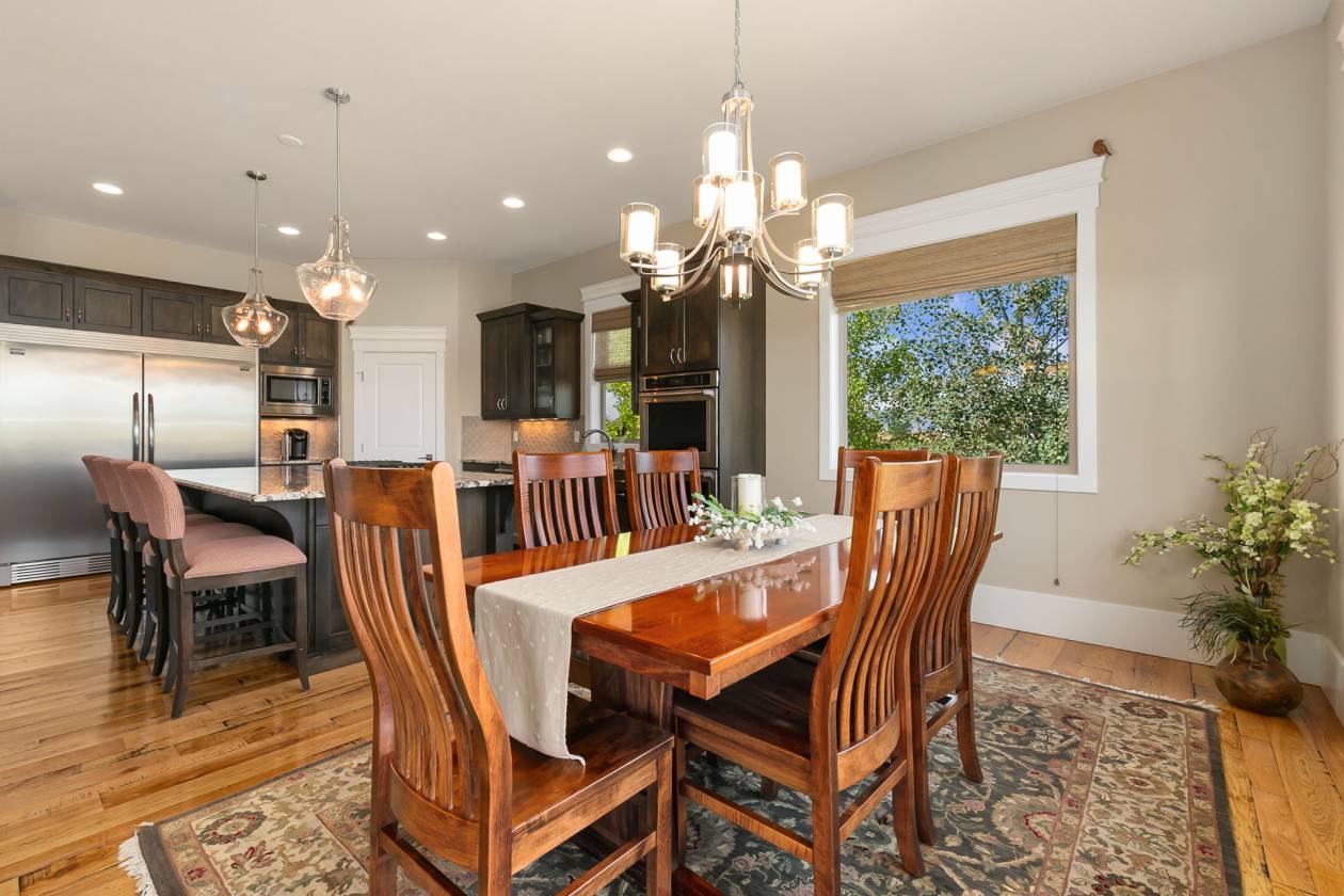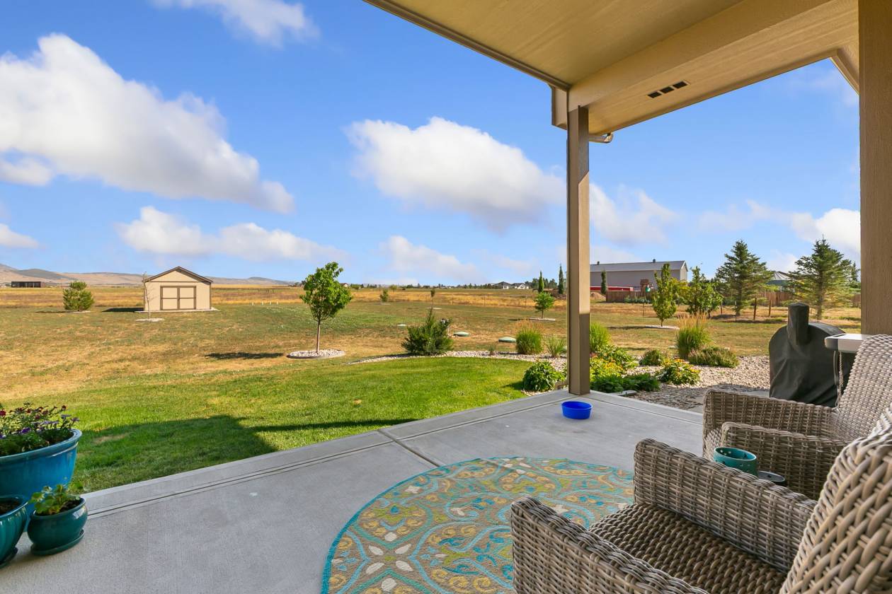 This stunning custom ranch combines tranquility, luxury, and convenience—just 10 minutes from Old Town. Nestled on 5 acres in Scenic Ranch Estates, a private 200-acre equestrian community, residents enjoy horse riding trails, a shared arena, and the freedom to add outbuildings or farm animals with an HOA-approved pasture plan. Inside, an inviting open floor plan showcases rich hickory floors with a striking ebonized finish and custom millwork windows that flood the home with natural light while capturing breathtaking mountain views. The gourmet kitchen is a true centerpiece, featuring granite countertops, a large island, 5-burner gas cooktop, double ovens, a professional-grade side-by-side refrigerator and freezer, and a spacious walk-in pantry. The adjoining great room impresses with a beamed ceiling and an eye-catching stone gas fireplace, while the generous dining area flows seamlessly to the backyard, enhancing the indoor-outdoor connection. The expansive primary suite offers a spa-like bath with a floating double vanity, soaking tub, dual-head shower, and private water closet. For added convenience, the large walk-in closet connects directly to the laundry room. Two additional bedrooms, a full bath, and a powder room for guests complete the main level. Outside, the backyard features a covered patio, raised garden beds with full irrigation, and a garden shed. For dog lovers there is an electronic dog fence and RFID controlled door from the laundry room to the spacious fenced dog run. The oversized 3-car garage with epoxy floors offers excellent storage, while the full unfinished basement - complete with four egress windows and a plumbing rough-in - provides endless options for expansion. Property has been Pre-Inspected and includes a one-year First American Home Warranty for added peace of mind.