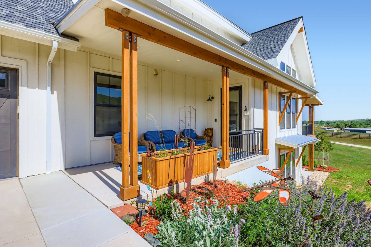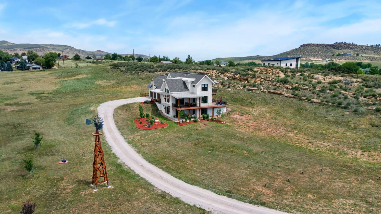 Incredible opportunity to own this carefully constructed, custom built home designed by architect Brian Majeski, Rural/Urban Design! Nestled on over 5 picturesque acres of rolling pastures, dramatic rock outcroppings, & sweeping 360' views, the home was designed with 5 spacious bedrooms, a large recreation room (with walk-in closet), 4 full baths, & a spectacular walk-out basement with a serene private patio. Stacked windows & soaring ceilings compliment the open concept floor plan & beautiful modern finishes. Custom Tharp cabinets, Jon Boos island, & site-finished hickory floors throughout demonstrate fine attention to detail. The spacious primary has a 5-piece bath, 2 walk in closets, & its own private balcony. Don't miss the charming loft in the second upstairs bedroom or the huge bonus space above the garage. (Included in square footage as 621 sqft of unfinished space with no heat source.) Incredible views from every window & a lovely wrap around deck bring the outdoors in. Outside you will find usable acreage & multiple choices to enjoy your land. Unwind on your front porch, the private balcony off the primary bedroom, the main level decking, or the lovely patio off the walk out. Horses are welcome for the equine lover! Remarkable unique rock outcroppings provide an amazing area for camping, relaxing around the fire, or watching the sunset over the mountains. Incredible potential to build something amazing on the rock ledge and expansive grounds or put in an ADU. The property is fully fenced to keep pets & horses in. An oversized 3 car garage, insulated with finished walls, will fit your cars, bikes, boards, & more. Perfectly located just minutes from both Old Town Fort Collins, Horsetooth Reservoir, & the scenic Poudre Canyon, this property offers the perfect blend of convenience & tranquility whether you're seeking entertainment & shopping or outdoor adventures. This extraordinary home offers the best Northern Colorado has to offer!