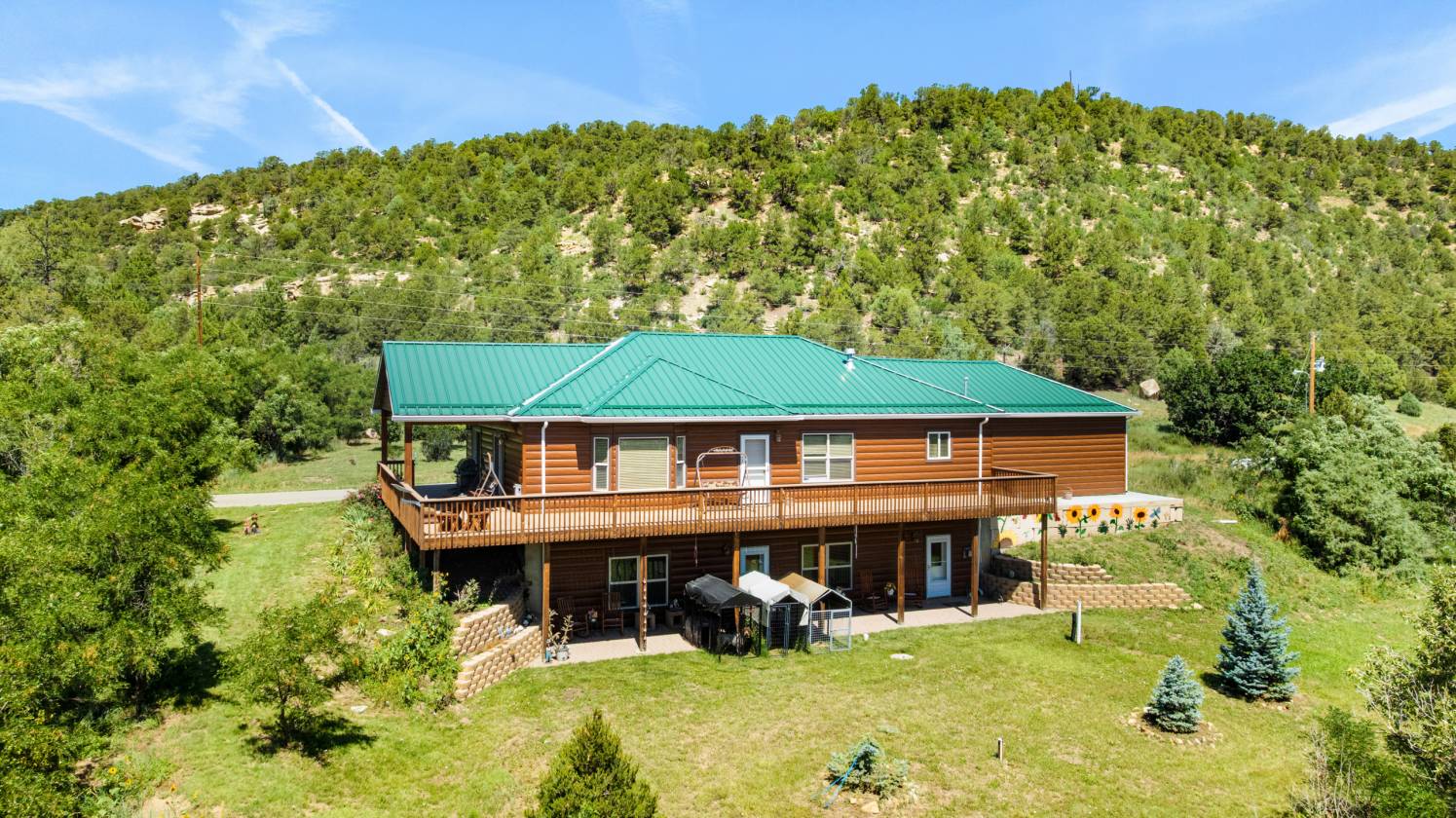 The 3-bedroom, 3.5-bath, 3,600 sq. ft. home provides high ceilings, abundant natural light, and wraparound outdoor living space. Recent updates include a durable metal roof, steel siding, a large deck, and a lower patio. A domestic well, cistern, and water filtration system deliver reliable off-grid capability, supporting a self-sufficient Colorado ranch lifestyle.