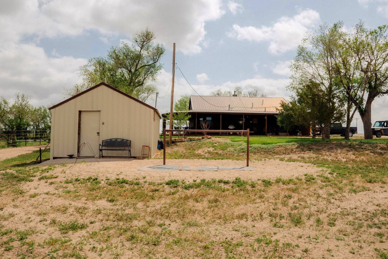 This exceptional 295± acre irrigated farm and feedlot spans two parcels and includes a 4-bedroom, 2-bath home with a wrap-around porch, mature landscaping, and a finished basement. Designed for cattle and hay operations, it features an 800-head feedlot, pipe roping arena, tack shed, irrigated grass trap, grain bins, a 120' x 65' hay shed (2023), calving barn, small platform scale, and 2,040 sf shop. The feedlot includes six pens, auto waterers, a hydraulic chute, cattle scales, and a semi-loadout. The North Farm has 130 acres, 119 pivot-irrigated, with a 15-acre-foot collection pond, 109 shares each of Catlin Canal and Larkspur Ditch, and both gravity and pump-fed water systems. It produces high-quality alfalfa and grass hay, up to 5 tons/acre annually. The South Farm also totals 130 acres with 100 pivot-irrigated acres, a 10-acre-foot collection pond, 120 Otero Canal shares, Catlin shares can be transferred from the North Farm through a 12” underground pipeline. Re-seeded to alfalfa in 2024. Located near paved roads in the Swink School District.