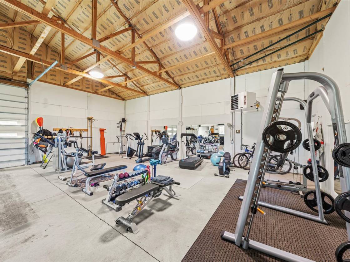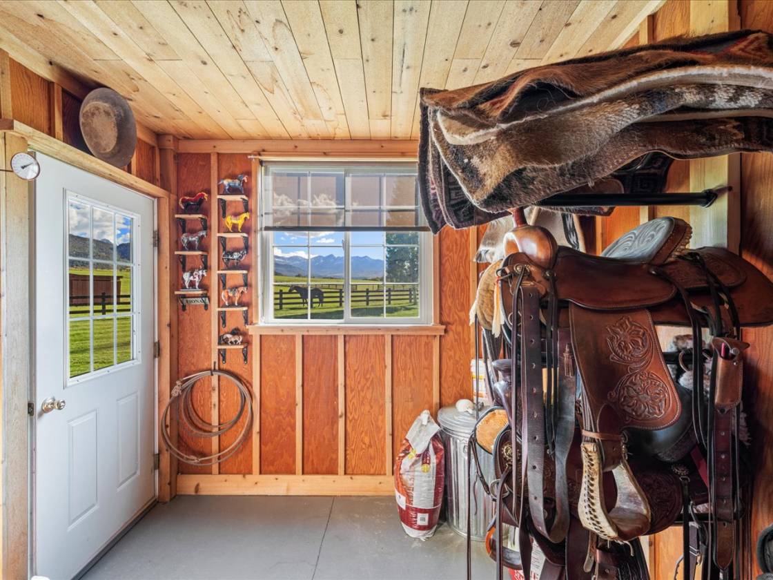 - This turnkey 36.5-acre horse property is fully fenced and offers two abundant irrigation water rights sources producing 62-65 tons of Timothy Grass hay each year. There is a 1,728 sq. ft. heated metal shop/garage for a large truck or tractor, a full gym, toys, and a bathroom. The barn is 1,544 square feet.