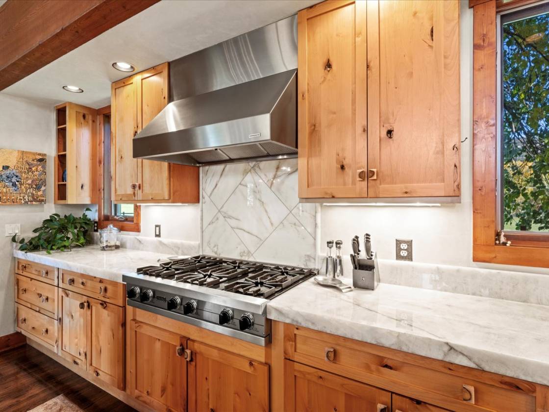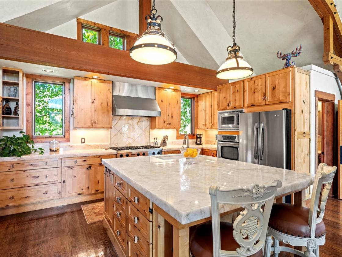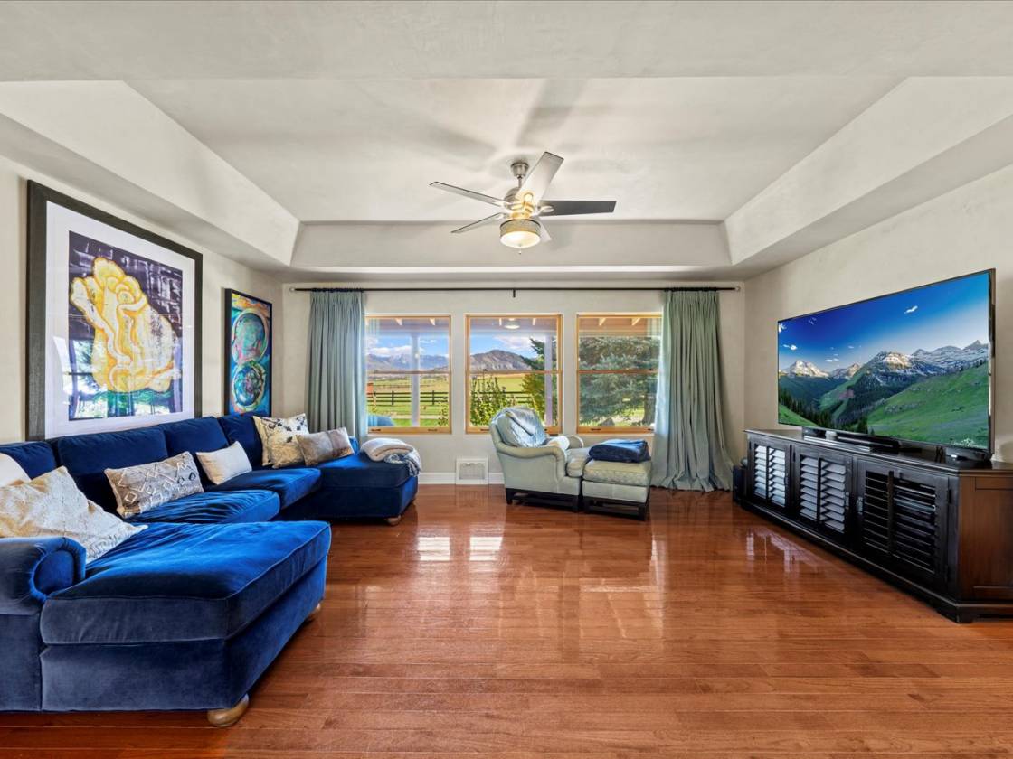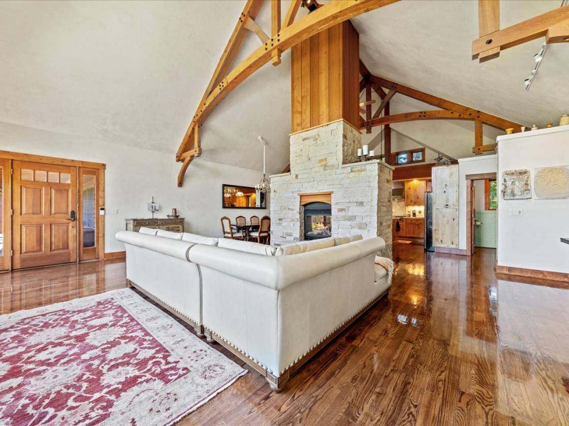 Welcome to the coveted Infinity Ranch, located on the spectacular Pleasant Valley floor of Ridgway, Colorado. The setting of this incredible ranch starts with breathtaking views of the San Juan Mountains and Cimarron Range. Imagine living the dream in such a pristine environment, taking in the fresh mountain air, looking out over your horses with lush green pastures in every direction. This amazing retreat is 3,854 sq. ft. of brilliant workmanship. Solid oak floors and Integral Plaster throughout enhance the home's high-end finishes. Massive Douglas Fir Arched beams and windows frame the views from the Great Room with 20-foot vaulted ceilings. Stay warm with a custom 2-sided Aspen Sandstone fireplace. The gourmet kitchen has floor-to-ceiling custom knotty alder cabinets. The exotic South American Crystalo Quartzite slab island is 5’x7’x3” heated and has 2 cold prep areas, and is a brilliant addition. A 6-burner gas Viking range is enhanced with an Onyx backsplash and Commercial Vent Hood. Amana appliances and Fisher Paykel Dishwasher drawers finish the chef’s kitchen.