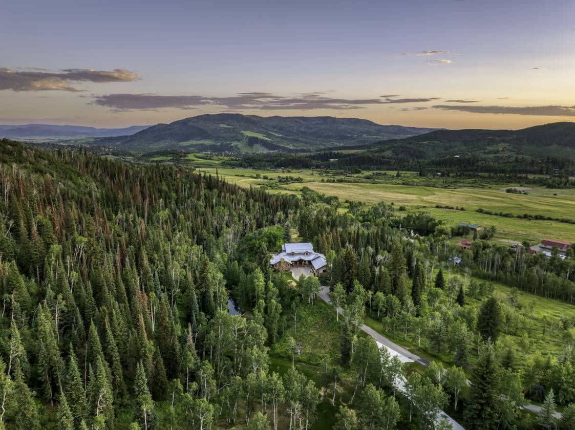 Strawberry Highlands is a one-of-one luxury estate nestled in the highly sought-after Strawberry Park, just under 2 miles from downtown Steamboat. Spanning 18.54 private acres with Butcherknife Creek running through it, this 9,024 sq ft estate is an outdoor enthusiast’s dream and the perfect year-round escape. Extensively renovated by Gerber Berend, the residence features 6+ bedrooms and 5.5 bathrooms with a thoughtful floor plan, including a main-level primary suite complete with a fireplace and private deck. At the heart of the home is a stunning Ullr Designs gourmet kitchen with professional-grade appliances, flowing seamlessly into a spacious great room that opens to a beautiful backyard with rock features. Enjoy sweeping views of Howelsen Hill, Emerald Mountain, and Strawberry Park from the patio, which features a brand-new hot tub and firepit. The lower level boasts a large recreation room with a billiards table, wet bar, cork-floored gym, office, and two additional bedrooms. A deep 3-car garage accommodates large vehicles with ease. The newly finished barn offers exceptional guest or entertainment space with a full bathroom, mudroom, washer/dryer, and elevated deck access. Below, oversized garage doors, workshop, and abundant storage space connect to a versatile sports court—used for pickleball in the summer and ice skating in the winter. Outdoor amenities abound, including a professionally built 2.5+ mile private trail system for hiking, biking, or horseback riding, climbing 300 feet to a panoramic rock outcropping with some of Steamboat's best views. Wildlife is a regular part of the experience here—watch moose, elk and foxes roam the property. Whether you're enjoying backcountry skiing, sledding and pow surfing in the winter or paddleboarding on the private pond, pickleball, frisbee golf and cookouts in the summer, Strawberry Highlands delivers unmatched lifestyle and recreation on one of the most coveted properties in the Yampa Valley.