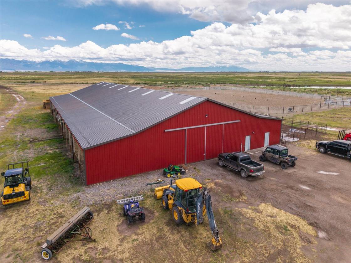 - There is a newly constructed barn/stable/arena/storage building, built in 2019, spanning nearly 15,000 square feet. The arena is equipped with indoor horse stalls, a full indoor riding arena, a loafing shed, a tack room, an equipment area, and a shop—perfect for equestrian enthusiasts or agricultural operations. It also features a full-size outdoor riding arena, cattle pens, a loading chute, and solar stock wells for the ultimate outdoor experience.