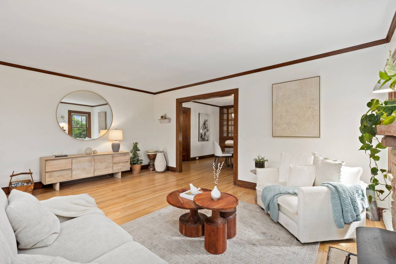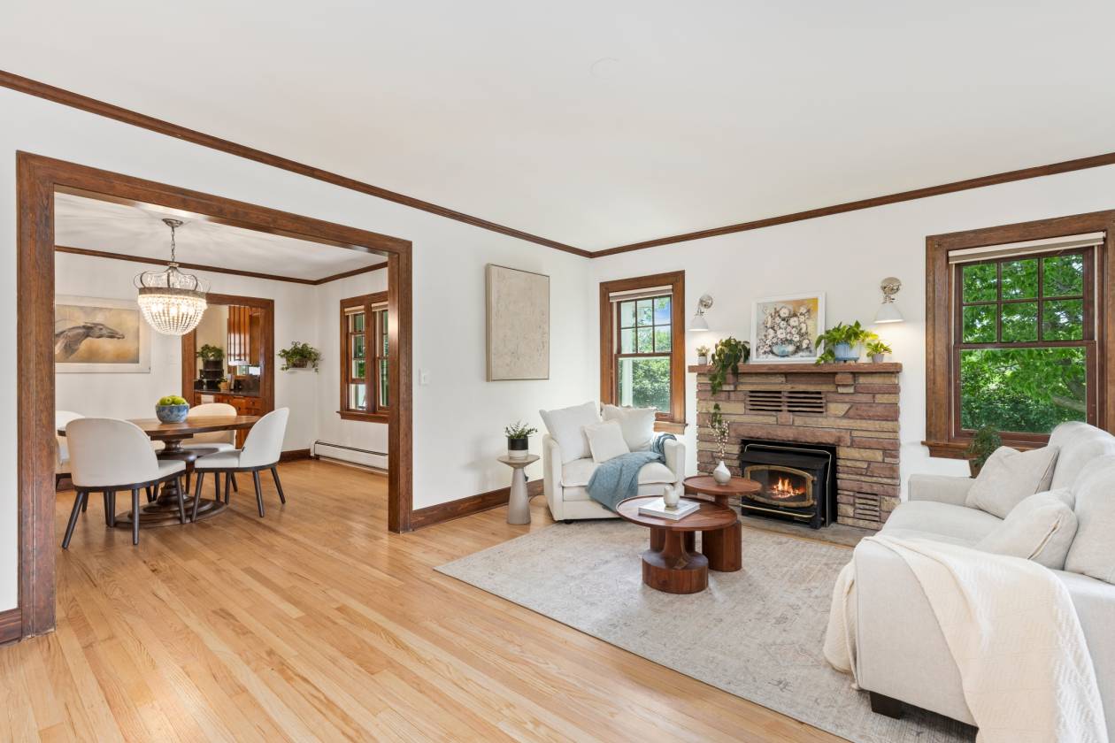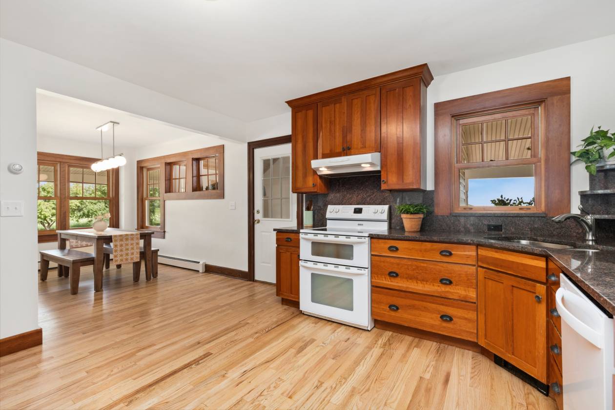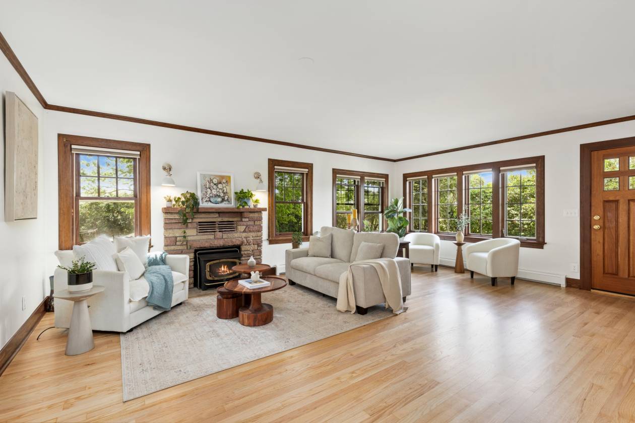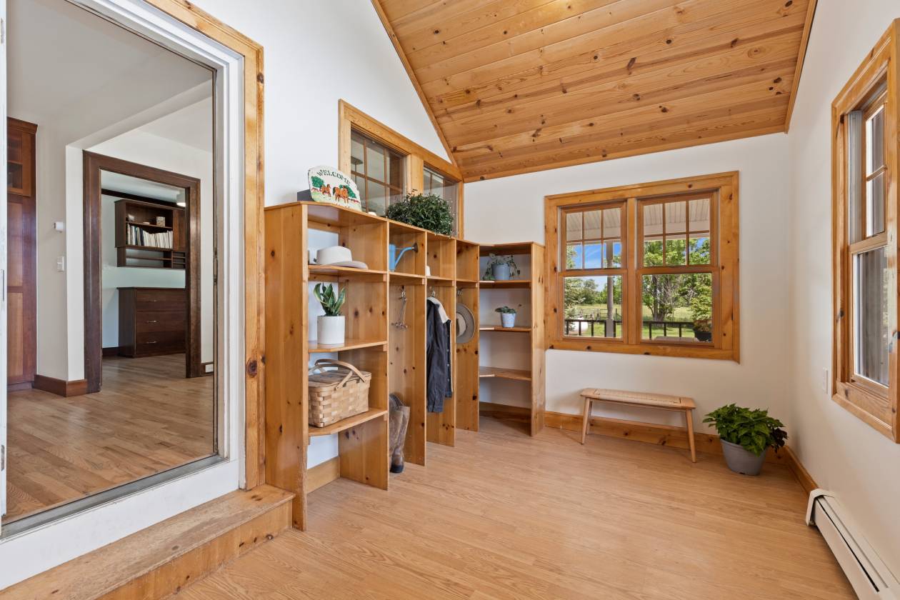 Charming 1934 Craftsman-Style Farmhouse on 11.23 acres with Equestrian amenities and panoramic pasture views. Originally located in Denver's Highlands, relocated and expanded in 2000. 5 bedrooms/3 bath layout with natural light, formal dining, breakfast nook, cook's kitchen and finished basement. Lilac privacy wall, mature trees and flower beds enhance the setting. Long driveway leads to a central square with mudroom entry, barn with 6 stalls and runs, 3-bay shop with tack room, and custom hay shed designed for stack retriever delivery. Approximately 7 acres in hay production yields 200-300 bales per year. Additional features include a chicken coop, 2 dry lots, paddocks, roping arena with cattle chute and jump-friendly footing.