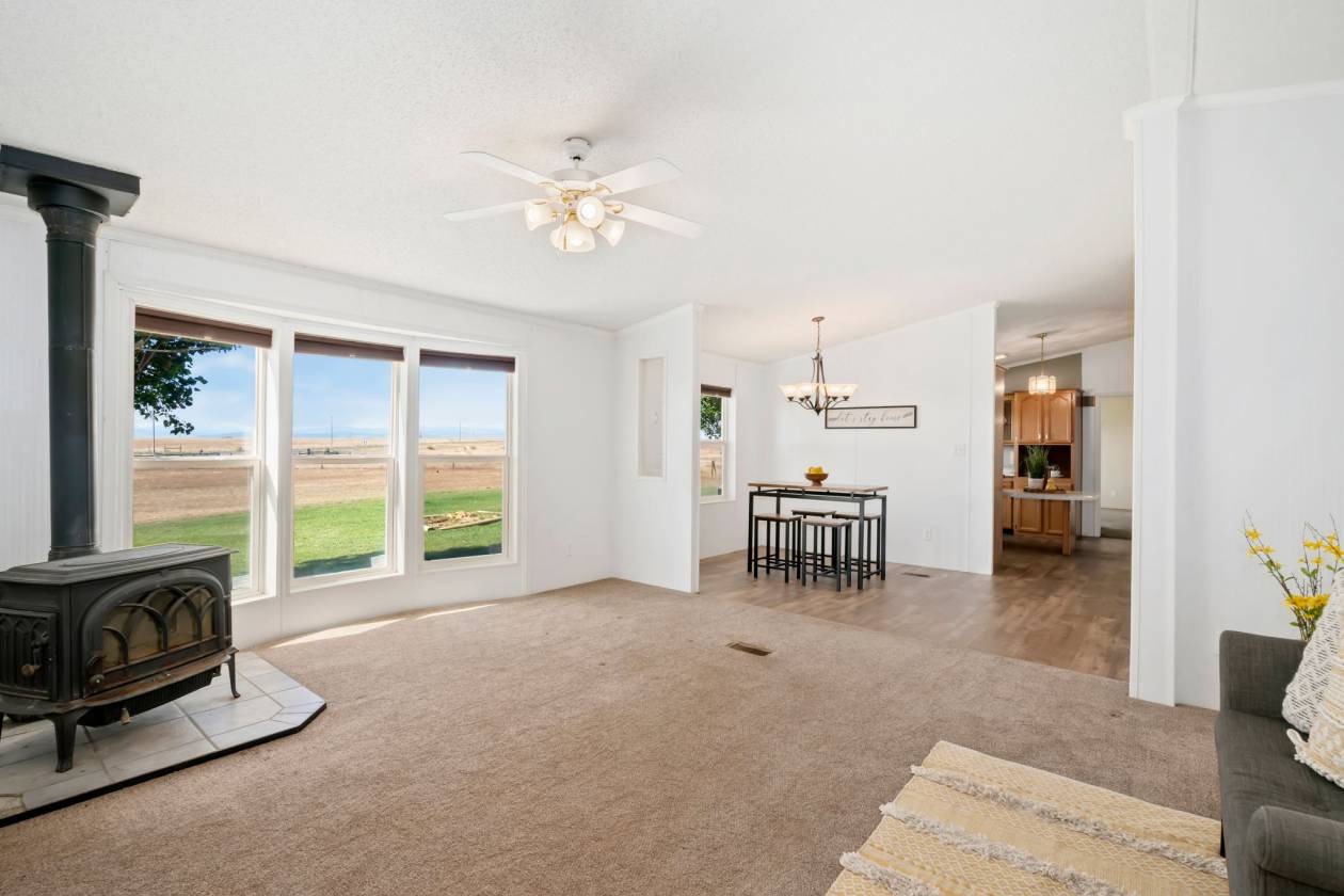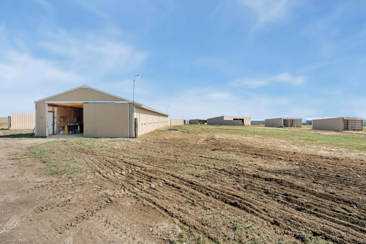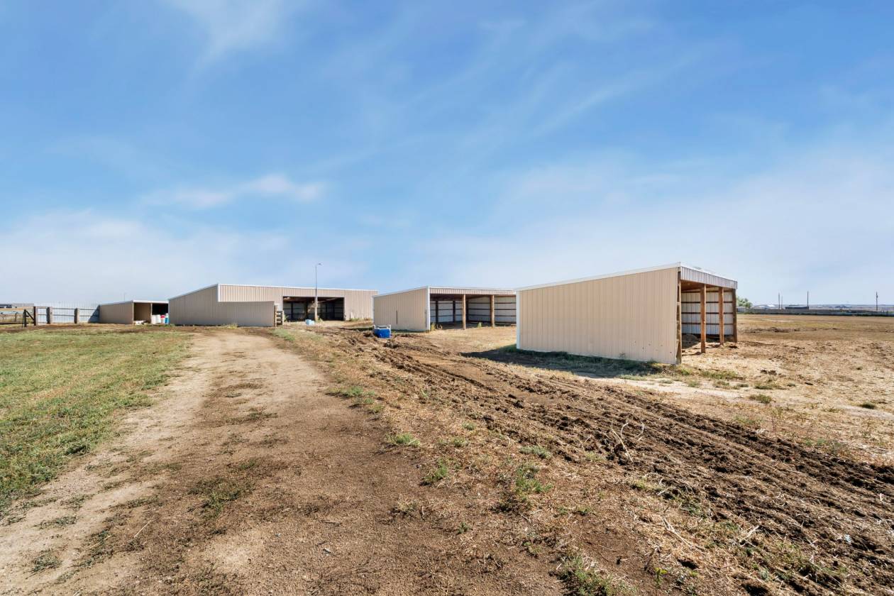 Ideal property for livestock or agricultural business. 60 acres located directly off of a paved road with easy access to I-25 and close proximity to Wellington or Nunn/Hwy 85 with beautiful mountain & plains views. The extensive outbuildings include an attached 1920 square foot 5 bay garage. The 120x26 barn can work for large animals or is immediately ready with 10 small livestock stalls, hot and cold running water, and small enclosed utility/tack room. The 90x12 lean-to can house small equipment or hay. Additional livestock buildings include a 72x28 building and two 40x20 lean-tos. Two large feeding paddocks with concrete feeders, one with a 30x19 lean to. Multiple automatic waterers and frost free hydrants. Pasture is fully fenced with a four strand barbed wire. Some fencing is needed in the paddock areas and around the buildings to welcome the herd, but the framework is there for a successful livestock operation. The spacious ranch style home with 4 bedrooms & 3 baths includes a cozy wood burning fireplace, an eat-in kitchen + a dining area and a large attached breezeway to the attached garage. The acreage would qualify for a Family Farm Division for an extra building site for family (Buyer to verify). Buyer to verify well use for intended livestock. Some of the photos included are from 2019.