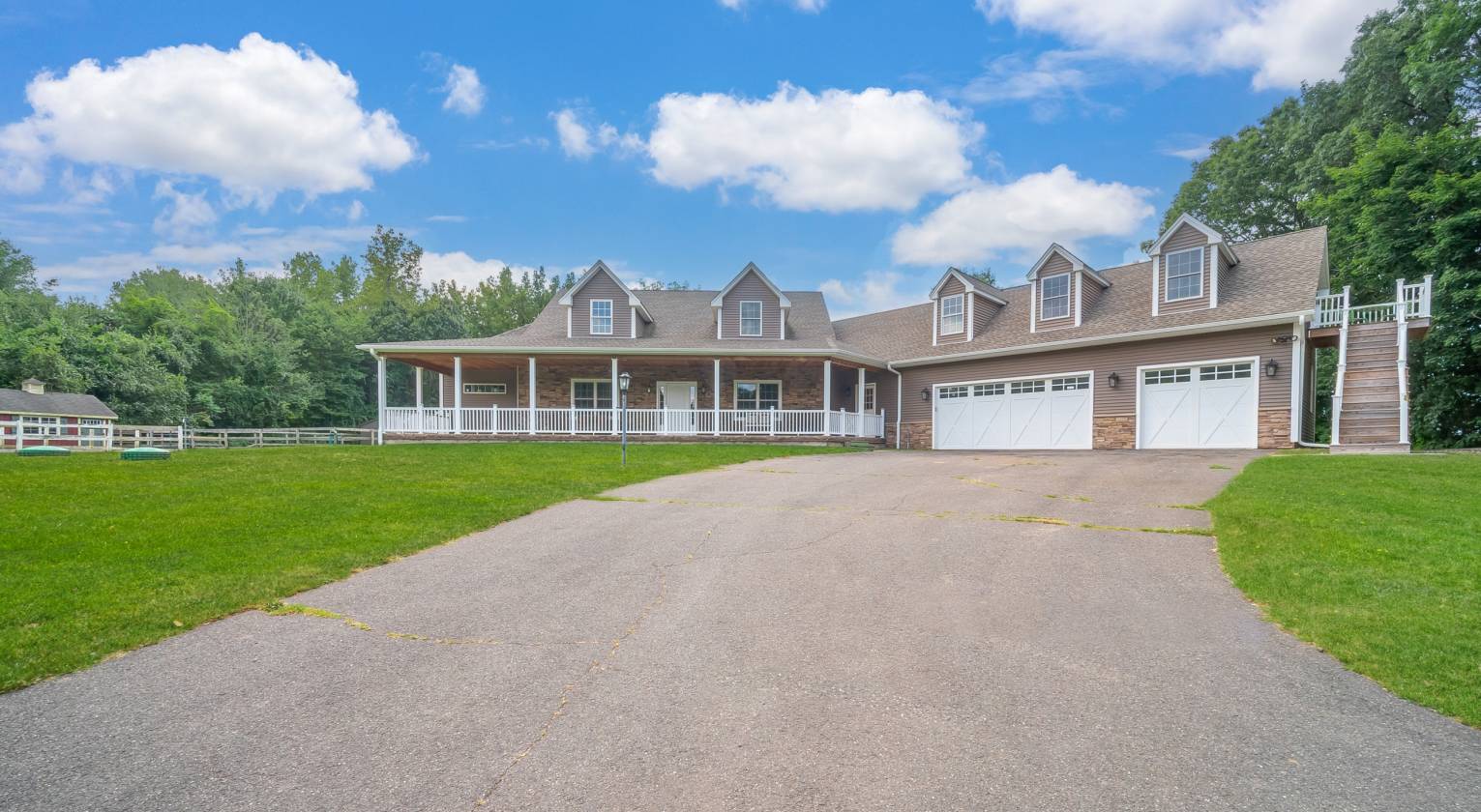 Built for a builder by a builder-this stunning estate offers quality construction and endless possibilities. The main house spans 3,500 sq ft on the first floor W/5 bedrooms & 4 full baths. A pellet stove at the heart of the home keeps it cozy year-round. The second floor boasts 2,500 sq ft of unfinished space, perfect for a future in-law suite, while a newly finished 1,000 sq ft accessory apartment space above the garage is ideal for in-law/out-law living, barn help, or Airbnb. The primary suite includes a gun-safe closet. Features include a brick paver patio with hot tub & sauna, stone front exterior, wraparound stamped-concrete porch, recessed lighting, & a driveway lined with lights. The home is wired for a generator, with 400-amp service and an owned 1,000-gallon underground propane tank. Equestrian amenities are equally impressive: a 70x150 riding arena, 8 stalls (including 2 broodmare stalls), 3 with direct run-outs, rubber mats, hay drops from the loft, and fans for ventilation. A 2,000 sq ft hay loft with walk-up stairs holds 1,000 bales. The heated tack room includes laundry & a hot water heater. With 10+ turnout paddocks, each with water spigots, plus sheds and run-ins, this property is a horse lover's dream. Conveniently located close to Bradley International Airport, this estate is a rare combination of craftsmanship, comfort, and equestrian functionality.