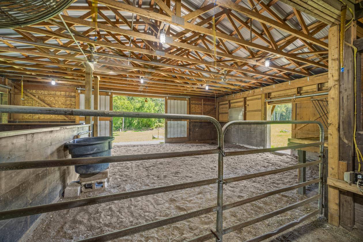 - The expansive barn offers ample space and flexibility, with the infrastructure in place to add more stalls to suit equestrian or livestock needs. The entire property is fully fenced, enhancing both security and usability for animals and residents alike.