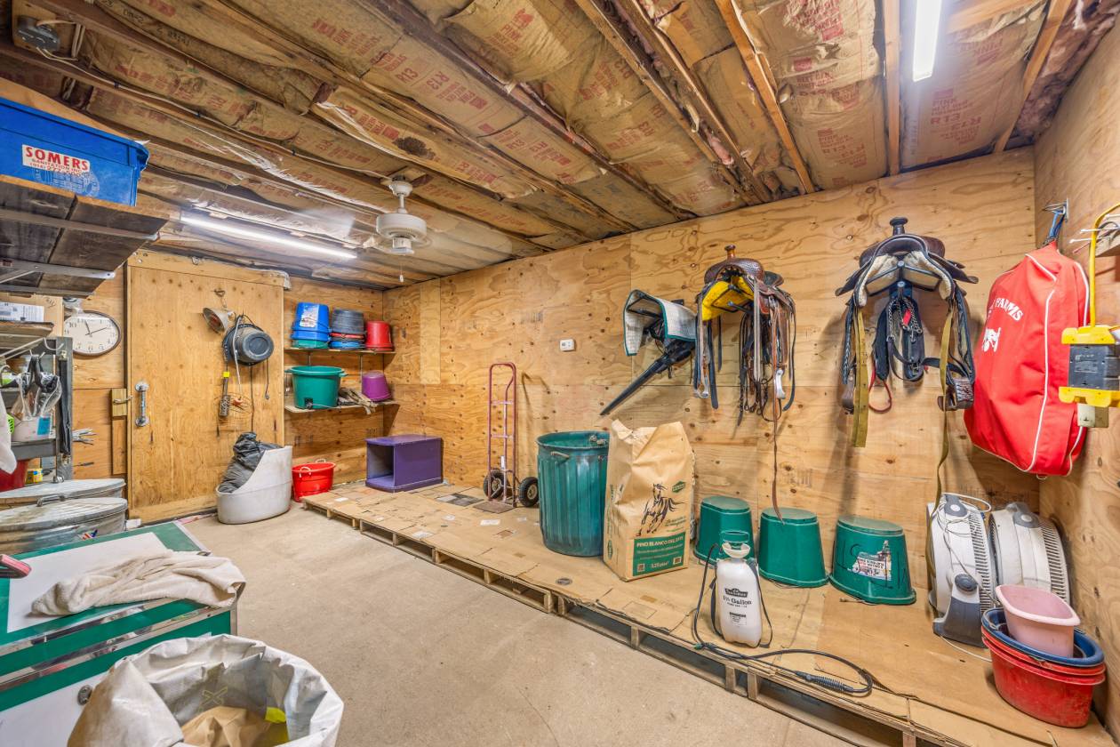 - The upper level of the main barn is ideal for livestock and agricultural equipment storage. With multiple access points, it easily accommodates large farm machinery and offers abundant space for hay and feed storage.