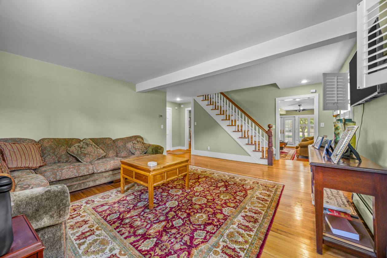- A spacious family room offers the perfect setting for relaxation or gatherings. The first floor also features a private bedroom suite, complete with a gas stove, antique sliding barn doors, and a fully handicap-accessible en-suite bathroom—making it ideal for multigenerational living or guest accommodations.
