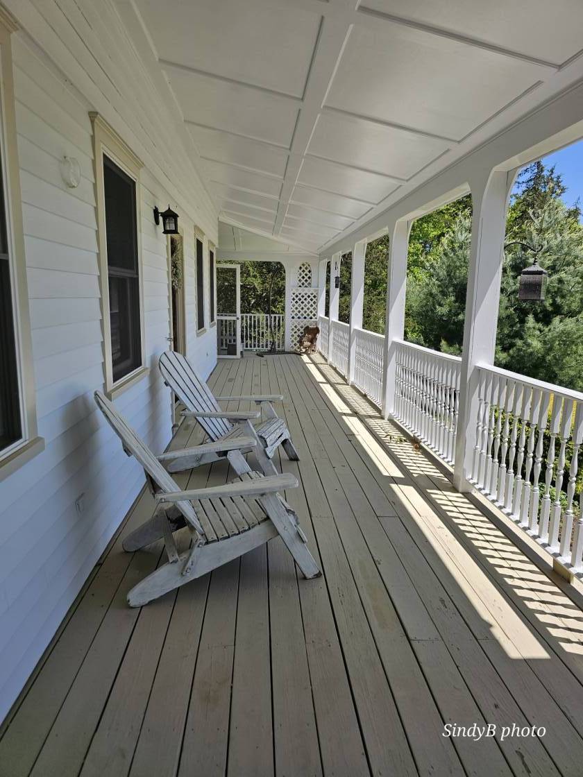 - Wrap=around front porch partially screened in