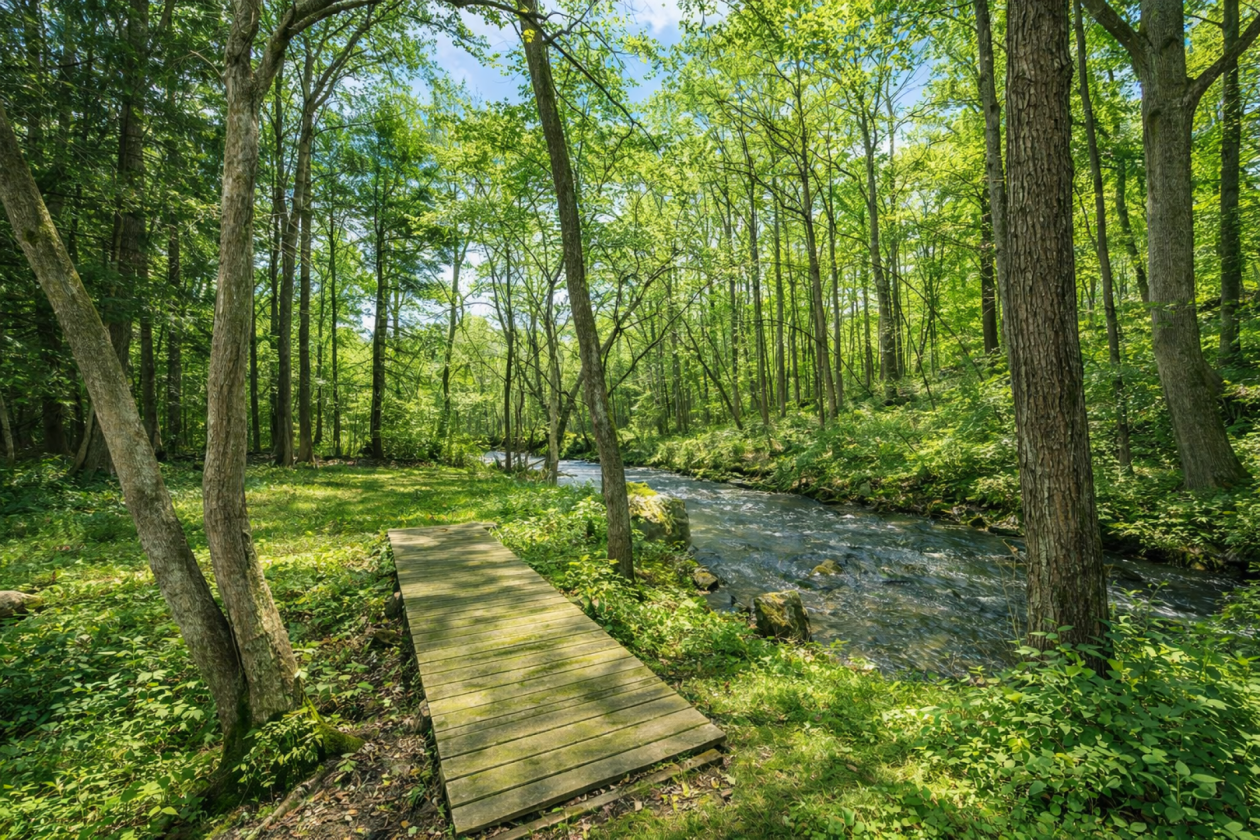 - Wooded surroundings offering privacy and natural buffering
