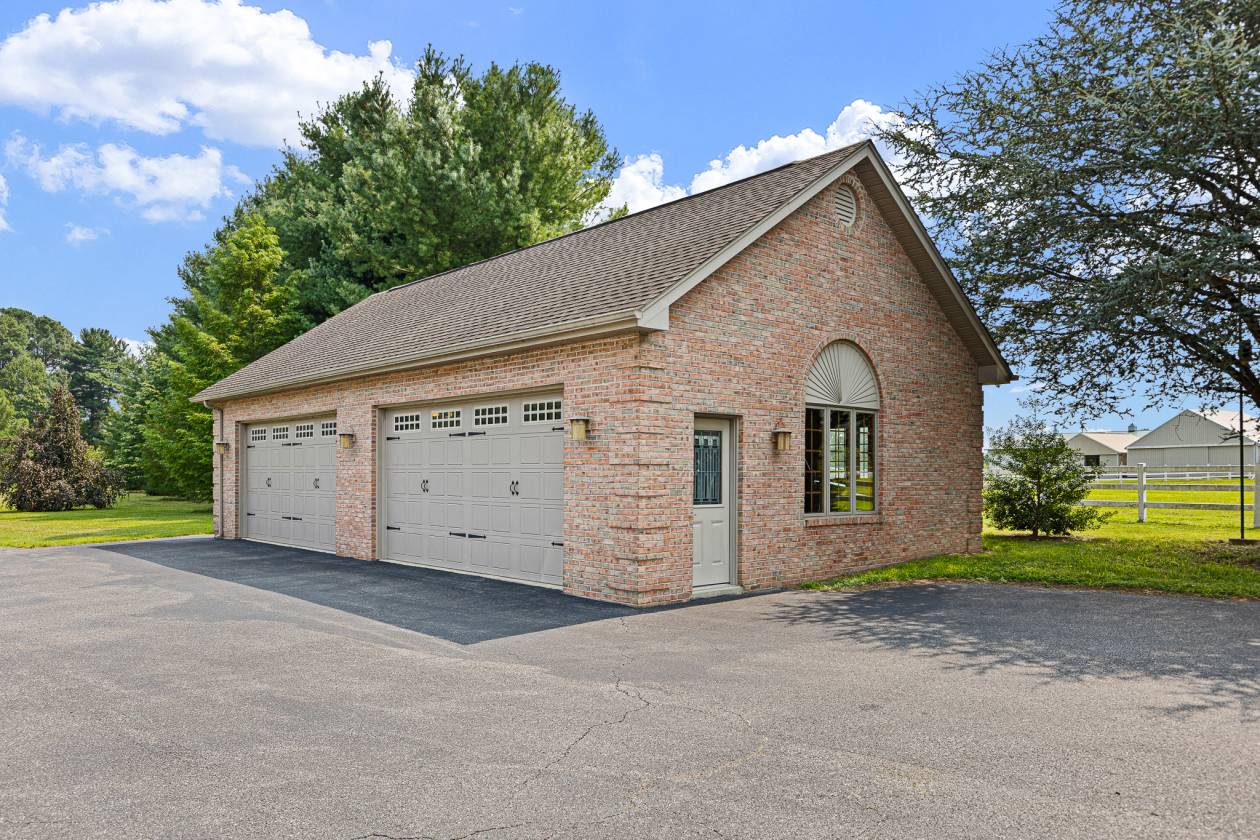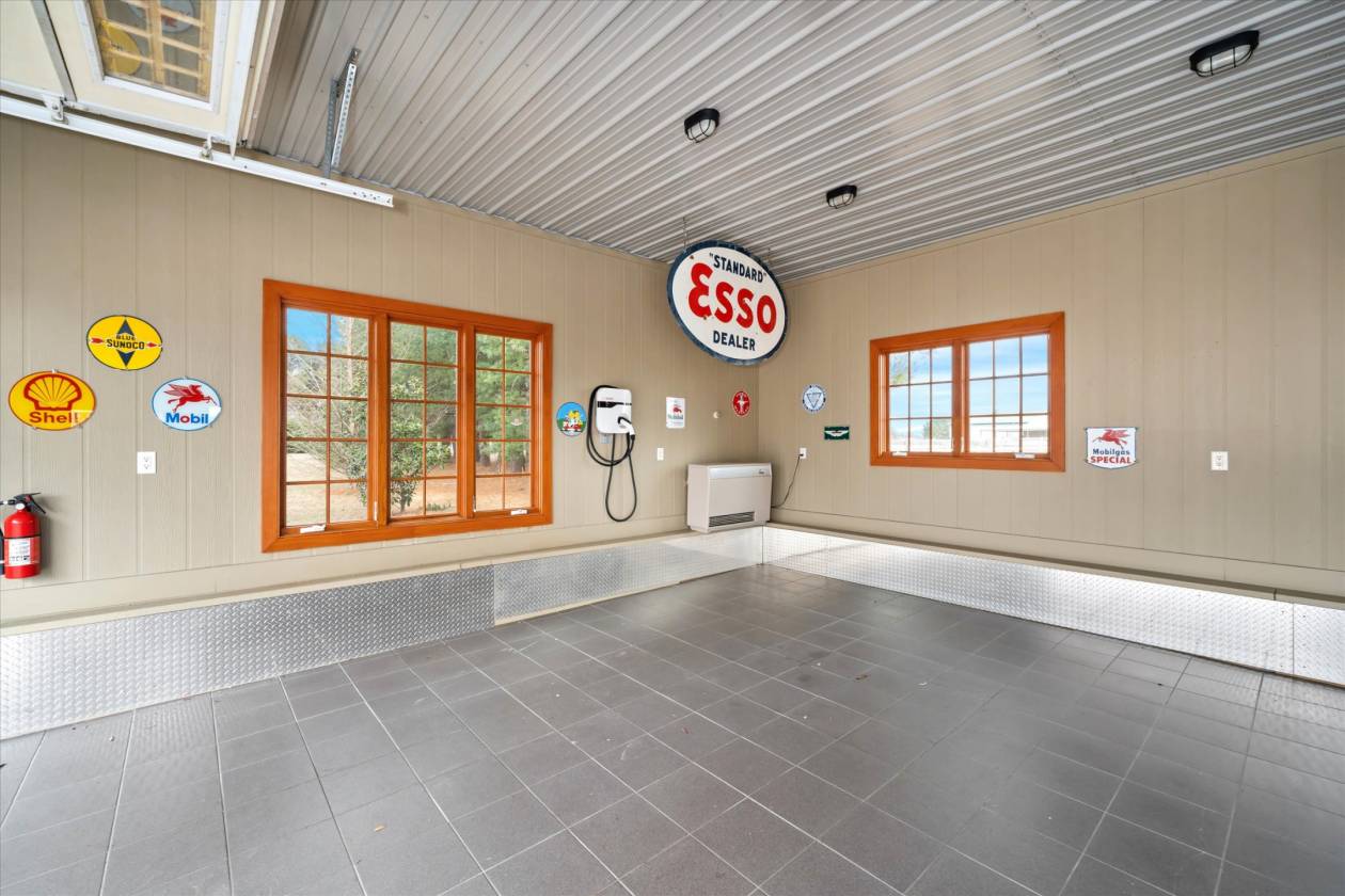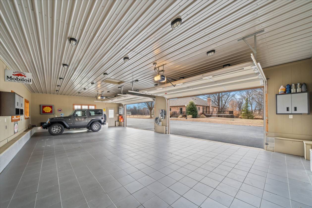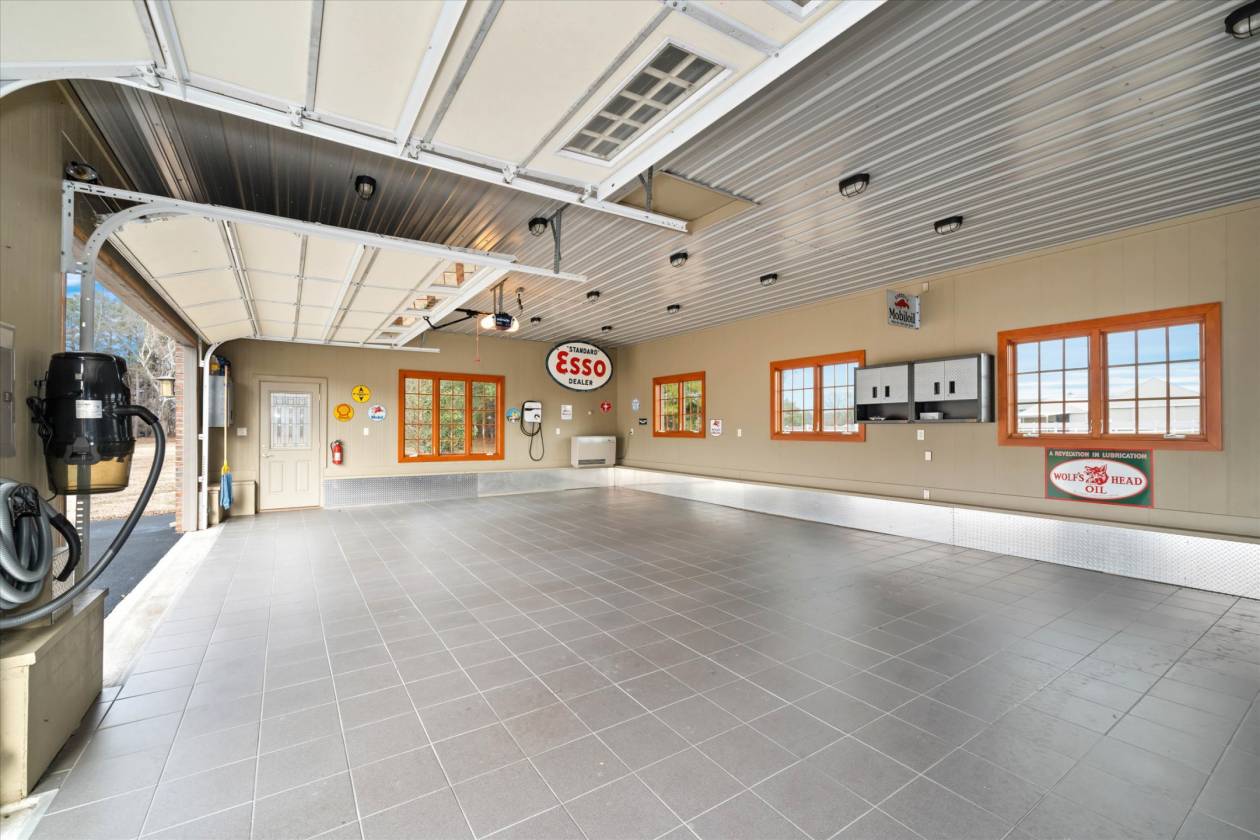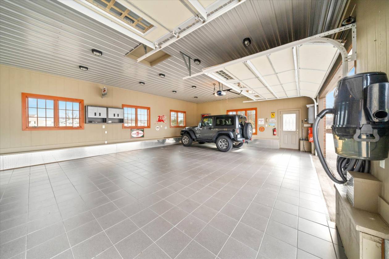 - For the car enthusiast, there is a 4-car custom detached all-brick garage with a tile floor, heat, insulation, electric, EV charger, and a wall-mounted vacuum to service your vehicles.
