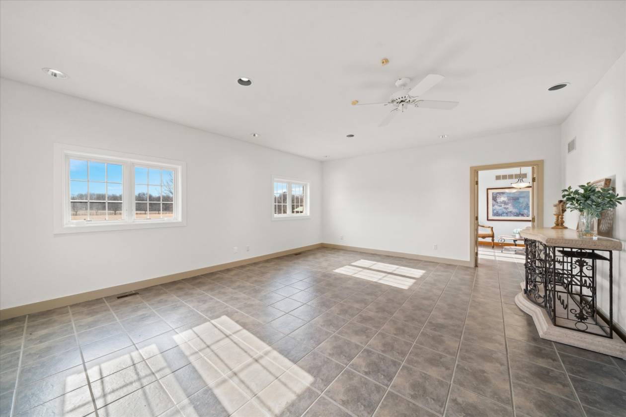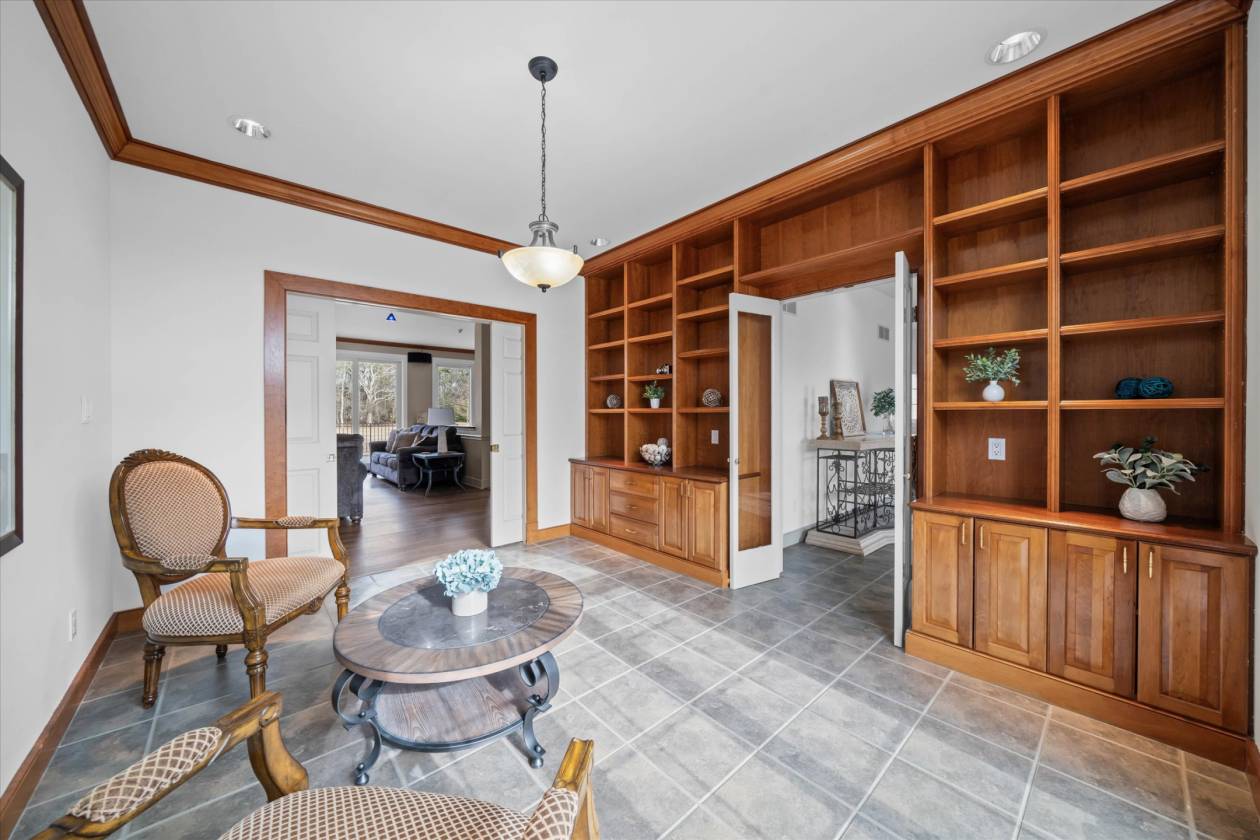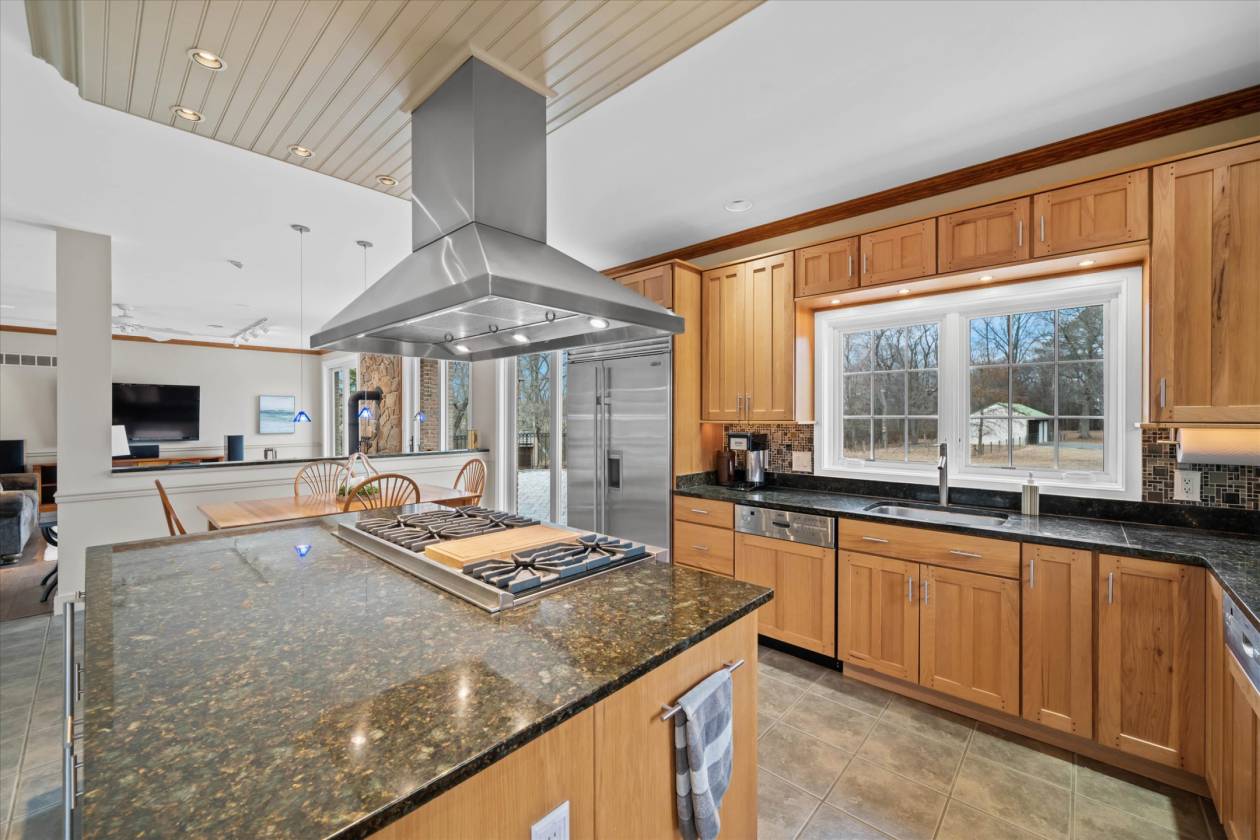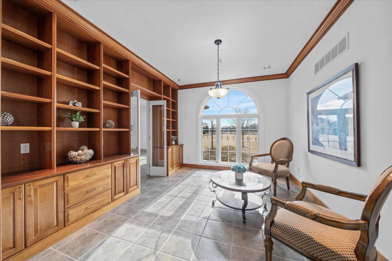 - Gourmet, chef's kitchen with high-end appliances (Sub-Zero, Viking, and 2 Bosch heavy duty dishwashers), an under-counter ice maker, and custom hickory cabinetry that is open to the large, bright family room with 8' sliders to a custom paver patio. Beautiful library with custom cherry cabinetry and a large window overlooking the front pasture. There is also a large flex room that awaits your creativity. It could be a game room, an additional seating area, or an in-law or au pair suite. The possibilities are endless! The large, walk-out finished basement awaits your special touch. Step outside the sliders to the relaxing hot tub. The pool table inside is included as are the electronics, TV's, and most furniture. The home features a floored, walk-up attic that could be finished for additional living area, and insulation additionally located between the basement and first floor, and all interior walls are insulated as well.