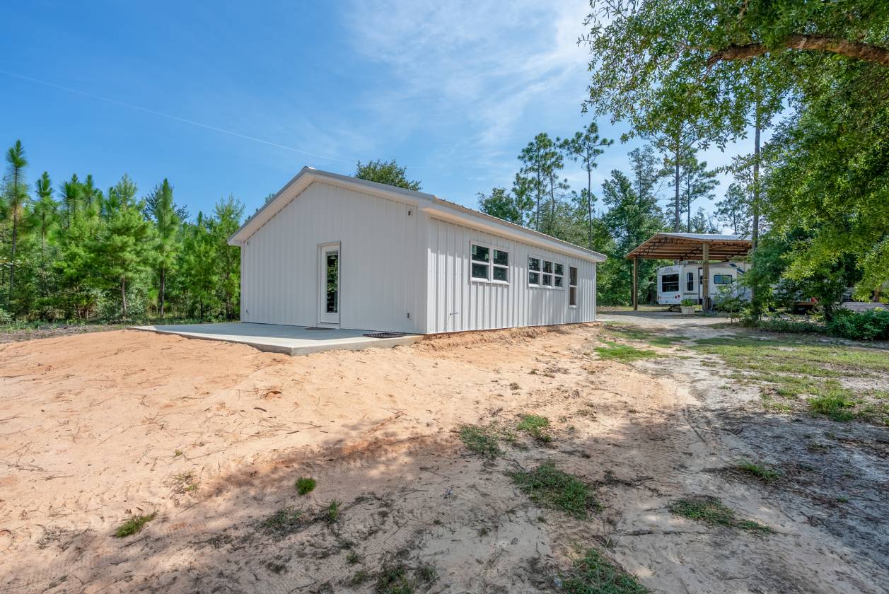 Discover nearly 32 serene acres in Clarksville, Florida, where a clear-water creek, mature longleaf pines, magnolias, and oaks set the stage for privacy, recreation, and opportunity. The property features multiple improvements, including a 12'x24' barn/garden shed with covered work area, a 32'x48' tool shop with enclosed workspace, and a newer 16'x32' insulated metal building with utilities and attached covered area. A restored outdoor bathhouse adds convenience with propane tankless hot water, dual showers, and Trex finishes.