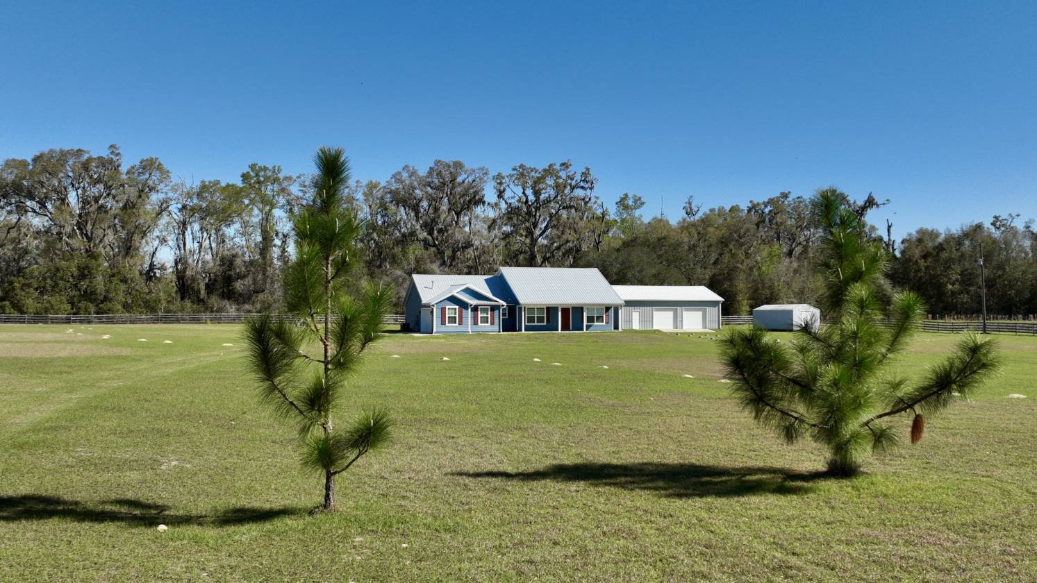 Google maps 249 SW Pleasant Hill Gln. Set in a quiet neighborhood off the main road, yet still convenient to Lake City, Alachua or Gainesville, this pristine 3-year-old home on 5 acres is thoughtfully designed and move-in ready. Enjoy, from your favorite porch chair, the sweeping views of rolling pasture, colorful sunrises, and glowing sunsets. Inside, the open great room offers a warm, welcoming space for family gatherings, friendly get-togethers, and long dinners around the table. The primary suite features a gorgeous tiled walk-in shower and a generously sized walk-in closet. With the 3 bedroom/2 bath split floor plan, privacy is built in, while a bonus room/office provides an ideal option for remote work or a quiet retreat. Beyond the home, a 30x40 Morton Building workshop with concrete floor, power and multiple access garage doors expands your hobby possibilities, along with a 12x30 shed for all of your storage needs. The 2-stall barn is an equestrian haven, complete with hot water wash, washer/dryer hookups, concrete floors and a year-round tack room that could be used as guest quarters. With a little cross fencing, the property can easily adapt to an equestrian estate, a mini farm, or a versatile homestead. Independent utilities (yet same account) include two wells, two septics, and two power poles, which service the home and barn. This is a property designed for comfort, longevity, and the lifestyle you’ve been searching for. It’s close proximity to multiple springs, including world famous Ginnie and Ichetucknee Springs, is the icing on the cake for this incredible property! Call today for your showing!