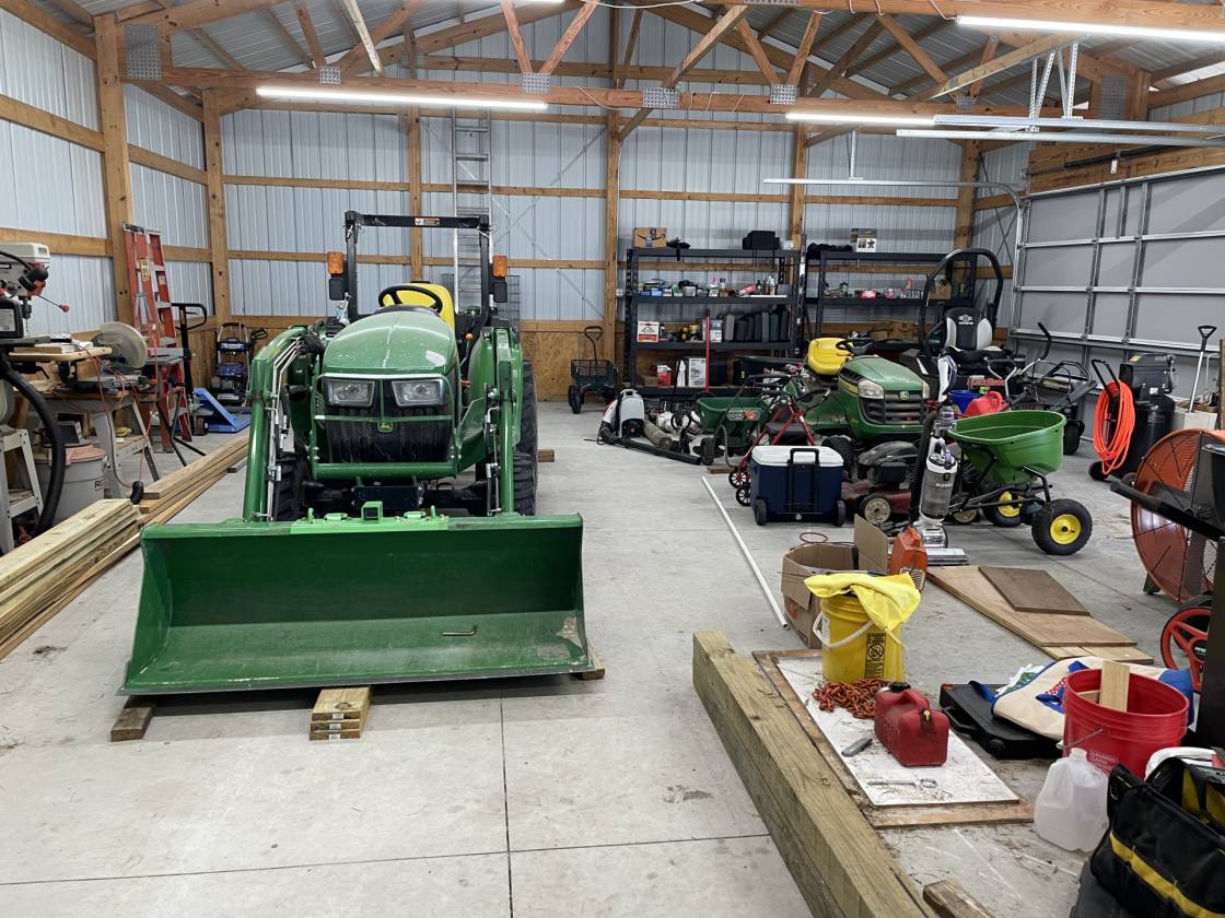 - 30x40 Morton Building workshop w/electric, 3 garage-sized door (2 - 8’ wide & 1 - 10’ wide) and concrete floor