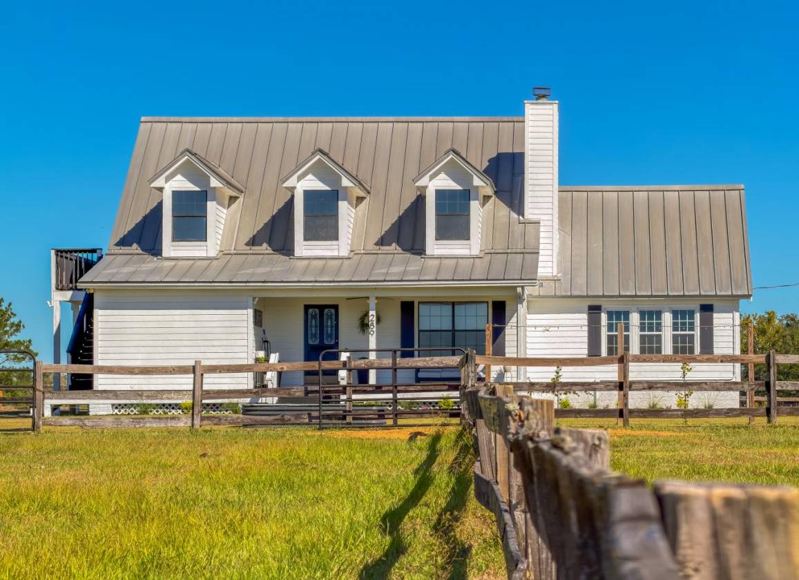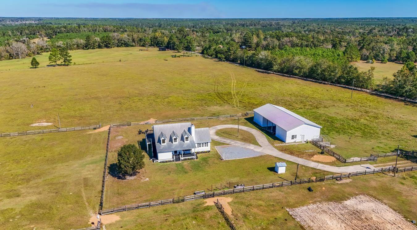 Discover this beautifully maintained and upgraded 30.35-acre equestrian estate offering the perfect blend of functionality, comfort, and rural luxury. The 4-bedroom, 2.5-bath, 2,188 sq ft two-story home features a flexible layout, including an upstairs bedroom with a private exterior entrance-ideal for guests, an office, or multigenerational living. Recent updates include full interior and exterior paint (home and barn), a remodeled kitchen with new upper cabinets, backsplash, and countertops, electrical updates, new hot water heater, toilets, blinds, ceiling fan, hallway lighting, and whole-home window tint. Added conveniences include Ecobee WiFi thermostats, new wired smoke detectors, interlock generator plugs for both home and well pump, a new garbage disposal, and Sentricon termite protection across all structures. The home also features a Galvalume standing seam roof and property-wide surveillance cameras for peace of mind. Equestrian and agricultural amenities abound-an 11-stall barn with electric and an A/C tack room, automatic barn lighting, and a riding and jumping arena. The property is fully fenced and cross-fenced with multiple grazing pastures, driveway gates, and a new 4-board paddock perfect for mini horses or goats. Automatic waterers serve the pasture animals. Additional outbuildings include a massive 408014 garage with open carport ideal for tractor, RV, or boat storage, and a 2240 office/workshop with loft-fully powered, plumbed, and ready for conversion to additional living space (buyer to verify). Enjoy country living with modern comforts-an above-ground 18'18'52? pool with lights and fountain (electric prepped for inground pool), established raised vegetable gardens, and producing citrus trees (orange, lemon, lime, and grapes). Super low property taxes thanks to agricultural and homestead exemptions. Ayrstone Mesh WiFi system extends reliable internet across the property. Furnishings negotiable. This is a rare opportunity to own a true turnkey equestrian estate-beautifully maintained, thoughtfully upgraded, and ready for its next chapter.