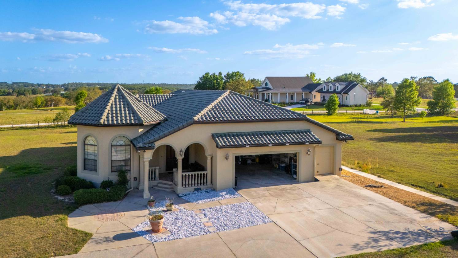 this charming single-family residence, built in 2003, offers a harmonious blend of comfort and natural beauty - gracefully situated on an expansive 5.43-acre lot, providing ample space for both relaxation and recreation. The home's thoughtful design encompasses 3 cozy bedrooms and two and a half bathrooms, ensuring a comfortable living experience. Spacious master bedroom with walking shower, sunken tub, walking closet and an office space attached. New AC unit (2024). Crown molding throughout and two vaulted ceilings add charm and luxury to this property. The spacious interiors are bathed in natural light, creating a warm and inviting atmosphere that resonates throughout the home. A new water heater powered by solar panels and a water softer system adds modernity and convinience. Whether you envision cultivating a lush garden, establishing equestrian facilities, or simply enjoying the tranquility of open spaces, this property accommodates your aspirations.
