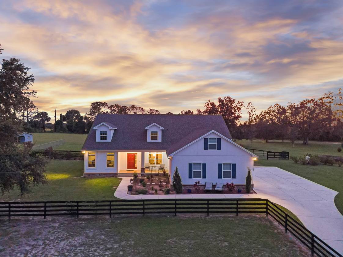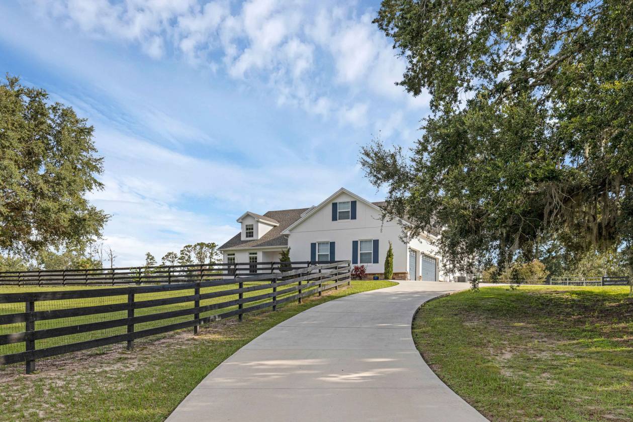 Welcome to luxurious living in the Saddle Ridge, in the heart of the horse community of Lake County Florida. This expansive 3, 502-square-foot home offers a blend of comfort and elegance on over 4.5 pristine, fenced acres. Featuring two primary bedrooms, one conveniently located on the first floor and another upstairs, this home is well-suited for multi-generational living. The spacious layout includes five bedrooms, three full bathrooms, and an expansive screened-in back porch perfect for enjoying scenic sunset views. This home offers an ideal location with easy access to a wealth of attractions and conveniences. Just minutes from Grand Oaks Equestrian Center, golf courses, fishing lakes, and a variety of dining, shopping, and entertainment of The Villages plus, 30 miles from the Ocala World Equestrian Center.
