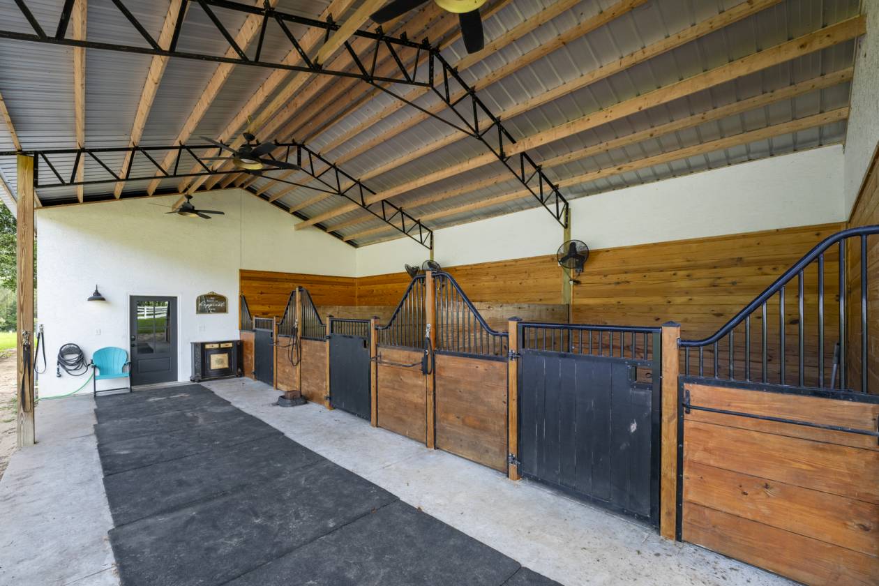 - Custom-built three-stall barn.
