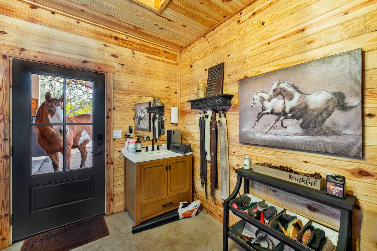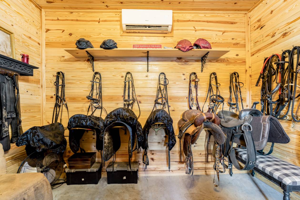 - Air-conditioned tack room with sink.