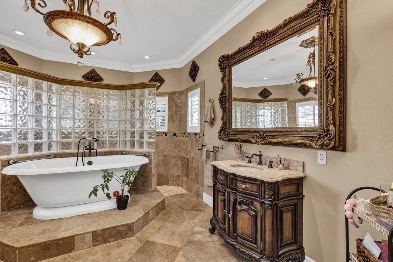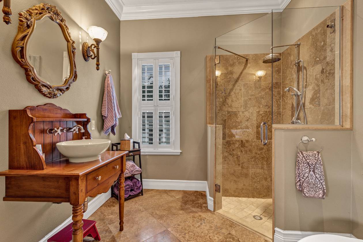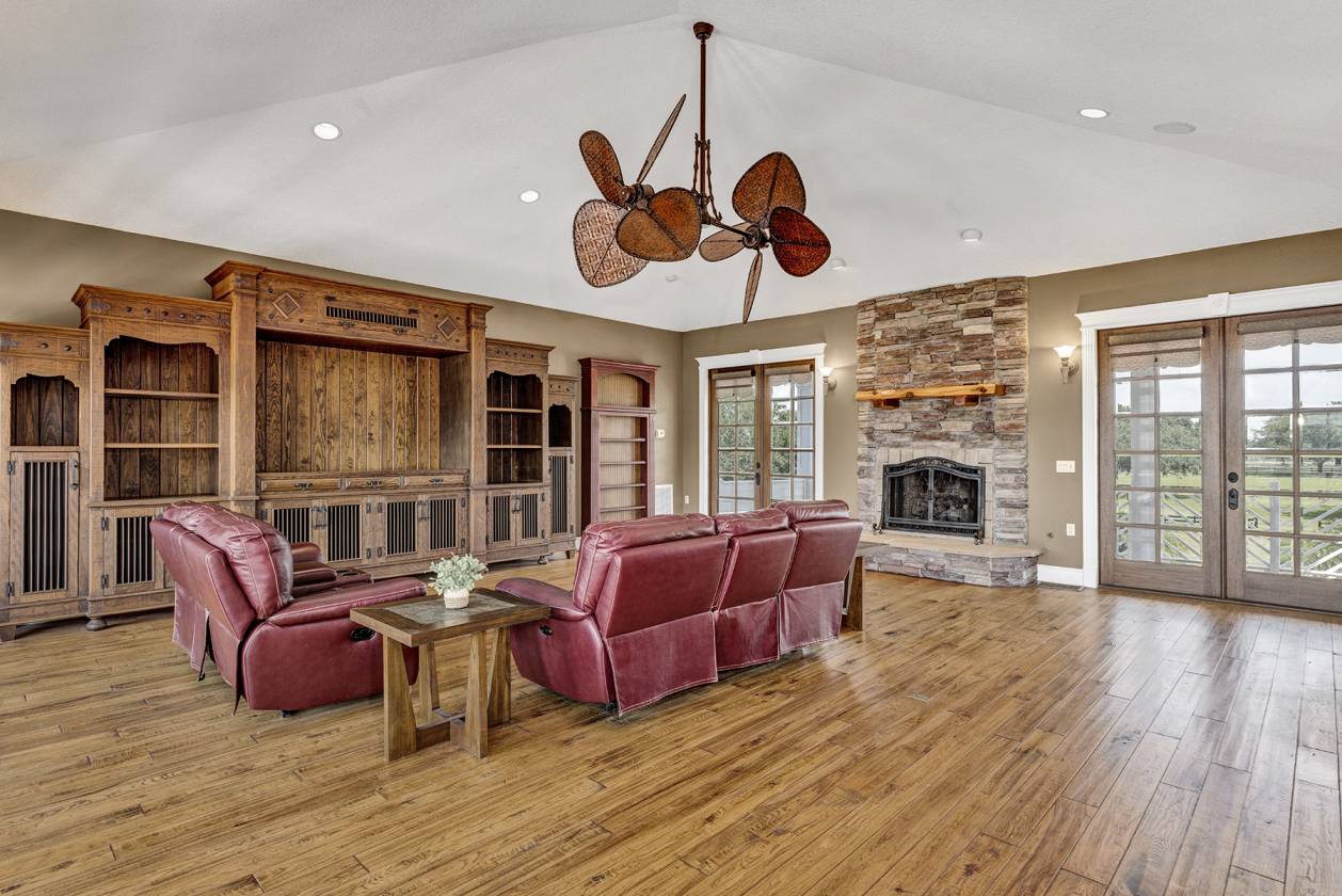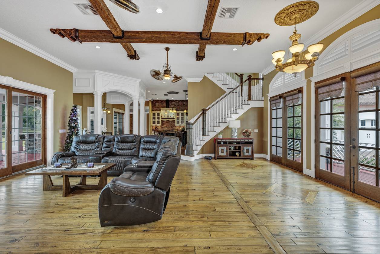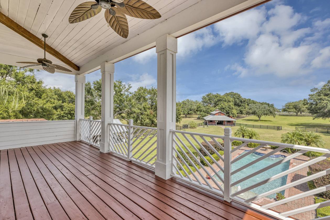 Experience timeless elegance and southern charm in this exquisite, one of a kind 9.66 acre estate, where every detail has been thoughtfully designed & engineered for comfort, beauty, and sophistication. Beyond the gated entrance, a grand paver driveway lined with magnolia trees leads to this stunning, custom 2-story home. This remarkable home showcases beautiful hand-scraped hickory floors with walnut inlays, soaring 12’ ceilings, 8' alder doors, plantation shutters, custom leather Nook ceiling, custom solar shades, and custom lighting & fans throughout. Exquisite millwork includes octagon columns encasing the Nook, 9” crown molding, and 7” baseboards. Glass-Craft mahogany double door entrance with 2 sets of stationary French doors welcomes you to the impressive Great Room with a decorative beam ceiling and double French doors leading out to the relaxing rear porch and wonderful pool oasis. The gourmet island Kitchen features granite counters, custom cabinetry, and a large walk-in storage pantry with room for wine storage. Charming breakfast Nook features a leather ceiling, bay window with views of the Viking Summer Kitchen, pool and the impressive gardens. You’ll love the formal Dining Room, which offers plenty of space to entertain friends & family on all sorts of special occasions. Magnificent & spacious Primary Suite encompasses a beautiful coffered ceiling, large walk-in closet, French doors leading to the rear porch and tranquil views. The luxurious en-suite boasts split vanities, 3 sinks, gorgeous travertine floor, large walk-thru shower, and an inviting free-standing platform tub. Climb the divine staircase up to the Family/Media Room highlighting a custom entertainment center, surround sound speakers, gas fireplace with Eldorado Stone, a Library/Craft Room, a half Bath, and front and rear porch balconies offering majestic sunrises & sunsets. The Family/Media Room also has a hidden attic access behind the book shelf. Enjoy the spacious Laundry Room which includes Washer & Dryer, granite counters and numerous cabinets. The 18 x 45 pool is nestled in surrounded by lush flowering plants & shrubs and features solar lights, 4 water jets, and soothing waterfalls. Even a private Pool House/Vanity Room is just steps away from the pool. You will love the Summer Kitchen featuring Viking appliances, Sedna granite counters, tongue & groove ceiling, and plenty of room to seat your guests at the bar. The oversized 3-Car Garage features an additional 20’ x 9’ workshop to keep all your tools & toys neatly stored, as well as a Generac generator. This amazing property includes a 10 x 16 storage shed, banana trees & a citrus tree too! A horse lover's dream with a 58 x 36 Main Barn complete with etched flooring, hay storage, 4- 12 x 12 stalls with Dutch doors to paddocks, fans & water supply in each stall, plus a 24 x 12 stall for foaling or equipment storage. The Tack Room/Barn Office features brick flooring, tongue & groove ceiling, cedar beams, cabinets, and a butcher block table. The Second Barn is 22 x 44 and offers 2- 12 x 12 stalls w/ fans, water supply, European style gates & partition walls, tongue & groove Tack Room/Barn Office, hay storage, and let's not forget the 4 chandeliers. Painted four-board fencing surrounds the entire property w/ gates between paddocks. This gorgeous Southern Plantation style home and horse property is truly “one of a kind” and ready for you to discover all it has to offer to begin your own fabulous memories.