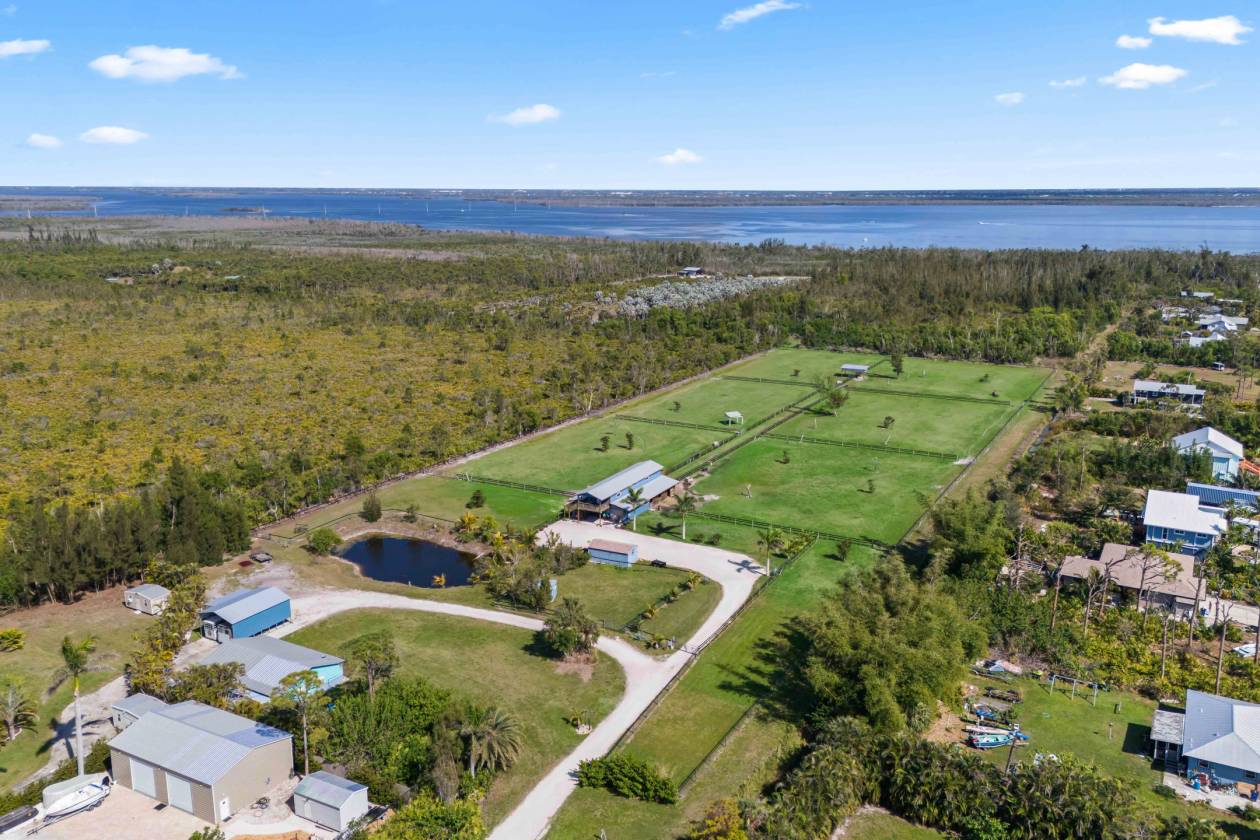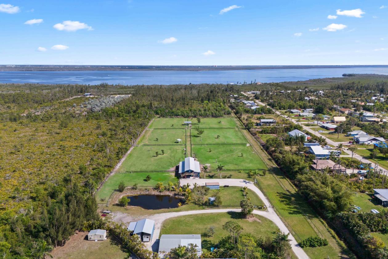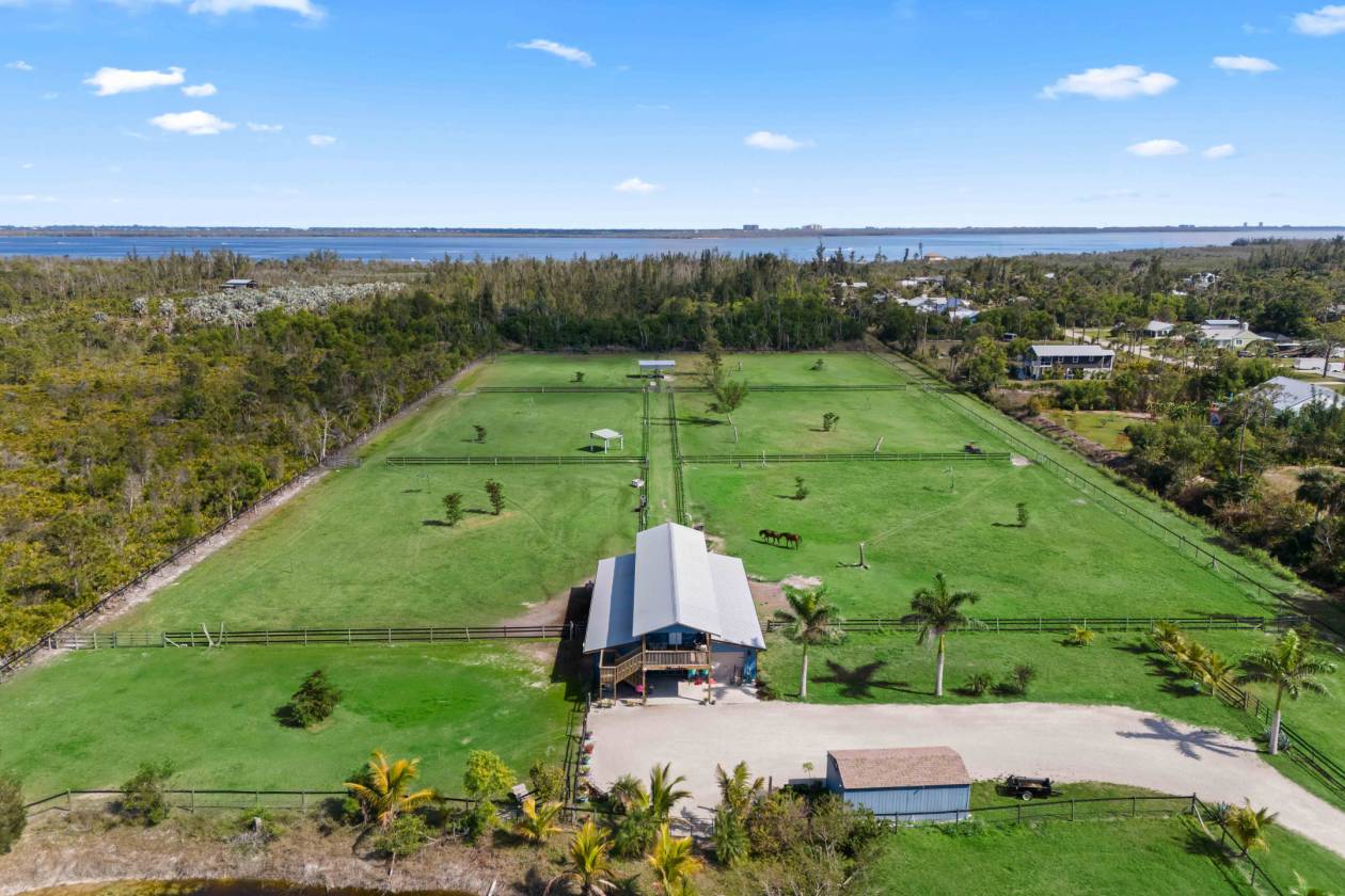 Introducing Moonshine Acres Tropical Horse Farm, an extraordinary equestrian estate that offers an unparalleled sanctuary for both horses and riders. Situated on a private double gated entry off Stringfellow Road, this 8.85 acres of pristine land is the ultimate opportunity to own and grow your own business to include existing boarders and expand to trail rides, training and breeding. There are so many growth opportunities as the current owners have taken meticulous care of the property and setup in order to facilitate a long term growth plan.This is a completely fenced property that backs to 12 miles of trails that lead directly to the Gulf waters - a paradise for horses. Eight expansive and adjoining paddocks, 6 of which are interconnected for uninterrupted movement, plus a dedicated paddock designed for specialized care (a total of 9). Each area is meticulously maintained, providing a safe and comfortable environment for your horses to thrive. For riders seeking to hone their skills or enjoy leisurely rides, the property is equipped with a Regulation Small-Size Dressage Arena that ensures the ideal setting for training or casual riding. At the heart of the farm is a state-of-the-art barn, designed to meet the highest equestrian standards. The barn houses 8 spacious stalls, each outfitted with automatic watering systems and cooling fans to ensure the ultimate comfort for your horses. A well-appointed Tack Room offers ample storage for all your riding gear, while a private bathroom and a Feed Room add convenience. The barn also includes a comfortable 2-bedroom, 1-bathroom Caretaker’s Quarters, kitchen and a balcony with million dollar views! This barndominium is a perfect home for on-site care or staff. Beyond the barn, the property is equipped with additional functional structures, including a Hay Shed, a 30 x 50 Workshop, and a Carport large enough to accommodate RVs or horse trailers. For added versatility, there is a Run-In Shed and convenient Wash Stalls to ensure the utmost care for your horses. With plenty of space available, the property also offers the exciting potential to build your dream home, tailored to your specific lifestyle and preferences. Moonshine Acres is more than just a farm; it is an established, successful boarding business, with current boarders eager to stay, making this property a prime investment opportunity. Whether you're an experienced equestrian, a passionate rider, or an investor looking to enter the equestrian world, this property provides a unique chance to own a thriving business while embracing the luxury of country living. The idyllic setting of Pine Island also provides easy access to the Gulf of Mexico, offering endless opportunities for water sports, fishing, and beach outings. Moonshine Acres blends the best of both worlds—an equestrian paradise for horses and riders, coupled with the vibrant lifestyle of Southwest Florida’s Gulf Coast. This also has many other potential uses including raising chickens.