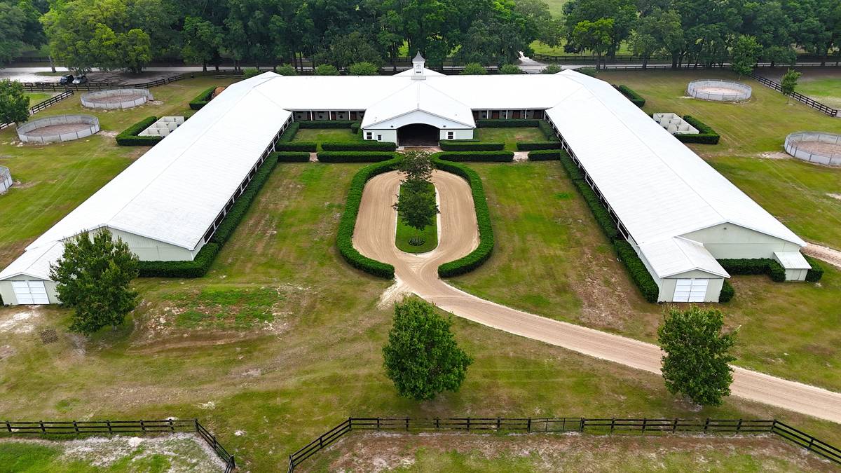 - Fully Equipped Training Facility: Boasting 3 barns with 138 stalls. The main barn features 100 fully equipped stalls with excellent ventilation. A total of 8 round pens, ideal for various training exercises and starting young horses. Additionally, two sets of three wash racks provide ample space for grooming and cooling down horses. It also includes an office area for managing operations and client meetings. The second barn offers 14 stalls and an additional round pen, perfect for specialized training and boarding. The third barn provides 20 stalls, offering additional capacity for horses and training activities. Additional Buildings: Tack rooms, feed storage, and a workshop, all designed to support the facility's daily operations.