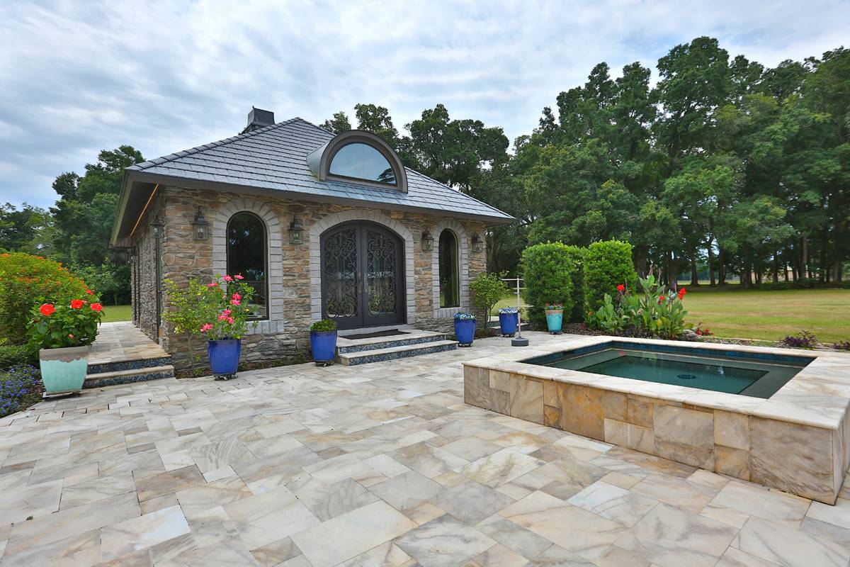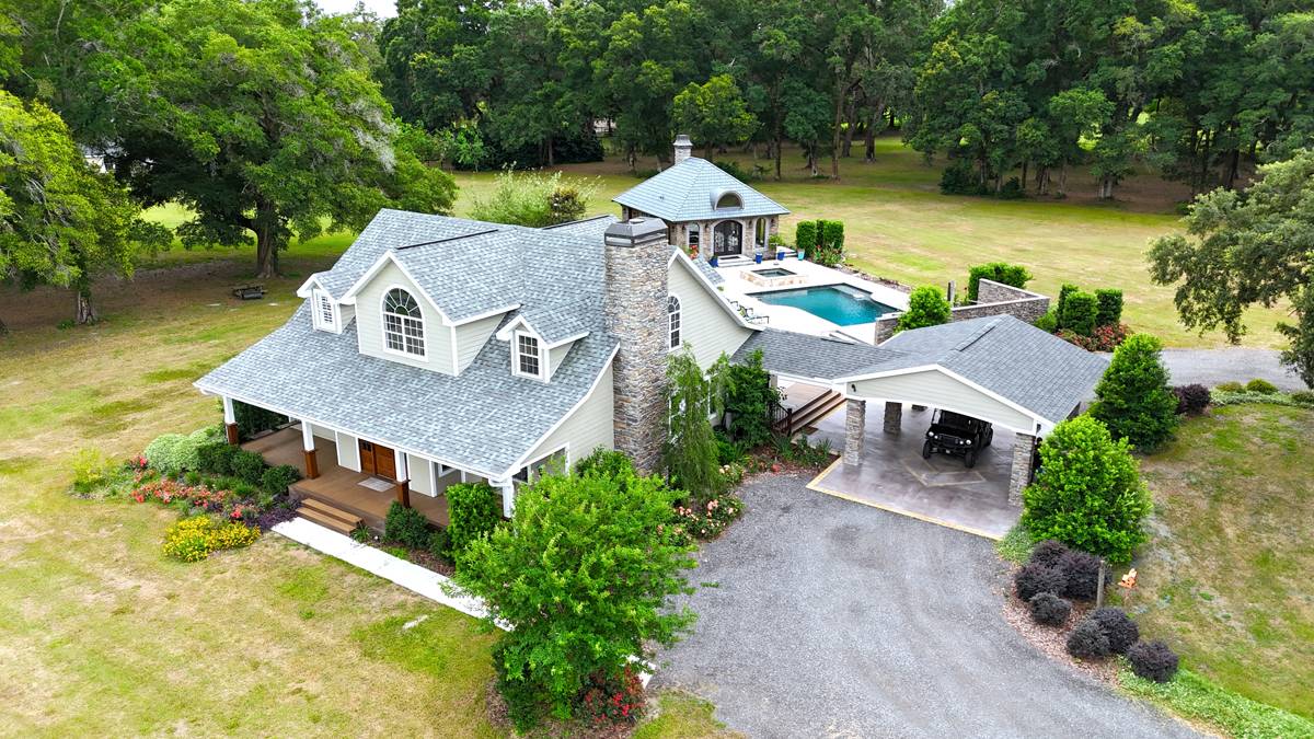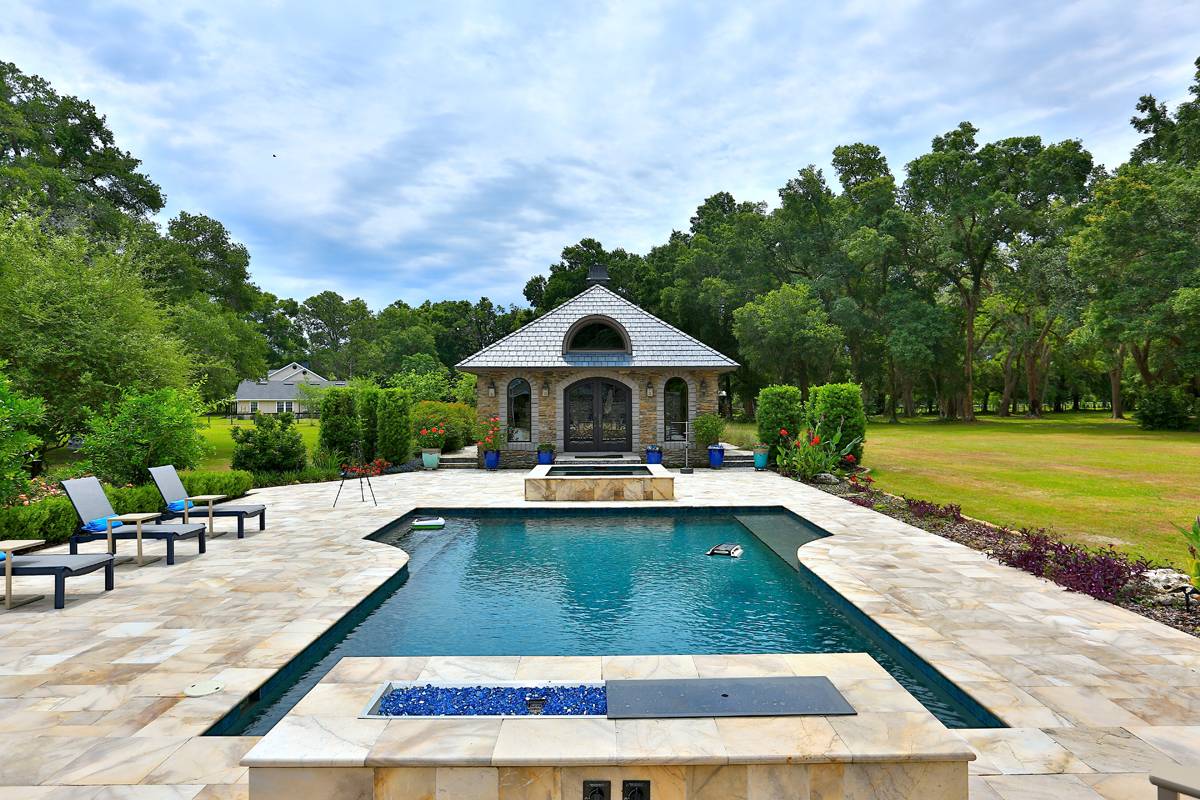 - A privately located, elegant 3-bedroom, 2.5-bath main house with beautiful stonework and tongue-and-groove ceilings. The home offers modern amenities and is an entertainer's dream, featuring a resort-style pool and a pool house ideal for entertaining friends, family, or clients. Equipped with a Wolf range, vent hood, sink, and full bath. A charming, fully renovated mobile home. The home's interior has been tastefully remodeled, boasting modern fixtures, new flooring, and updated appliances. The open-concept layout creates a bright and inviting atmosphere, perfect for daily living and hosting guests. Featuring a spacious wrap-around porch, this home offers the perfect blend of indoor and outdoor living.