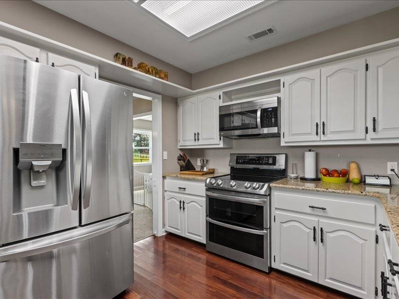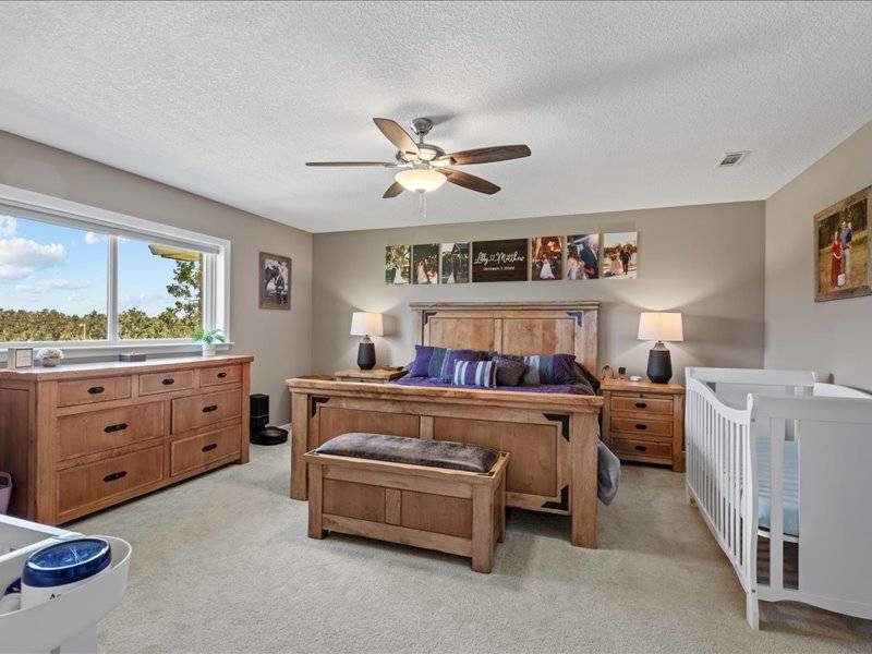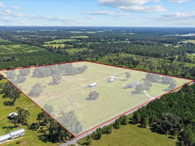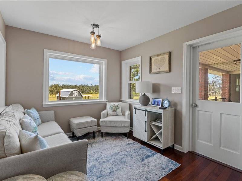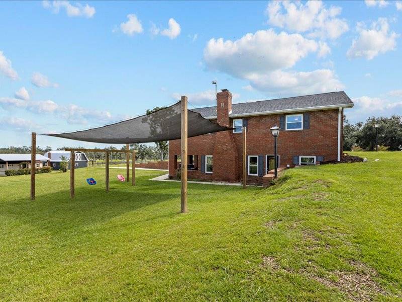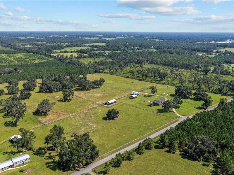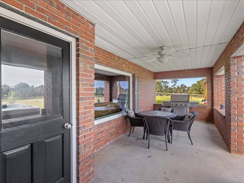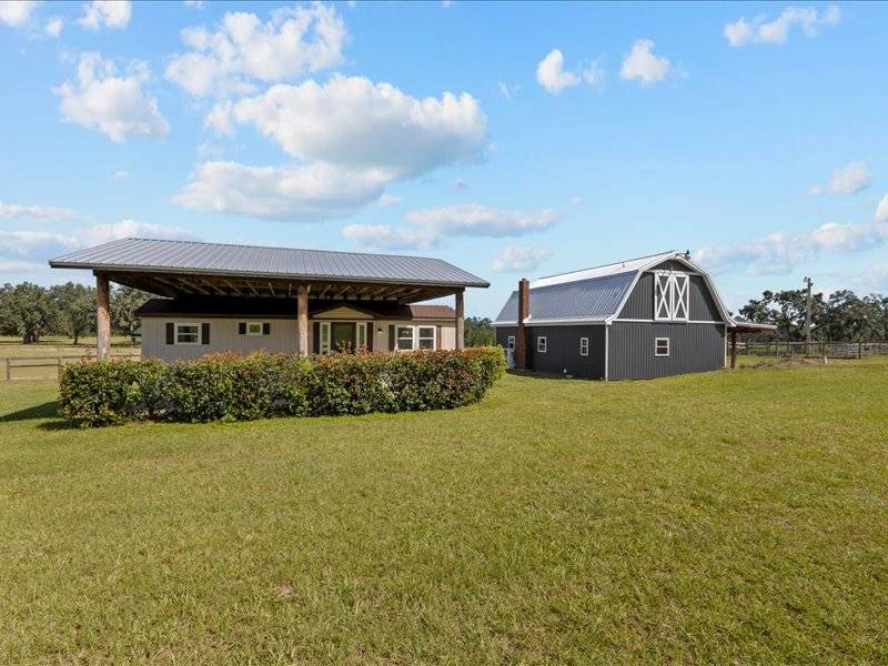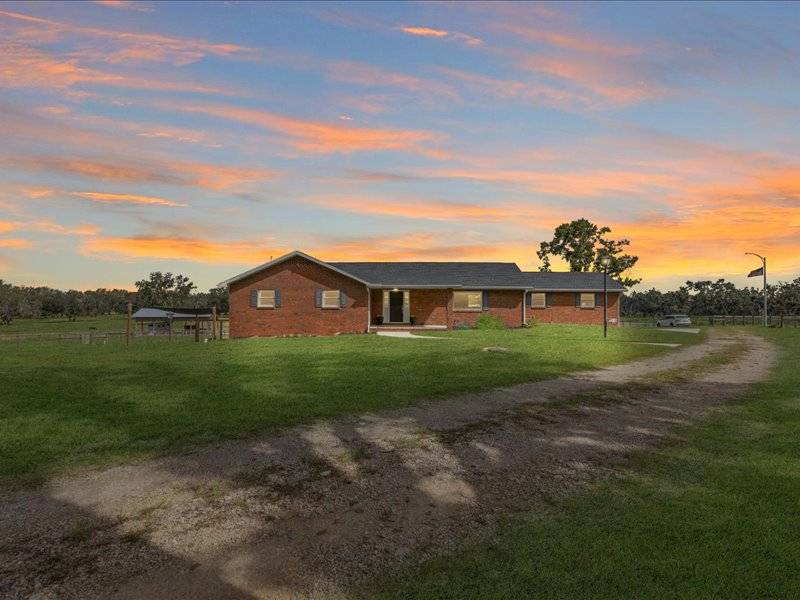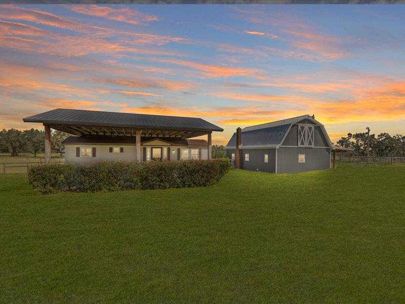 Welcome to this extraordinary 30-acre estate, where timeless craftsmanship meets modern convenience. Impeccably maintained and thoughtfully updated, this property offers not only a beautifully appointed main residence, but also a fully renovated guest house, a multi-purpose barn, and extensive equestrian amenities—all set against rolling fenced pastures. Main Residence The 2,700+ sq. ft. brick home (with a new roof installed in 2023) offers 4 spacious bedrooms and 3 full bathrooms. Thoughtfully designed, the layout includes three bedrooms upstairs, along with a private downstairs suite that could serve as a fourth bedroom or a secluded office. Inside, every detail has been refreshed: the entire interior was freshly painted, new carpet was added to bedrooms (2023), and gleaming wood floors flow throughout the remaining spaces. Oversized picture windows installed in 2024 fill the home with natural light, while geothermal dual units and a new upstairs AC ensure comfort and efficiency. Additional highlights include 2x8 construction walls, lightning protection, generator hardwiring, abundant storage with custom built-ins, and new gutters. Outdoors, enjoy a covered patio and cook area, plus a shaded side yard with an installed awning. Guest House Completely renovated and tucked beneath a protective pole barn, the 1-bed/1-bath guest home offers turnkey comfort with all new appliances, new roof and windows (2025), and the option to be sold fully furnished. Covered parking adds everyday convenience. Barn & Outbuildings Main Barn (2025 updates): New roof, siding, and windows with 2x6 construction. Includes a kitchen, laundry, full bathroom, and large garage area. Upstairs, a spacious open loft with mini-split heating/cooling offers endless potential. Pole Barn with RV Hookup: New roof (2025), equipped with septic, water, and electric. Designed for versatility, this structure can easily be enclosed or converted into a horse barn. Land & Equestrian Amenities The property spans 30 acres of high, dry pastureland—completely fenced and cross-fenced with all-new horse/cow-safe fencing. Features include: Feed pens and arena (with lights available) Hot and cold wash rack for horses Four pastures including an arena for training or events Functioning windmill powering one of the two wells, ensuring water even during outages Additional Features: Hardwired generator readiness Sellers willing to include equipment, mower, and more This estate is a rare combination of modern upgrades, equestrian readiness, and multi-residence versatility—all within a private, gated setting. Perfect for those seeking both luxury living and a working ranch lifestyle.