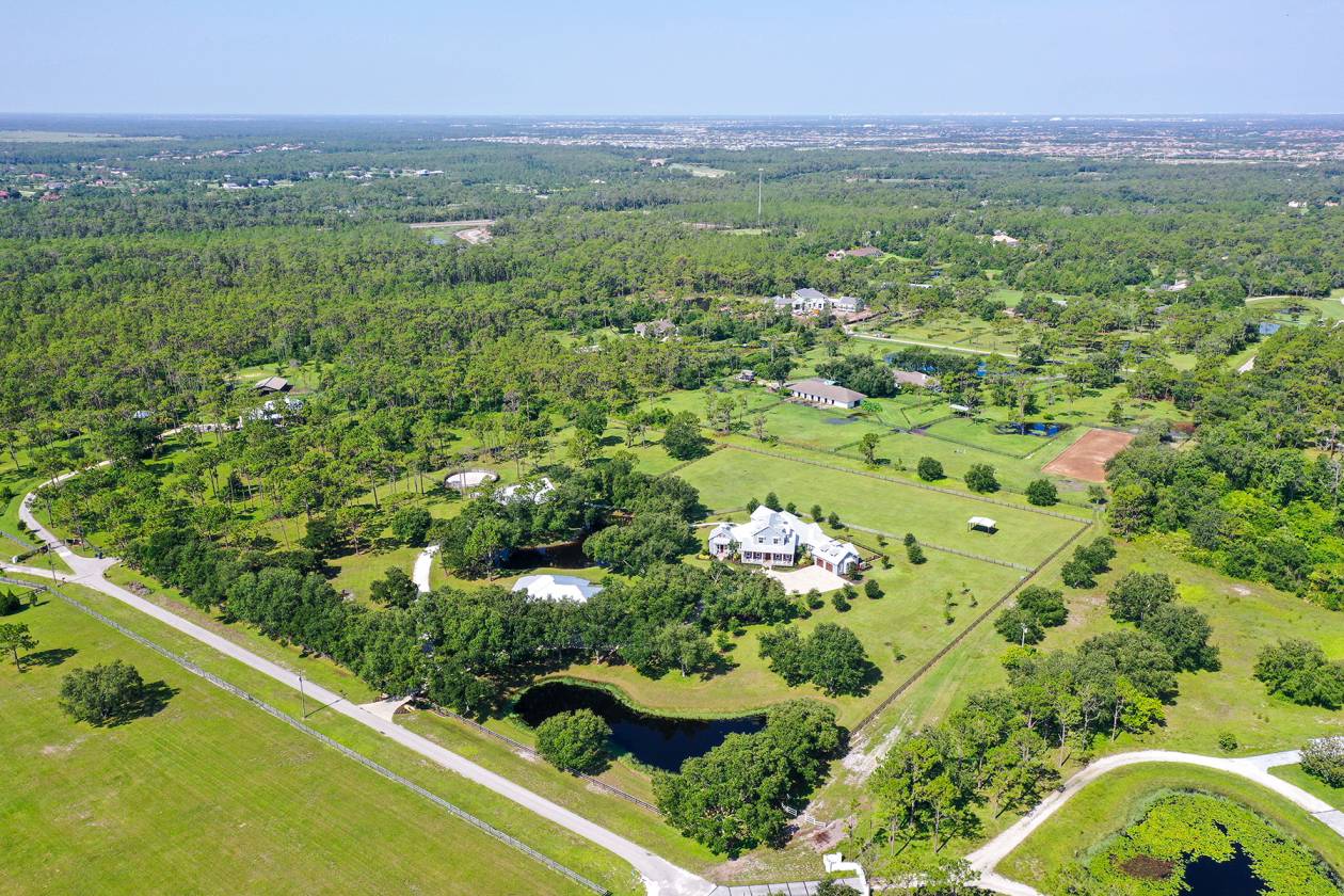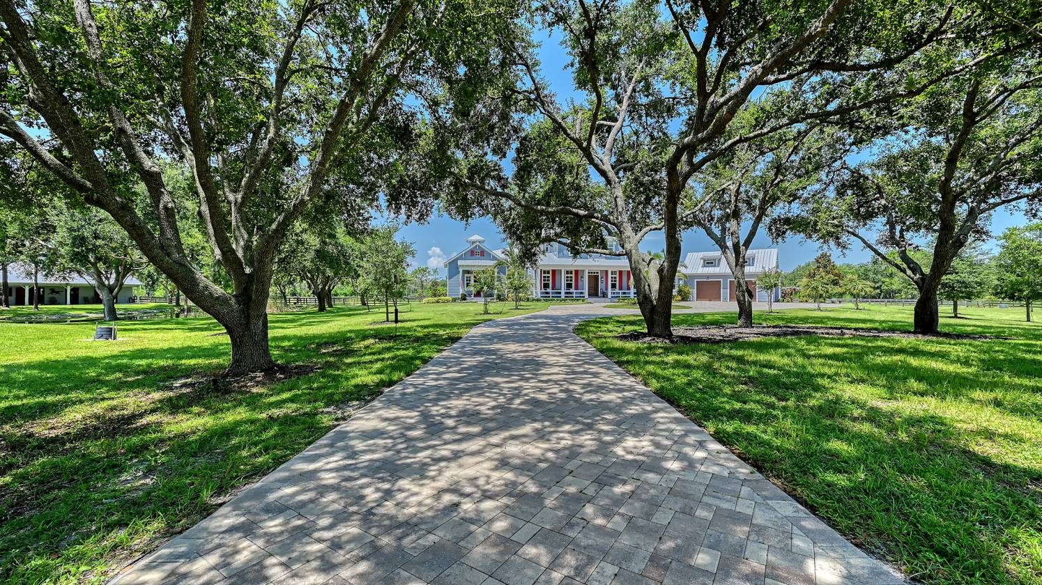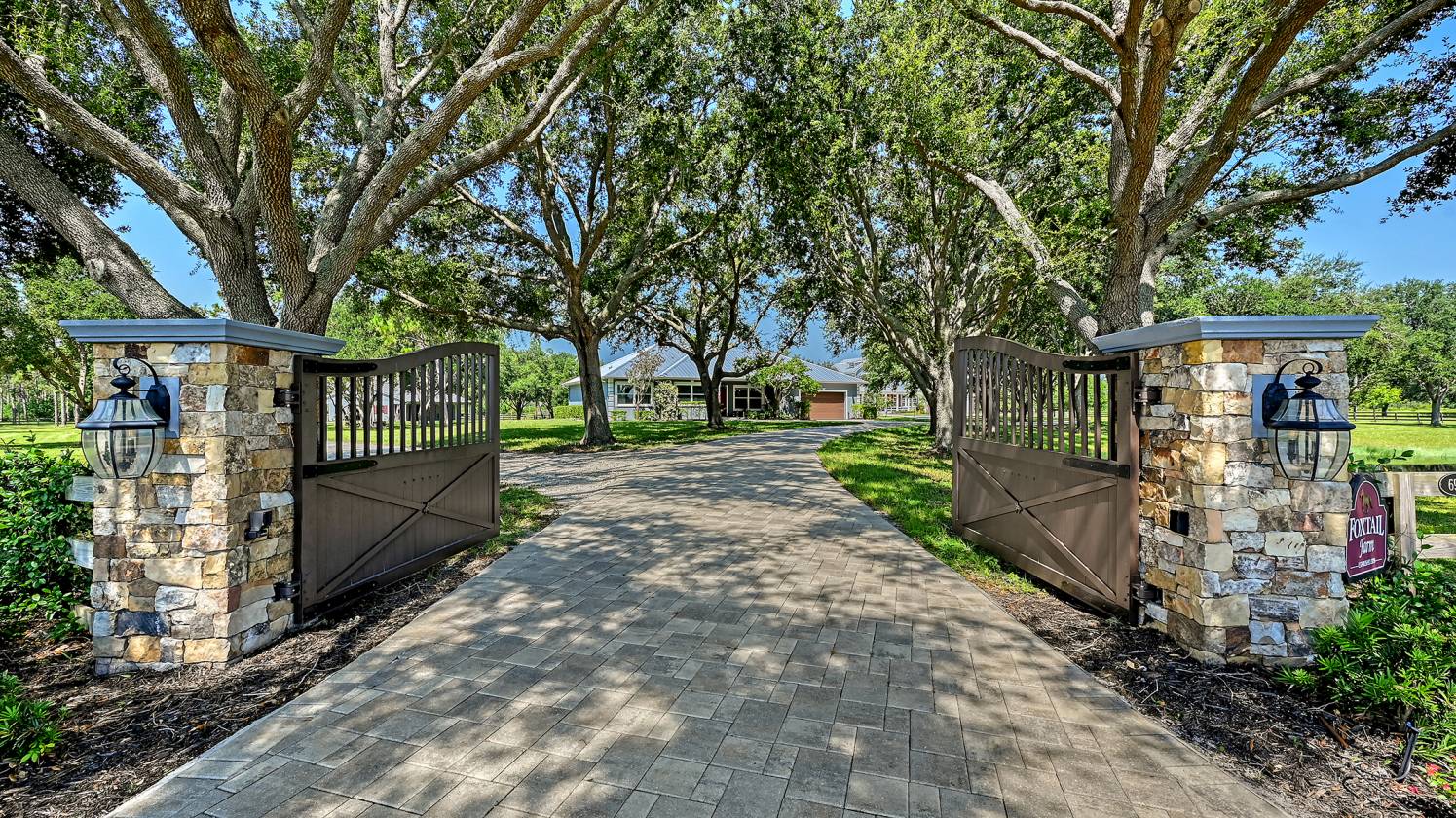 Nestled in Panther Ridge, this gated 9+ acre estate blends luxury and equestrian excellence. A winding paver driveway, lined by majestic oaks, curves past the guest home to the main residence. High and dry with superior drainage, the fenced and cross fenced property features oak, pine, lush pastures and lake views, creating a park-like oasis. Storm-ready with impact-resistant doors, windows, metal roofs, and a whole home generator, peace of mind is ensured. The estate is ideal for multi-generational living and features a 5,003 sq ft u/air smart home built in 2021 (7,185’ total), a remodeled guest home with a 2025 metal roof (2,559 sq ft u/air, 3540’ total), and a state-of-the-art barn, also constructed in 2021. The Grand Main Residence: A sweeping front porch adorned with stucco columns and tongue-and-groove ceilings invites guests in. Elegant Cheyenne front doors establish a refined ambiance, and upon entering, soaring ceilings rise majestically from 11’ to 22’ on the main floor and 10’ on the second floor. The home offers effortless living with dual Primary Suites w/a sumptuous spa bathroom on the main floor and 2 ensuite bedrooms upstairs. It’s many exquisite features include oak flooring, Haven Barrel porcelain tile, poplar-wrapped beams, cypress T&G accents, custom barn doors, and a striking red oak staircase. Smart home automation controls the A/C, garage doors, motorized blinds, lighting, and hurricane resistant lanai shades. The home is pre-wired with Cat 6 and coax cable and has a 25kw whole-home generator. The gourmet kitchen features a SubZero refrigerator, Wolf gas range, microwave, and Marsh maple cabinets. The wet bar includes Scotsman clear ice maker, Thermador refrigerator, wine refrigerator, and HUGE walk-in pantry. Primary Suites offer oak flooring, TG ceilings, spa baths with Mir Retro Blanco tile, claw foot tub, large walk-in shower, and spacious custom closets. The open-concept great room with soaring cathedral ceilings and gas fireplace creates an inviting space for entertaining. The 1,000 sq ft screened lanai includes a luxurious 1,500 gallon heated spa, Travertine pavers, outdoor kitchen with Sedona 30" gas grill, 20" refrigerator, NatureKast cabinets, ledge stone, TG ceilings, and gas fireplace. Energy-efficient, the home features 3 Trane XR 16 SEER A/C units, Rinnai tankless water heaters, R-41 insulation, impact-resistant doors and windows, dual propane tanks (1,500 gal total), and Hardi siding exterior. The Charming Guest Home: Perfectly remodeled 3-bedroom, 2-bath home with 10/11' ceilings, plank porcelain tile throughout, and a chef’s kitchen that includes Dutch-built solid wood cabinets, granite counters, lg center island, and Thermador dual-fuel oven. PLUS-Thermopane windows/doors, Kevlar hurricane screens, 80-gal water heater, solar attic fan, Trane AC w/HEPA filter. The Premier 5-Stall Barn: This 60x57 concrete barn features galvanized steel, powder coated finishes, 5-V Galvalume roof, and R-19 insulation. Sliding stall doors with feed openings, yoke/crossbuck designs, Dutch doors, a center aisle with self-cleaning tracks, A/C tack room complete with a sink, wash stall, and a grooming station, alongside a dedicated hay and feed room. 4 stalls are accompanied by fenced paddocks, each offering direct access to the serene surroundings. The 5th stall offers flexibility, all while overlooking a picturesque landscape adorned with majestic oaks and a tranquil reflection pond, creating a perfect haven for all!