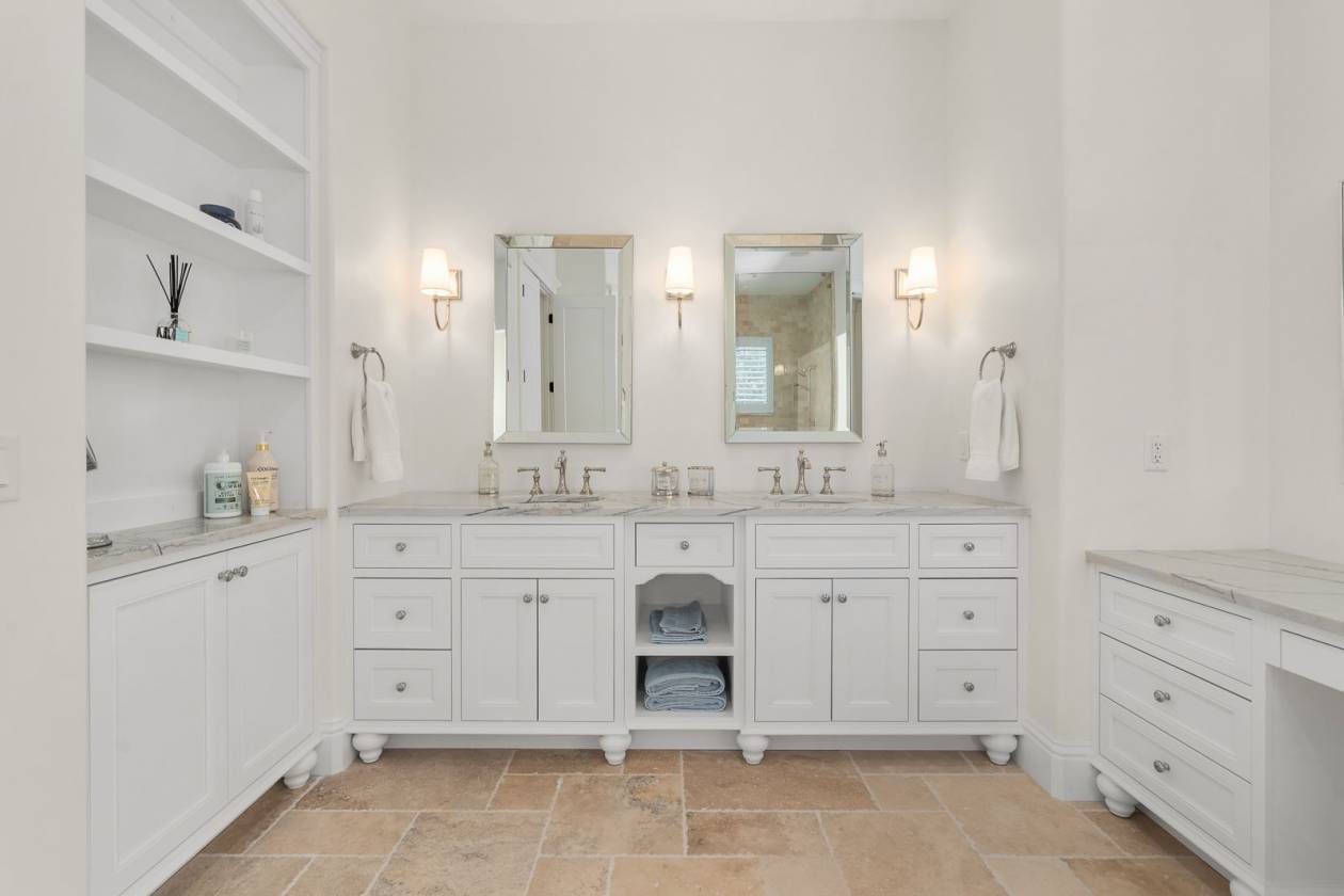 • Custom Dixie Workshop cabinetry + granite vanities all throughout home
