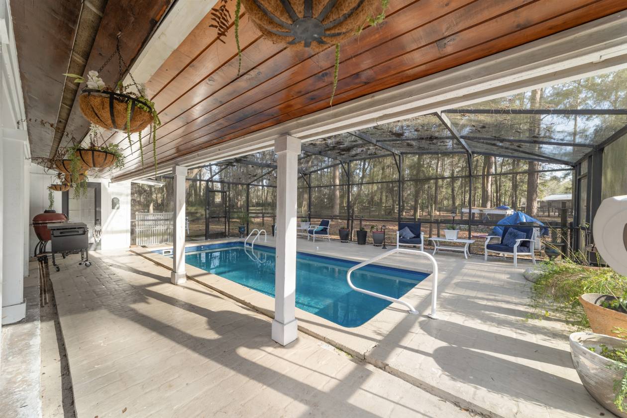Nestled in the heart of Marion County’s Farmland Preservation Area, this Newly Renovated farmhouse estate is a countryside dream brought to life. Spanning 20 acres of rolling pastures and enchanting woodlands, the property is a harmonious blend of natural beauty and refined rural living. Towering southern magnolias, delicate crape myrtles, vibrant bougainvilleas, and fragrant camellias paint the landscape with seasonal splendor, while a variety of fruit trees produce nature’s sweetest bounty. A long paved drive, flanked by lush greenery, leads to the picturesque farmhouse, where rustic charm meets modern sophistication. Originally built in 1991, the home has been lovingly refurbished, preserving its storybook allure while incorporating elegant updates. A brand-new metal roof on all living areas, whole-house generator, new water heater, and a new 2024 air conditioning system ensure effortless year-round comfort. Inside, sunlight dances through expansive windows, casting a golden glow throughout. The 3-bedroom, 2.5-bath residence exudes both coziness and grandeur. At the heart of the home, the chef’s kitchen is a masterpiece of function and style. Designed for both culinary artistry and everyday living, it boasts a gas stove, extra large refrigerator, high-end appliances, and elegant finishes, making every meal a delight. The spa-inspired bathrooms have been beautifully updated, while the master suite offers a tranquil escape, where mornings begin with serene views and evenings end in peaceful repose. Beyond the main house, charming guest accommodations await. A private mother-in-law suite attached to the two-car garage, provides a secluded haven for visitors or extended family. Additionally, a private 750-square-foot one-bedroom guest cottage exudes warmth and character, offering the perfect sanctuary for guests or a potential income-producing retreat. For equestrians and nature lovers alike, this estate is a dream fulfilled. Lush, cross-fenced pastures are primed for horses or livestock, complete with three paddocks, a well-appointed six-stall barn with water and electricity, and a separate two-stall BROOD barn in the front pasture. The landscape invites endless adventures—morning rides, tranquil afternoons beneath ancient oaks, and quiet evenings under star-strewn skies. With its seamless blend of modern luxury, pastoral charm, and equestrian-ready amenities**, this storybook farm is more than a home—it is a sanctuary of serenity. Whether envisioned as a private retreat, a working farm, or a multigenerational homestead, this extraordinary estate welcomes you with open arms and limitless possibilities.