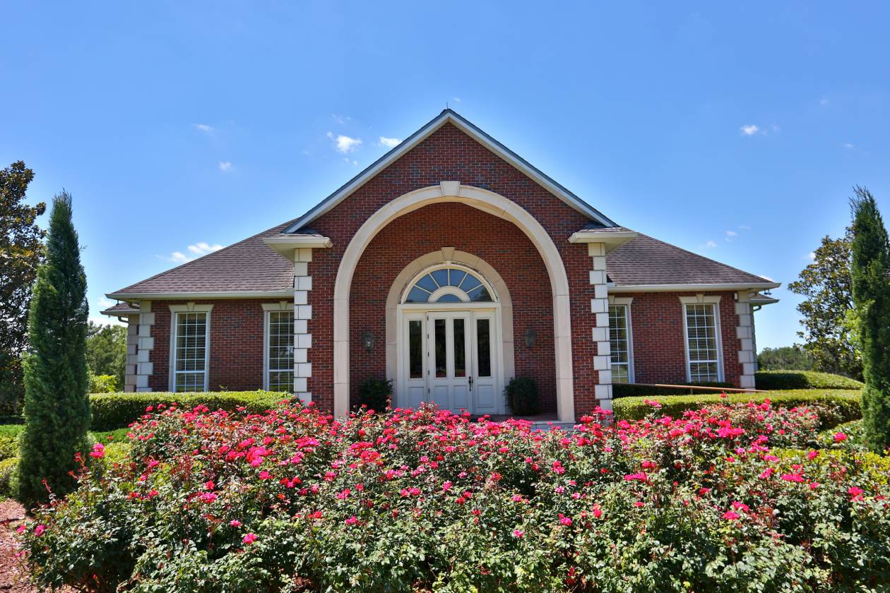 - The general manager's residence boasts approximately 1,884 +/- SF of living space, featuring vaulted ceilings, aluminum sash windows, & stylish decorative lighting throughout. The interior is thoughtfully designed with 4 bedrooms & 2 baths, including an owner's suite with a spacious bathroom. Additional property highlights include covered porches, beautifully landscaped grounds, & a secure gated entrance
