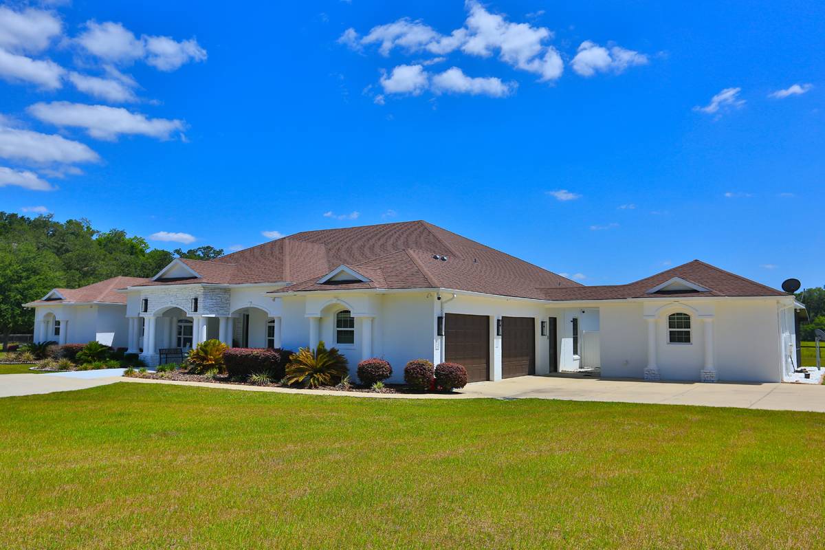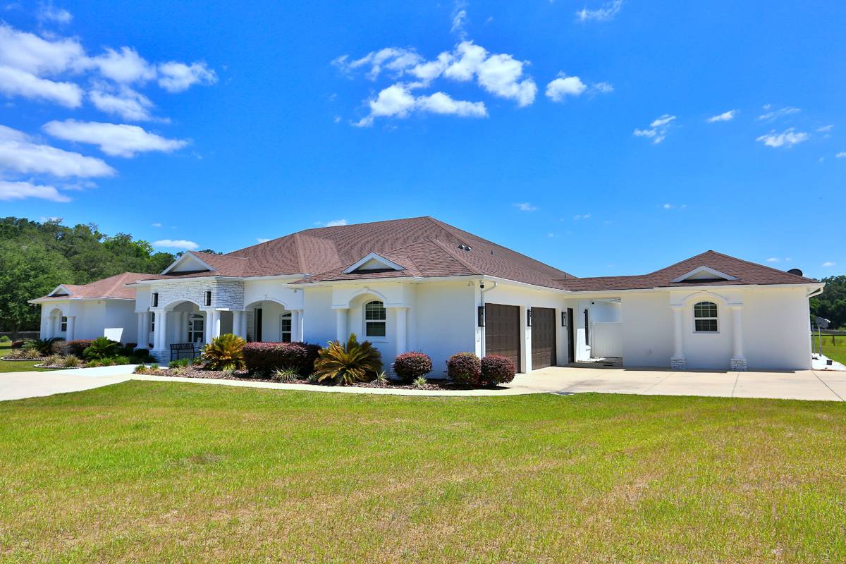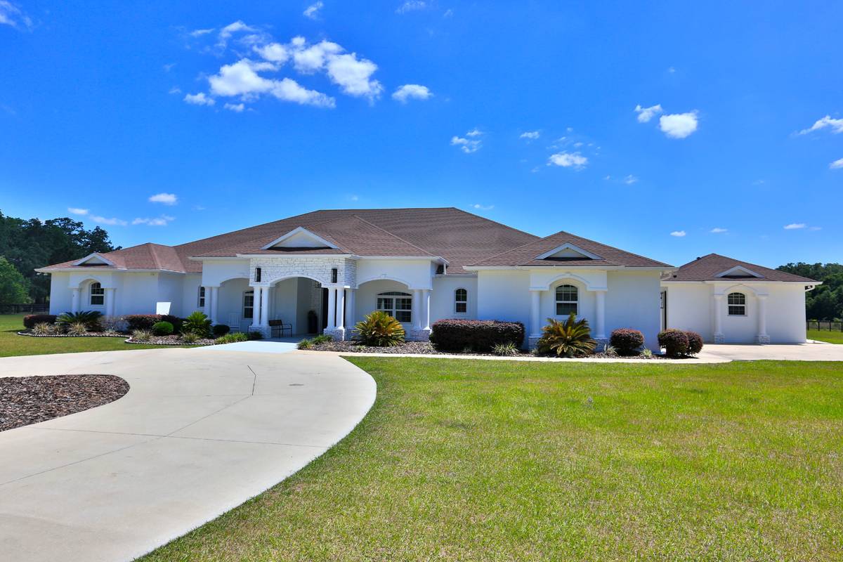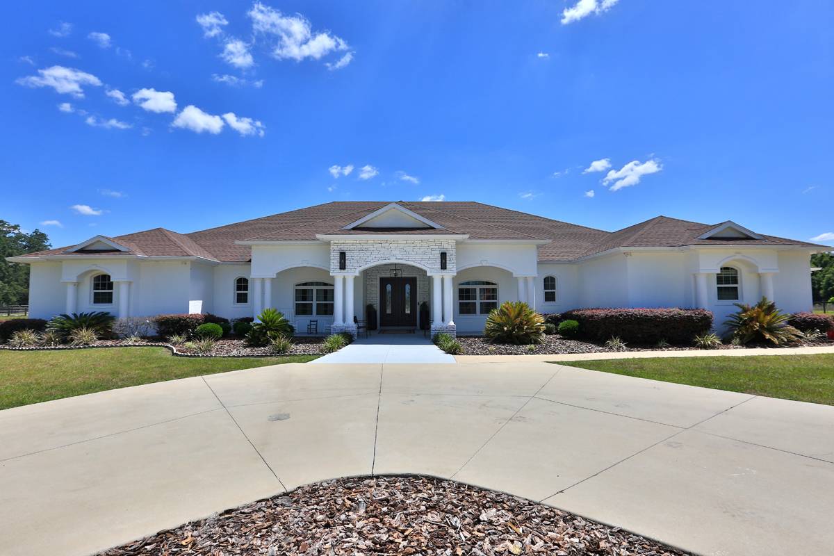 Discover a captivating estate that redefines luxury in one of northwest Ocala's most sought-after areas. Spanning over 10 acres, this extraordinary property offers an exceptional blend of elegance and seclusion, perfectly situated among premier destinations such as the Adena Golf and Country Club, Golden Ocala Golf & Equestrian Club, and the renowned World Equestrian Center. Residents will relish a dynamic lifestyle filled with world-class equestrian events, top-notch golfing, delightful dining options, shopping, and year-round festivities. Step into the meticulously maintained main residence, where every detail epitomizes superior craftsmanship. From the grand entryway with soaring tray ceilings to the beautiful crown molding and modern light fixtures, elegance abounds. The expansive chef's kitchen is a culinary dream, featuring two islands, Brazilian marble countertops, and high-end appliances, including a gas range—perfect for both everyday cooking and entertaining. Unwind in the cozy media room, designed for the ultimate movie experience with its projector and plush theater seating. The luxurious primary suite serves as a tranquil retreat, complete with a private sitting area featuring a cozy fireplace and direct patio access. The spa-like en-suite bath boasts a soaking tub, a walk-in shower, dual vanities, and luxurious marble flooring. Step outside to the sprawling patio that opens to an impressive indoor pool area, a true entertainer's paradise equipped with a fireplace and TV, as well as a sparkling pool and spa. Adjacent to the main living area, a well-appointed covered outdoor kitchen simplifies outdoor dining, making al fresco meals a delight. For guests or extra family, a delightful guest cottage that reflects the elegance of the main home features its own screened-in patio. Equestrian lovers will value the option to construct a barn on the current concrete pad, accompanied by extensive pastures that can be customized for your horses' requirements. This estate embodies a lifestyle of unparalleled luxury and functionality, offering the perfect sanctuary for those who seek the ultimate equestrian living experience. Come and see for yourself the extraordinary possibilities that await!