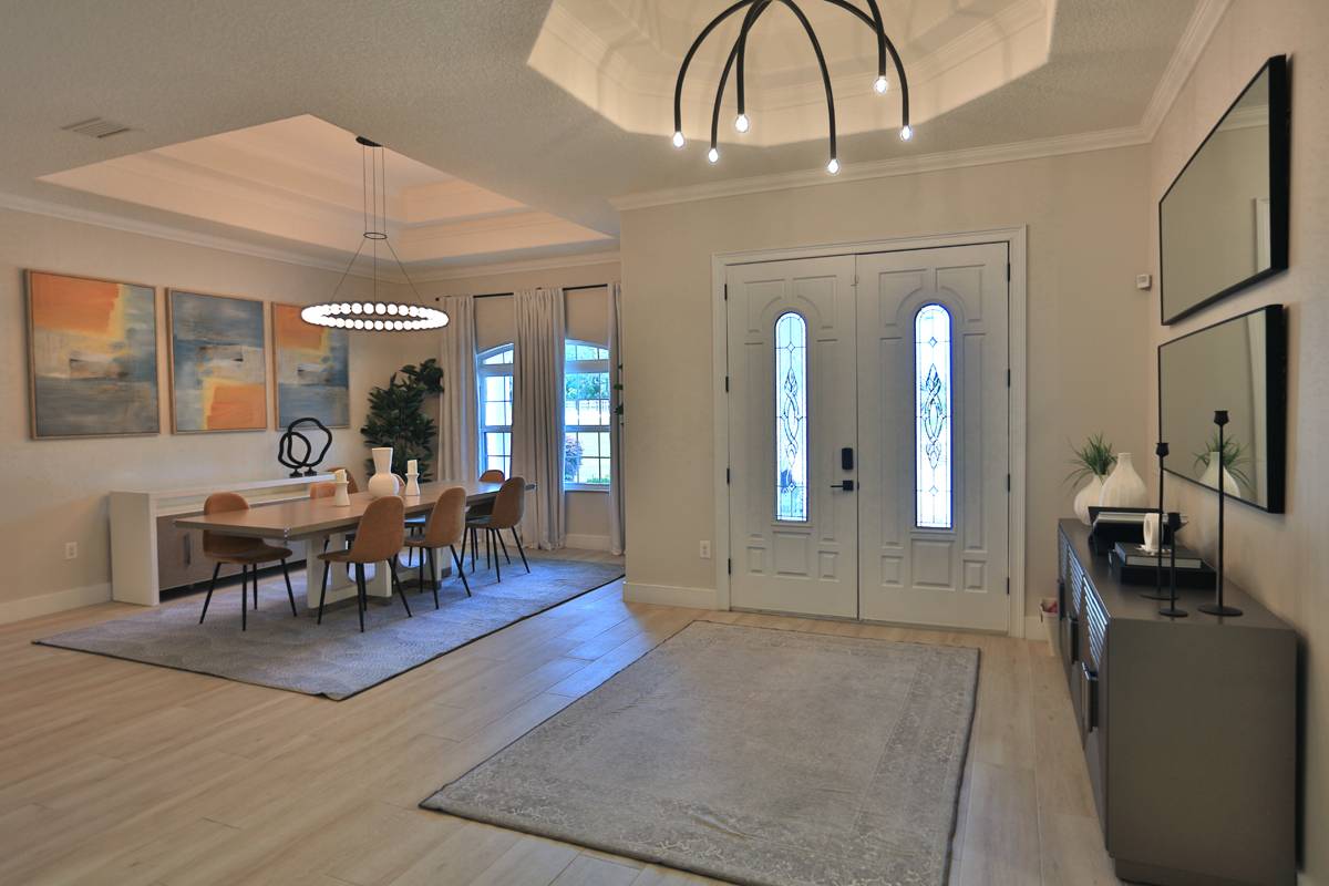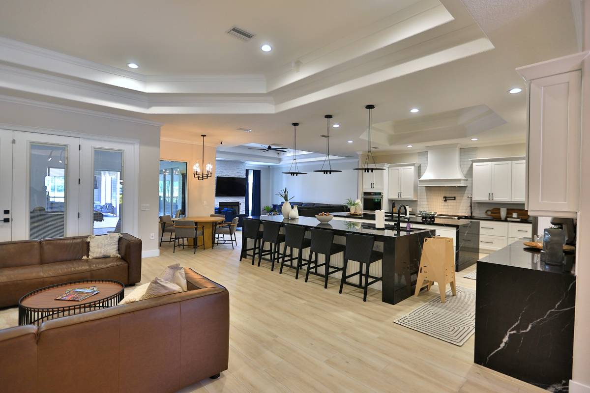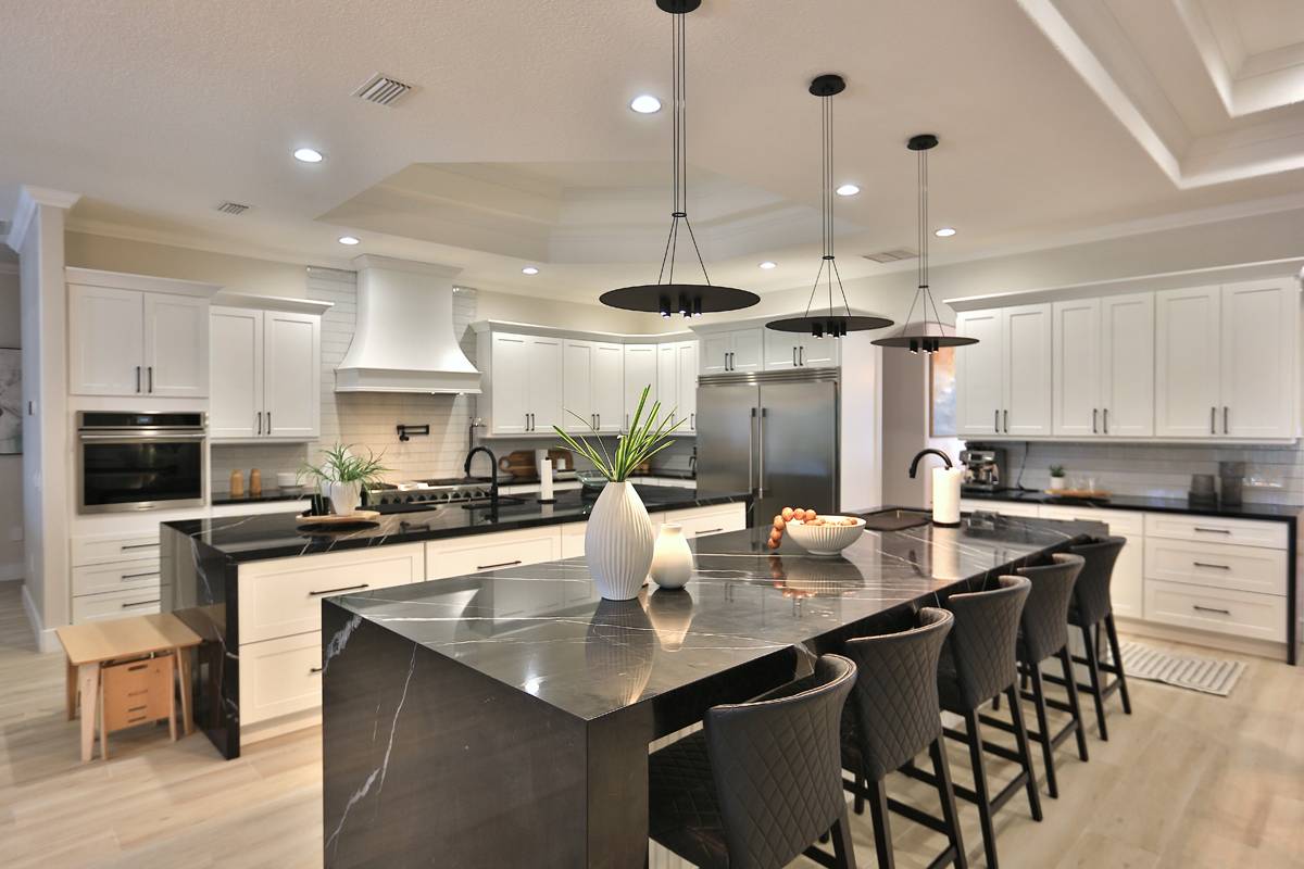 - Step into the meticulously maintained main residence, where every detail epitomizes superior craftsmanship. From the grand entryway with soaring tray ceilings to the beautiful crown molding and modern light fixtures, elegance abounds. The expansive chef's kitchen is a culinary dream, featuring two islands, Brazilian marble countertops, and high-end appliances, including a gas range—perfect for both everyday cooking and entertaining. Unwind in the cozy media room, designed for the ultimate movie experience with its projector and plush theater seating. The luxurious primary suite serves as a tranquil retreat, complete with a private sitting area featuring a cozy fireplace and direct patio access. The spa-like en-suite bath boasts a soaking tub, a walk-in shower, dual vanities, and luxurious marble flooring. Step outside to the sprawling patio that opens to an impressive indoor pool area, a true entertainer's paradise equipped with a fireplace and TV, as well as a sparkling pool and spa. Adjacent to the main living area, a well-appointed covered outdoor kitchen simplifies outdoor dining, making al fresco meals a delight. For guests or extra family, a delightful guest cottage that reflects the elegance of the main home features its own screened-in patio.