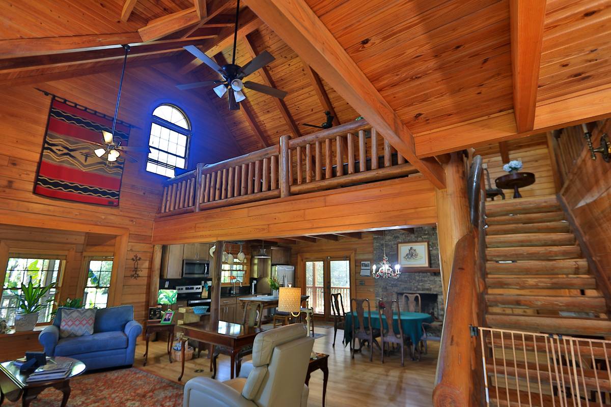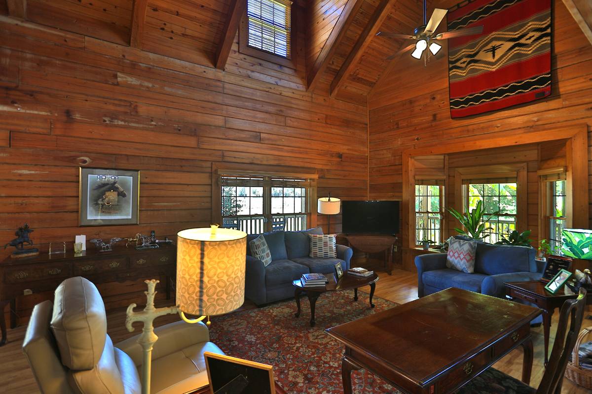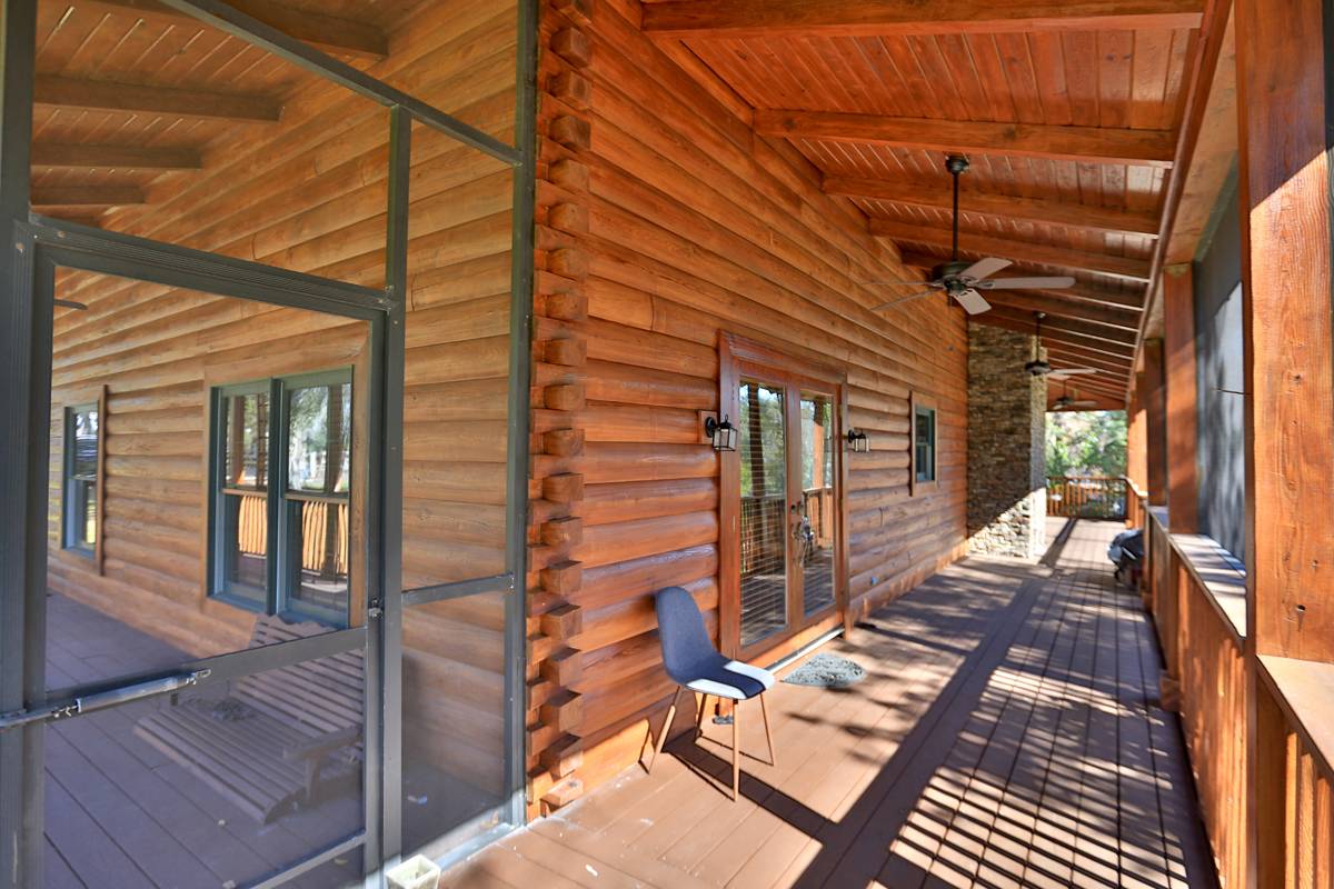 Escape to this charming log cabin, situated on over 16+ acres of beautiful land. Step onto the inviting front porch, where you can sip your morning coffee while enjoying the peaceful sounds of nature. The main home features two bedrooms and two bathrooms, with large windows that flood the rooms with natural light and offers beautiful views of the outdoors. A stone log fireplace serves as the focal point of the open kitchen, living, and dining area, creating a warm and inviting atmosphere. The kitchen features new appliances. The upper level, which was previously used as the owner's suite, boasts an open space with a spacious bathroom and a walk-in closet. It offers plenty of storage and workspace options but does not have walls for privacy, maintaining an airy, open feel. Step outside onto the generous wrap-around porches and take in the fresh air, perfect for relaxing or entertaining. The residence also features a new roof and HVAC system. It's a rare gem in a beautiful location! Conveniently located just minutes from the Greenways Trails, Florida Horse Park, shopping, restaurants, and hospitals, this property truly has it all.