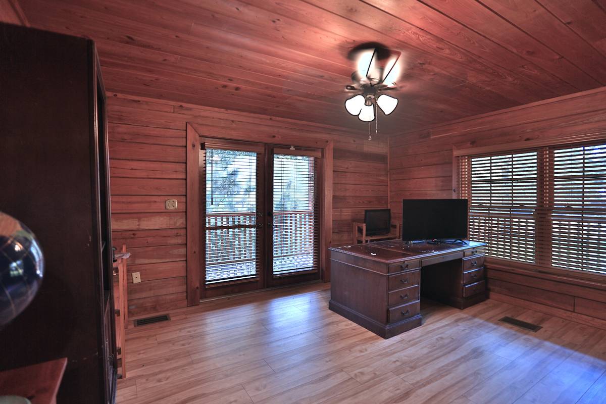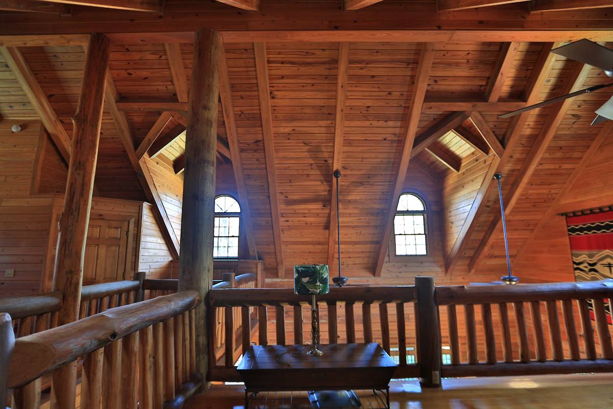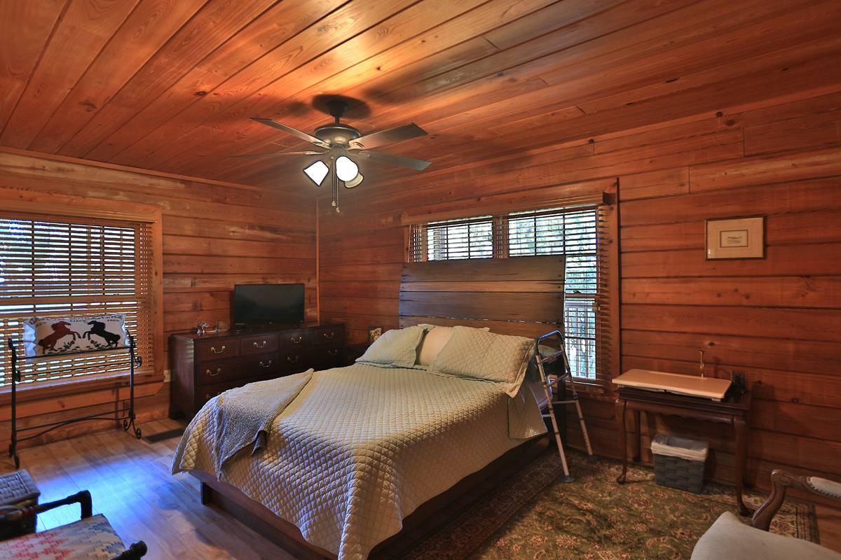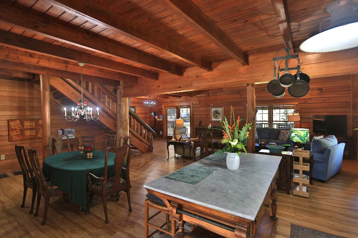 Escape to this charming log cabin, situated on over 16+ acres of beautiful land. Step onto the inviting front porch, where you can sip your morning coffee while enjoying the peaceful sounds of nature. The main home features two bedrooms and two bathrooms, with large windows that flood the rooms with natural light and offers beautiful views of the outdoors. A stone log fireplace serves as the focal point of the open kitchen, living, and dining area, creating a warm and inviting atmosphere. The kitchen features new appliances. The upper level, which was previously used as the owner's suite, boasts an open space with a spacious bathroom and a walk-in closet. It offers plenty of storage and workspace options but does not have walls for privacy, maintaining an airy, open feel. Step outside onto the generous wrap-around porches and take in the fresh air, perfect for relaxing or entertaining. The residence also features a new roof and HVAC system. It's a rare gem in a beautiful location! Conveniently located just minutes from the Greenways Trails, Florida Horse Park, shopping, restaurants, and hospitals, this property truly has it all.